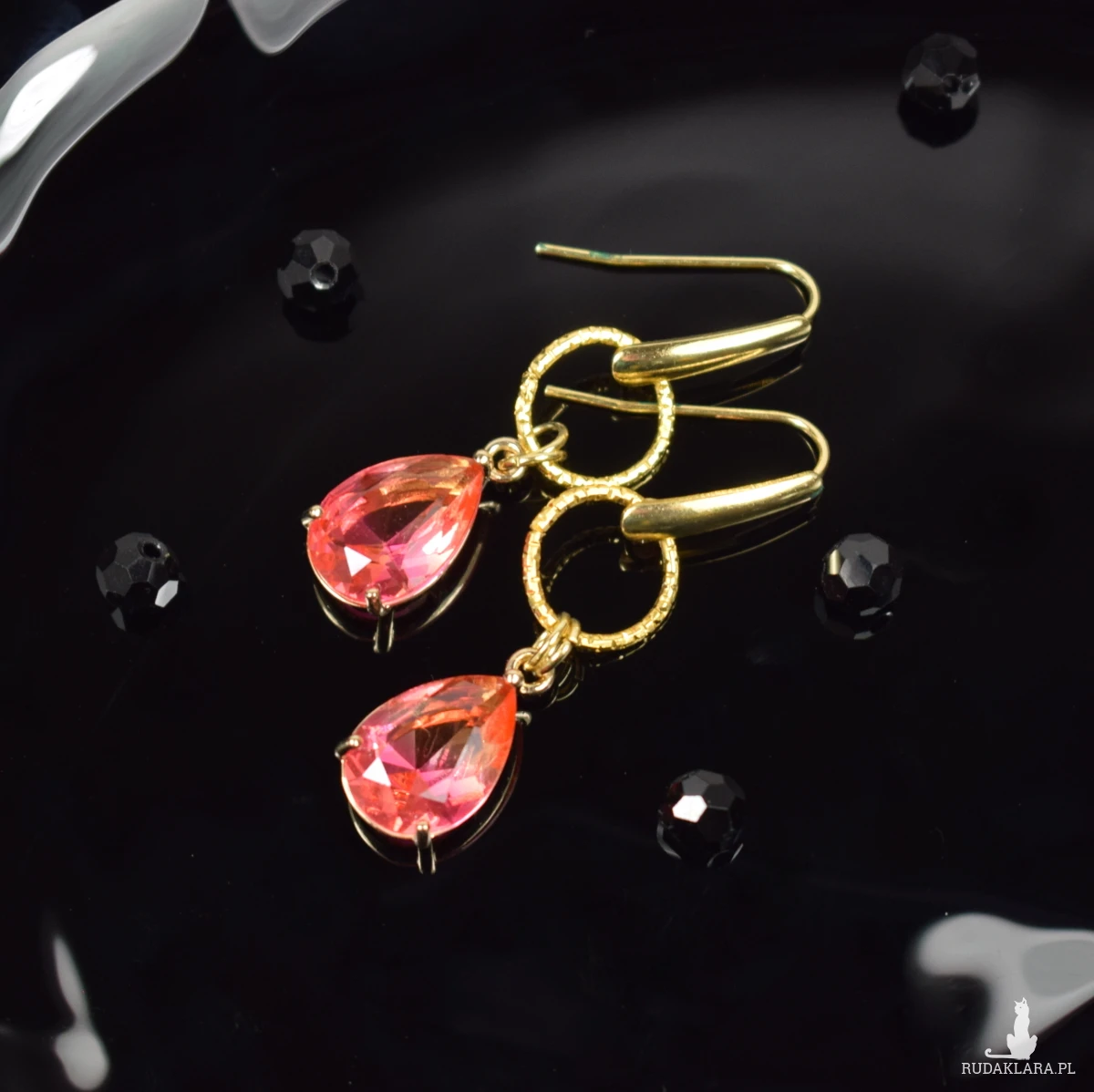 Subtelne i eleganckie kolczyki z pięknie mieniącymi się różowymi kryształkami to idealny dodatek na każdą okazję.