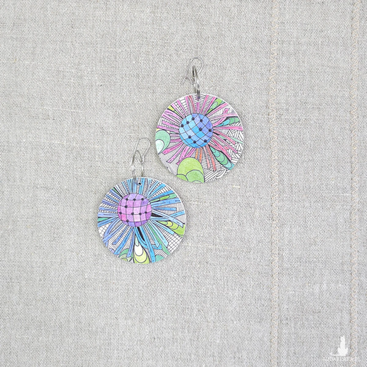 6483 kolorowe, niepowtarzalne, duże, dwustronne kolczyki; 4 w 1;