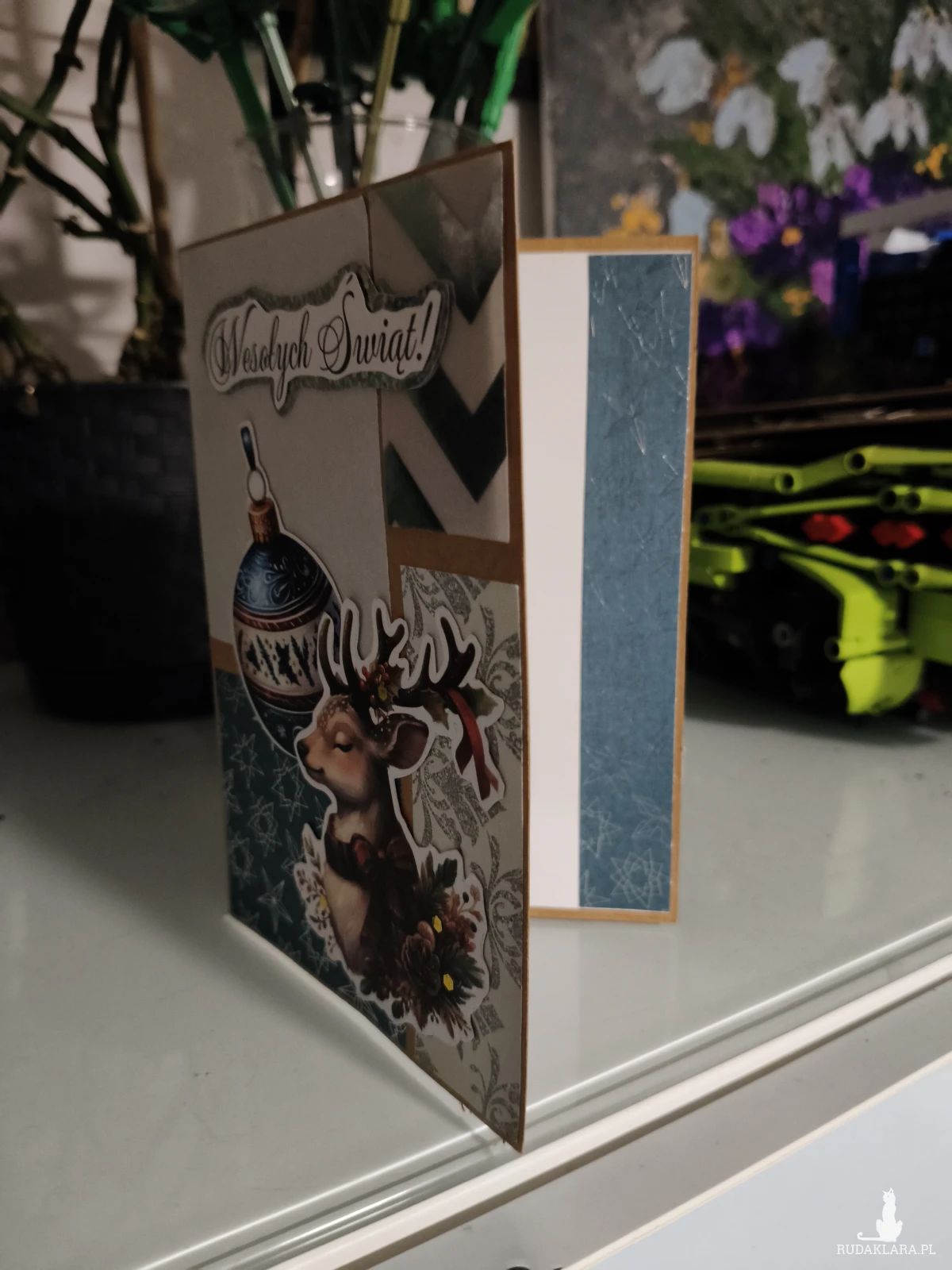 Wnętrze kartki nawiązuje stylistyką do frontu