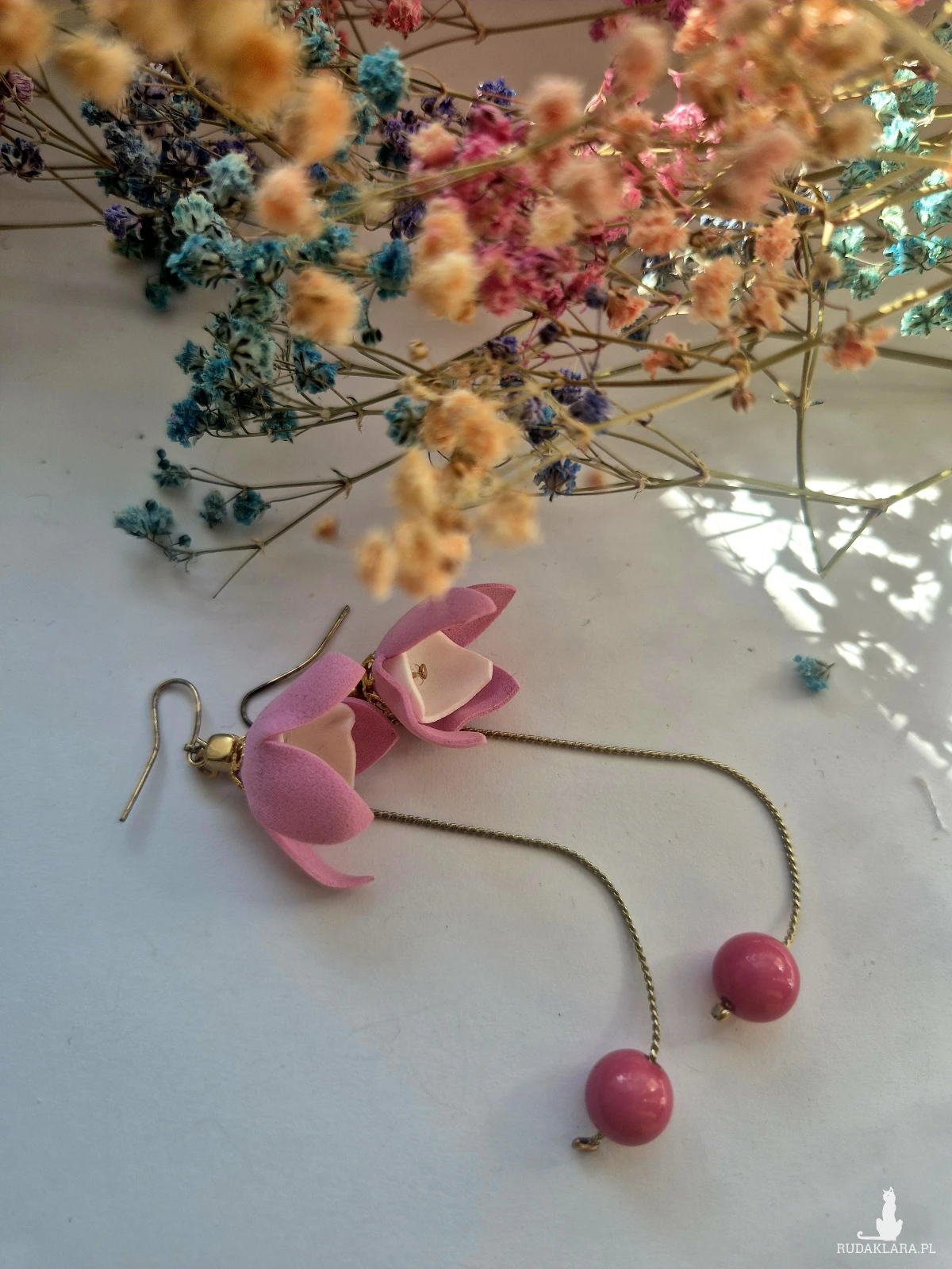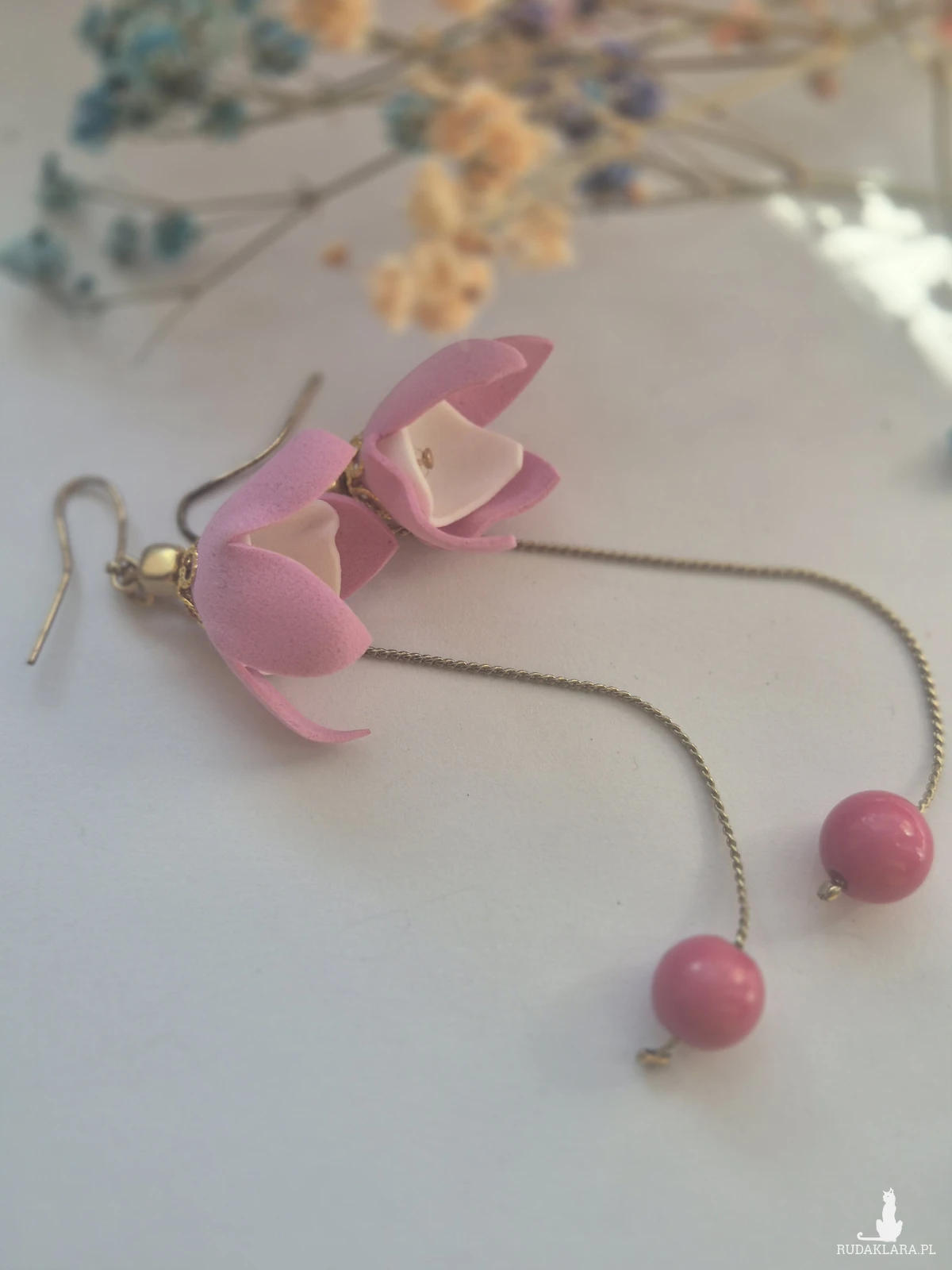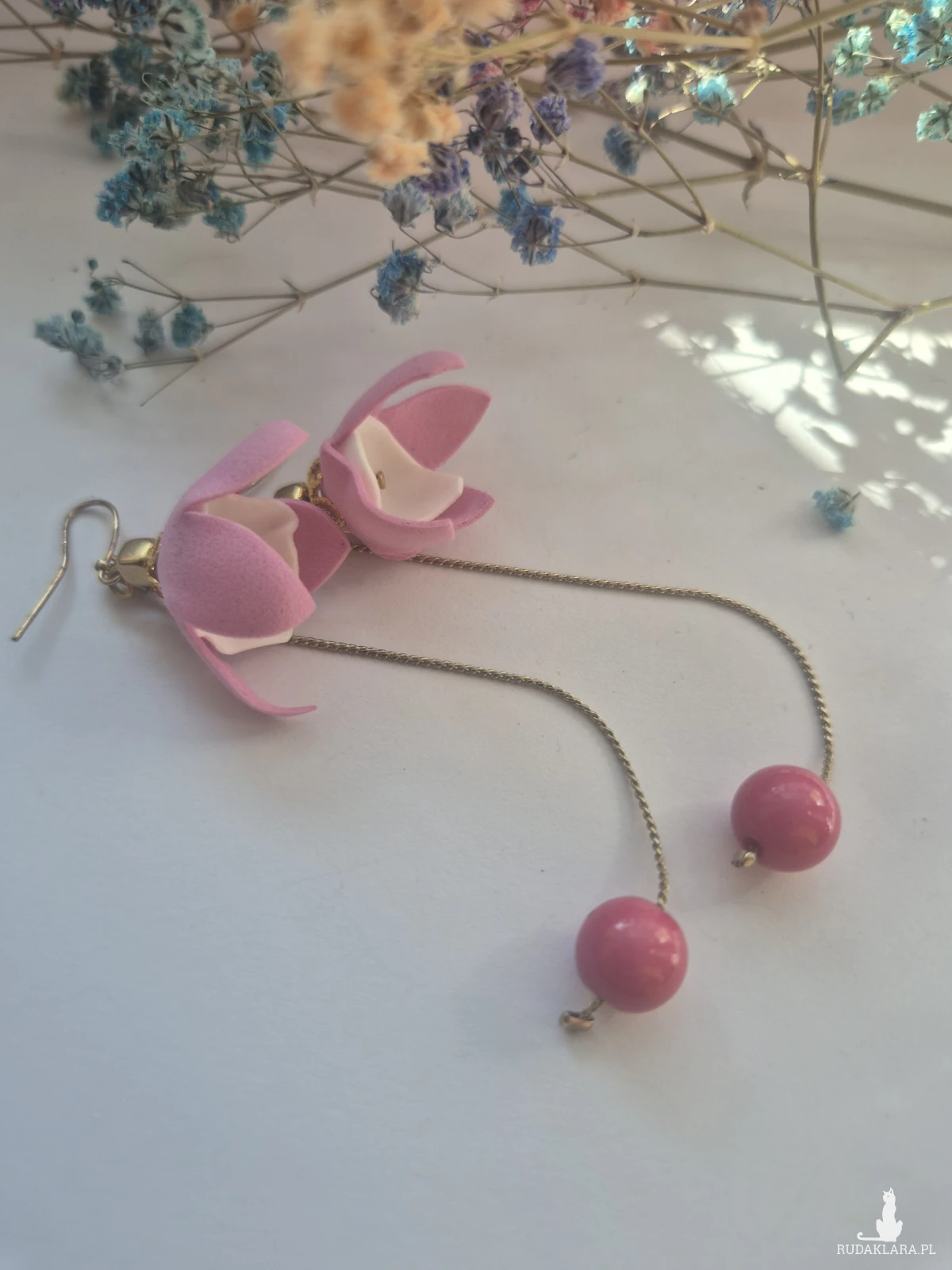 Kolczyki różowe delikatne kwiaty długie lekkie polecam