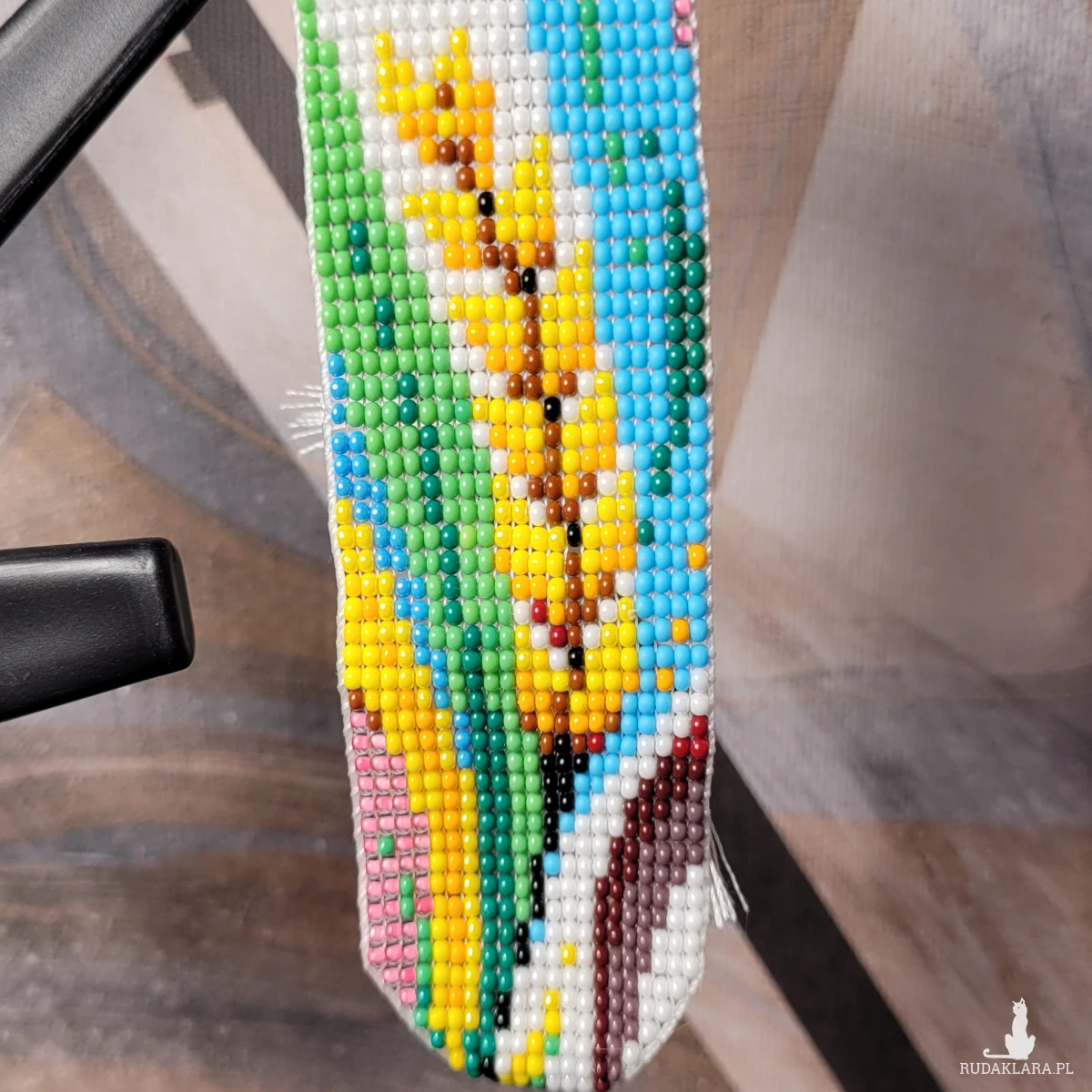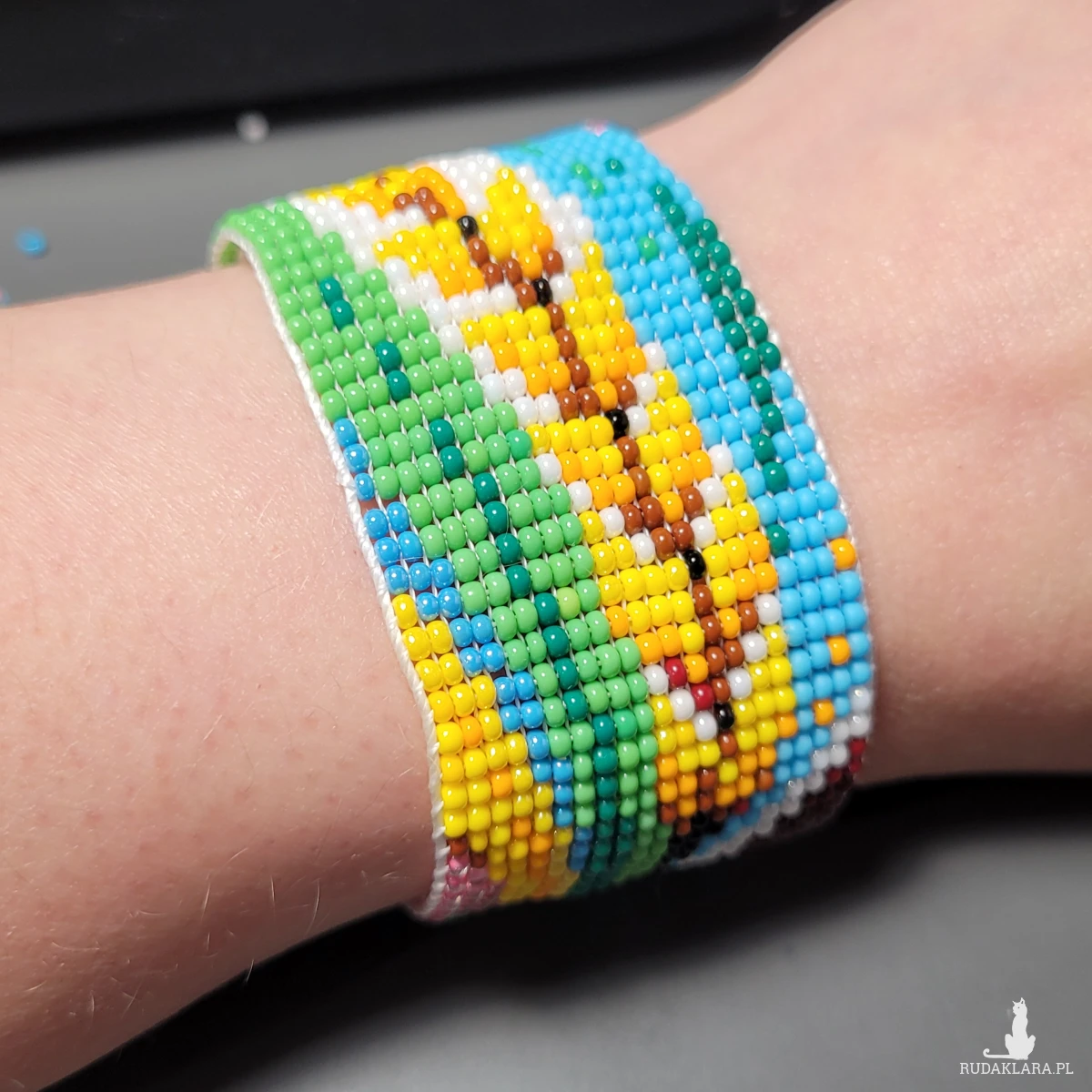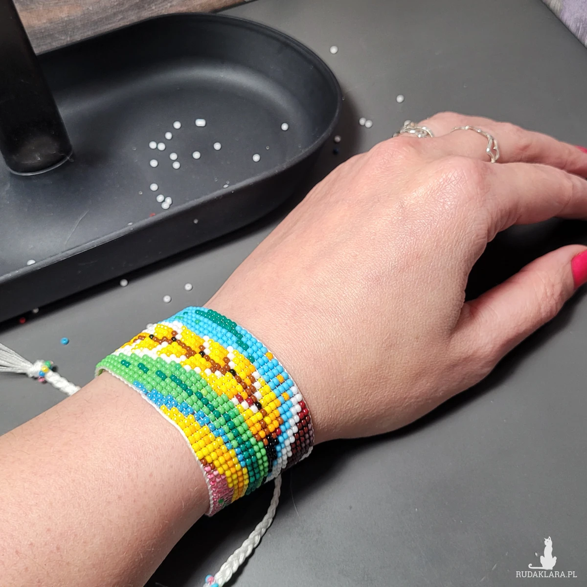 Bransoletka "Zboże" własnoręcznie wytkana na krosnie ze szklanych koralików czeskich Preciosa z zapięciem regulowanym.