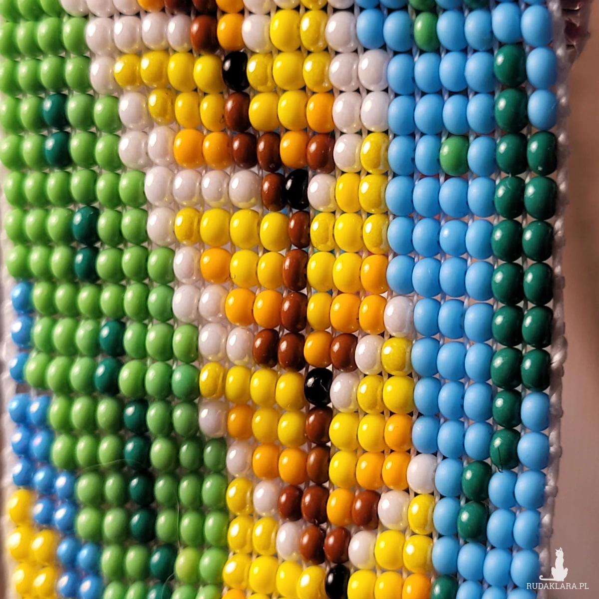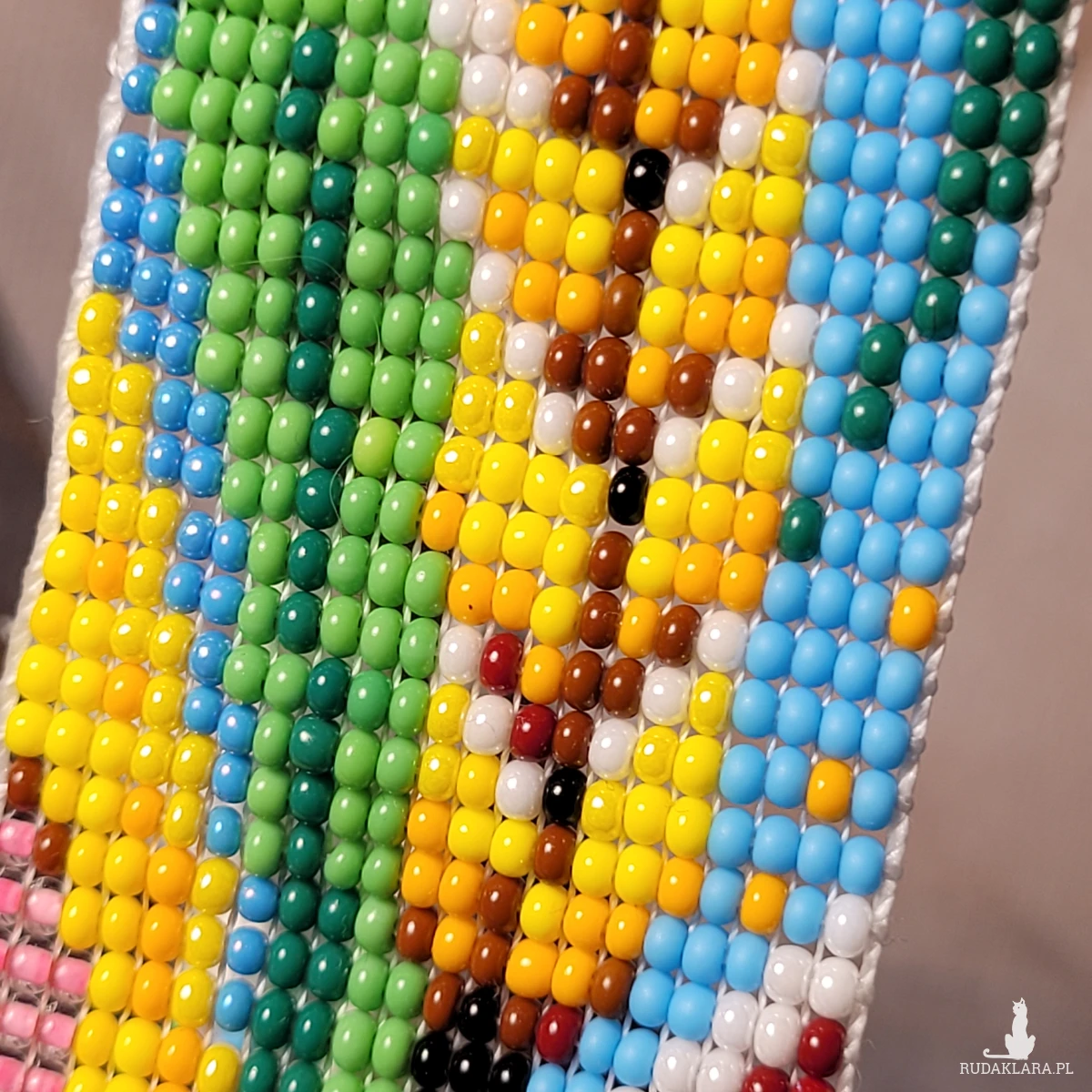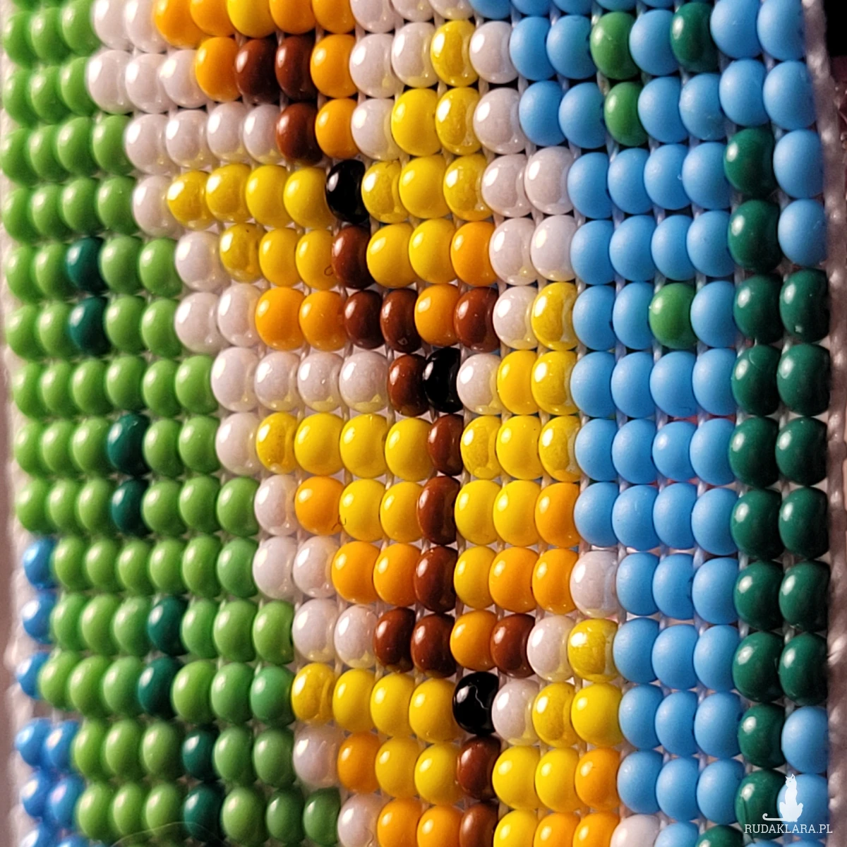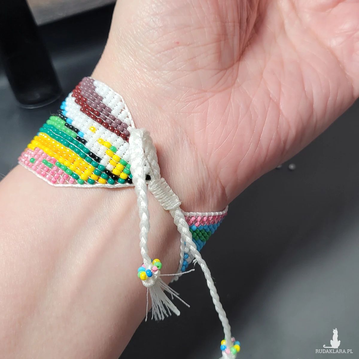 Bransoletka "Zboże" własnoręcznie wytkana na krosnie ze szklanych koralików czeskich Preciosa z zapięciem regulowanym.