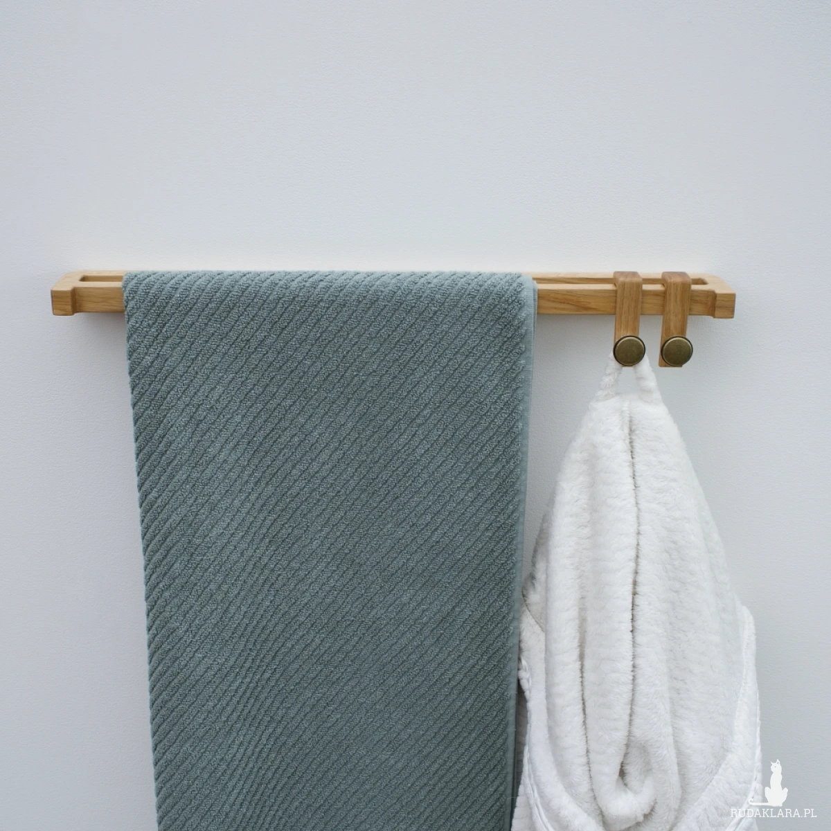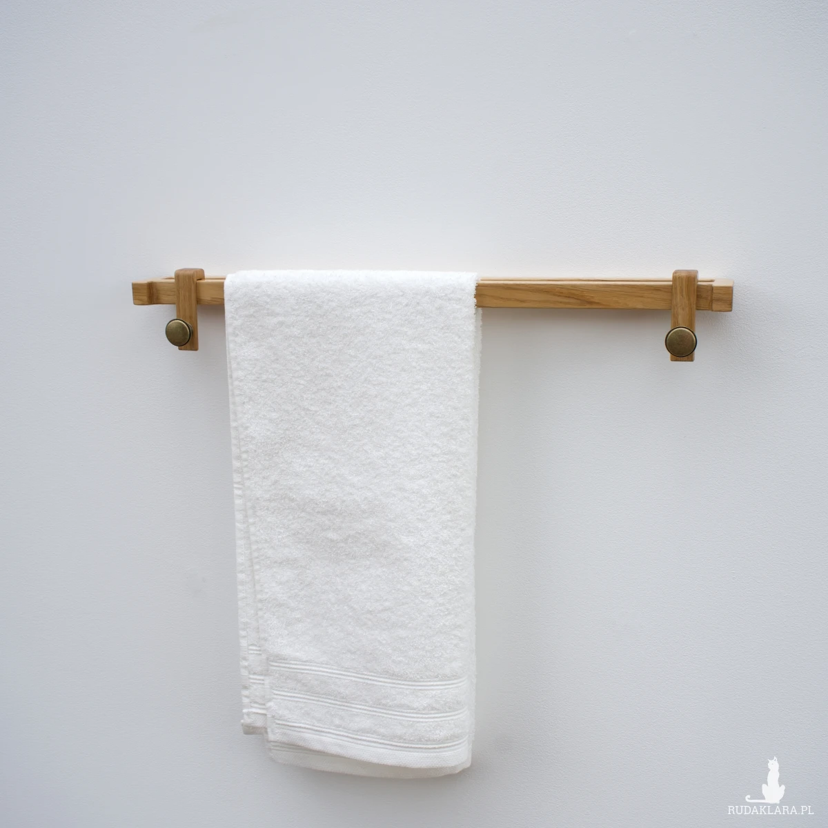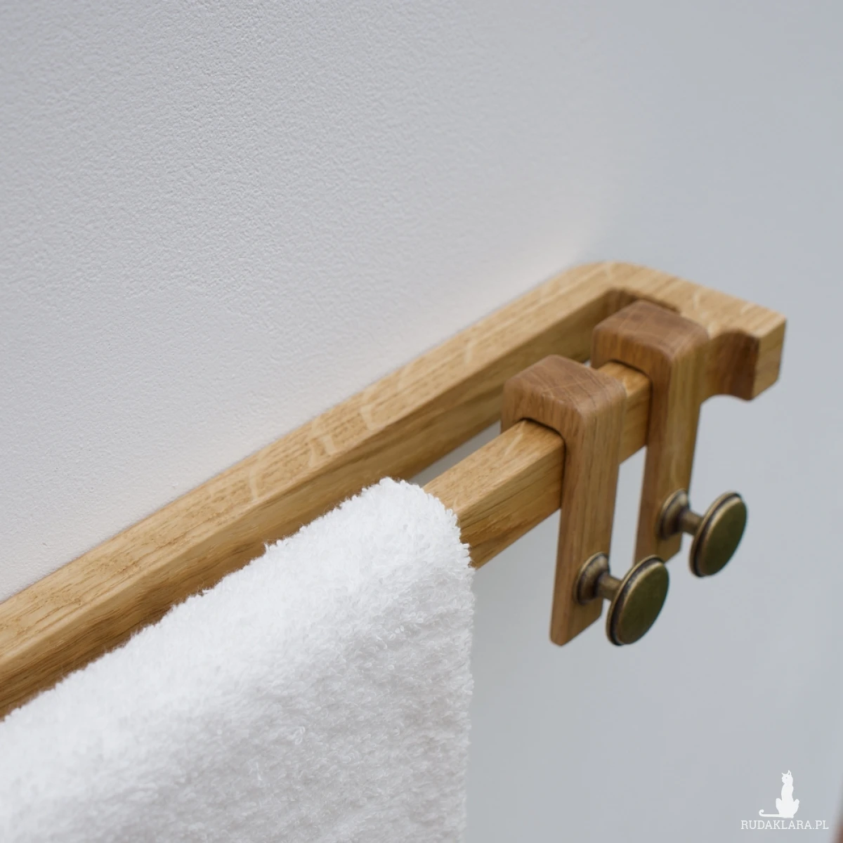 Drewniany wieszak na ręczniki ścienny z ruchomymi haczykami