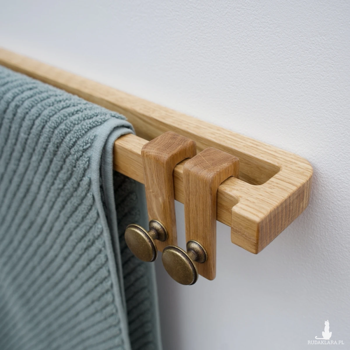 Rustykalny Dębowy Wieszak na Ręczniki z Haczykami