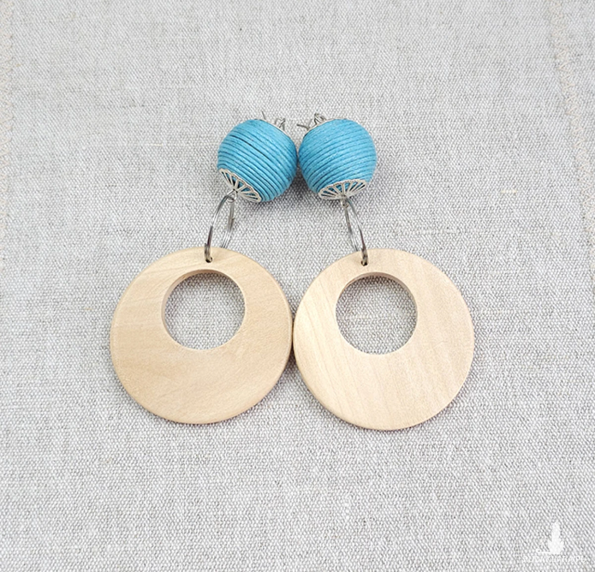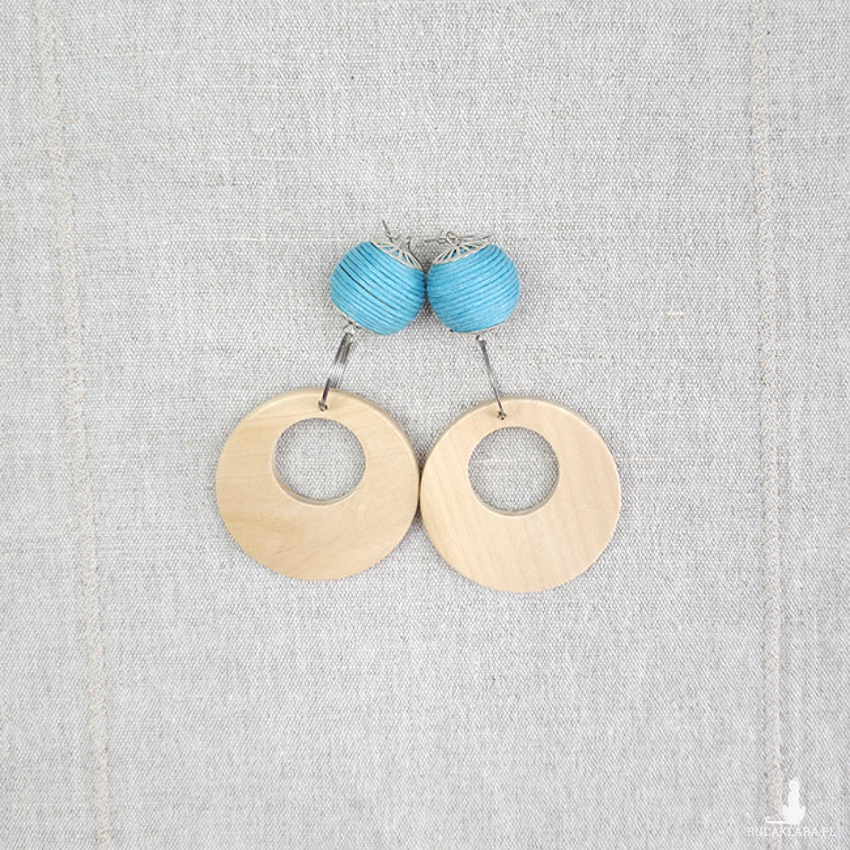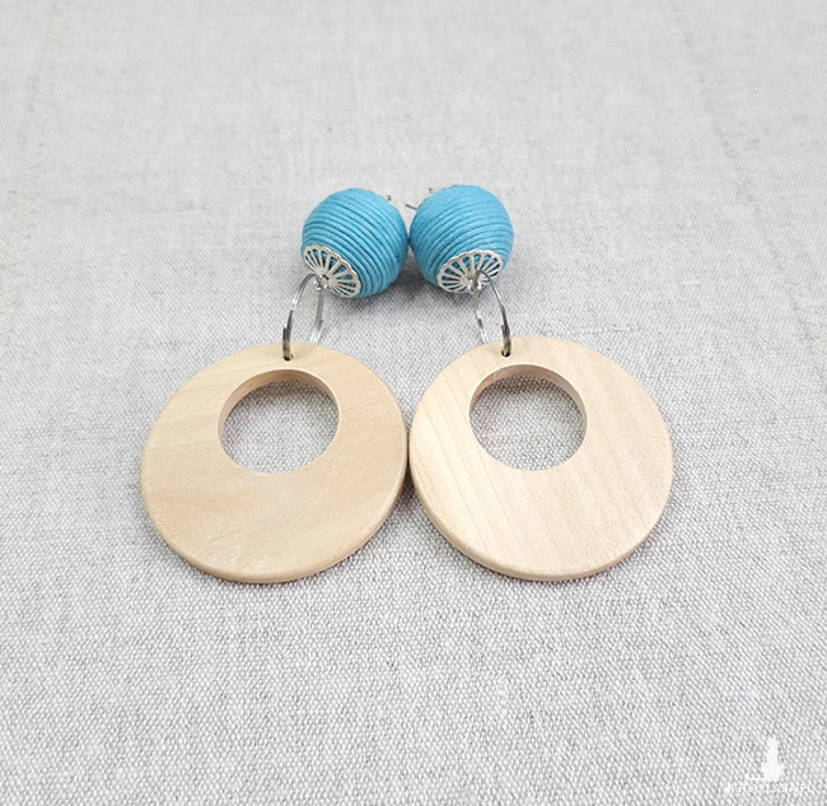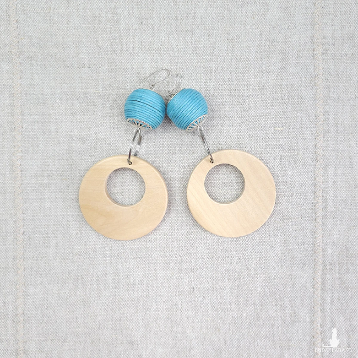 6675 duże, długie, niebiesko-beżowe kolczyki;