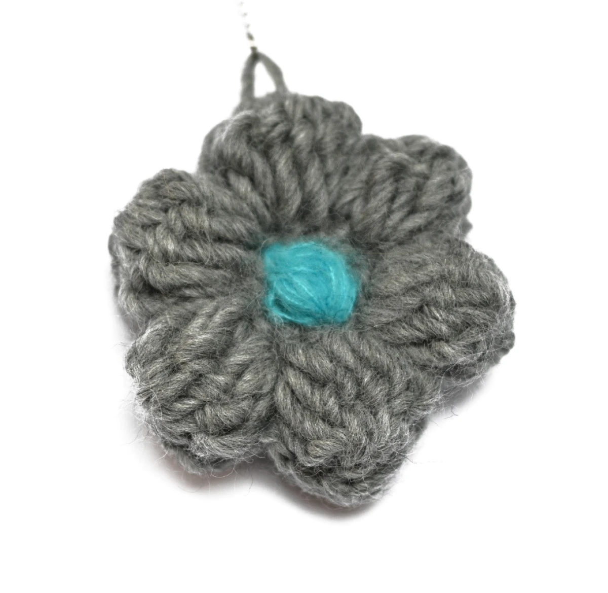 Brelok Lunaria Grande, Ręcznie robiony brelok kwiat z włóczki – elegancki dodatek do torebki lub kluczy