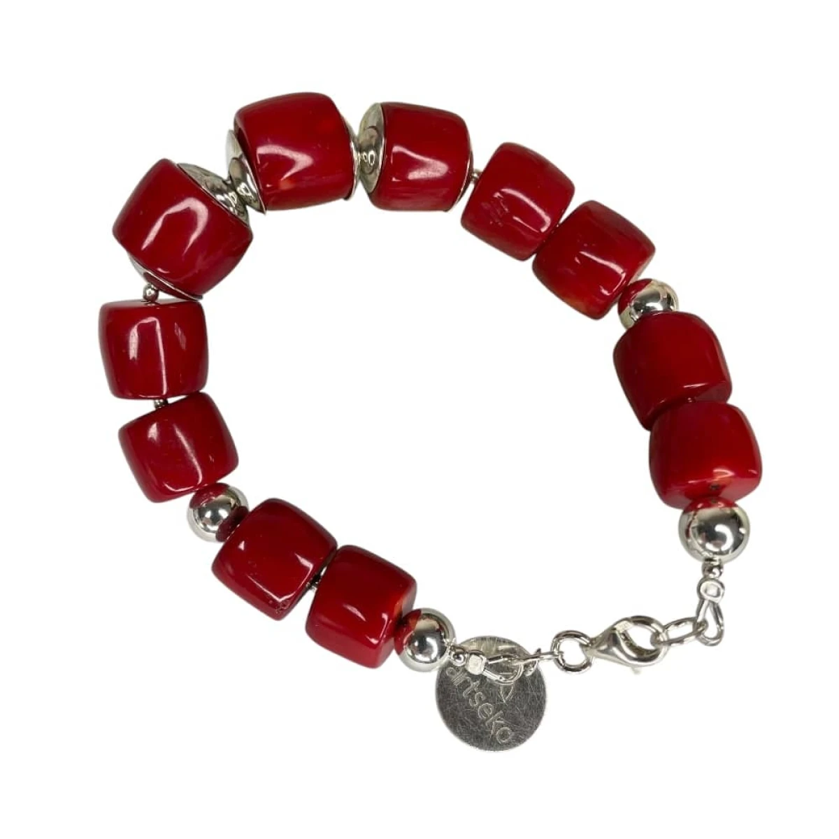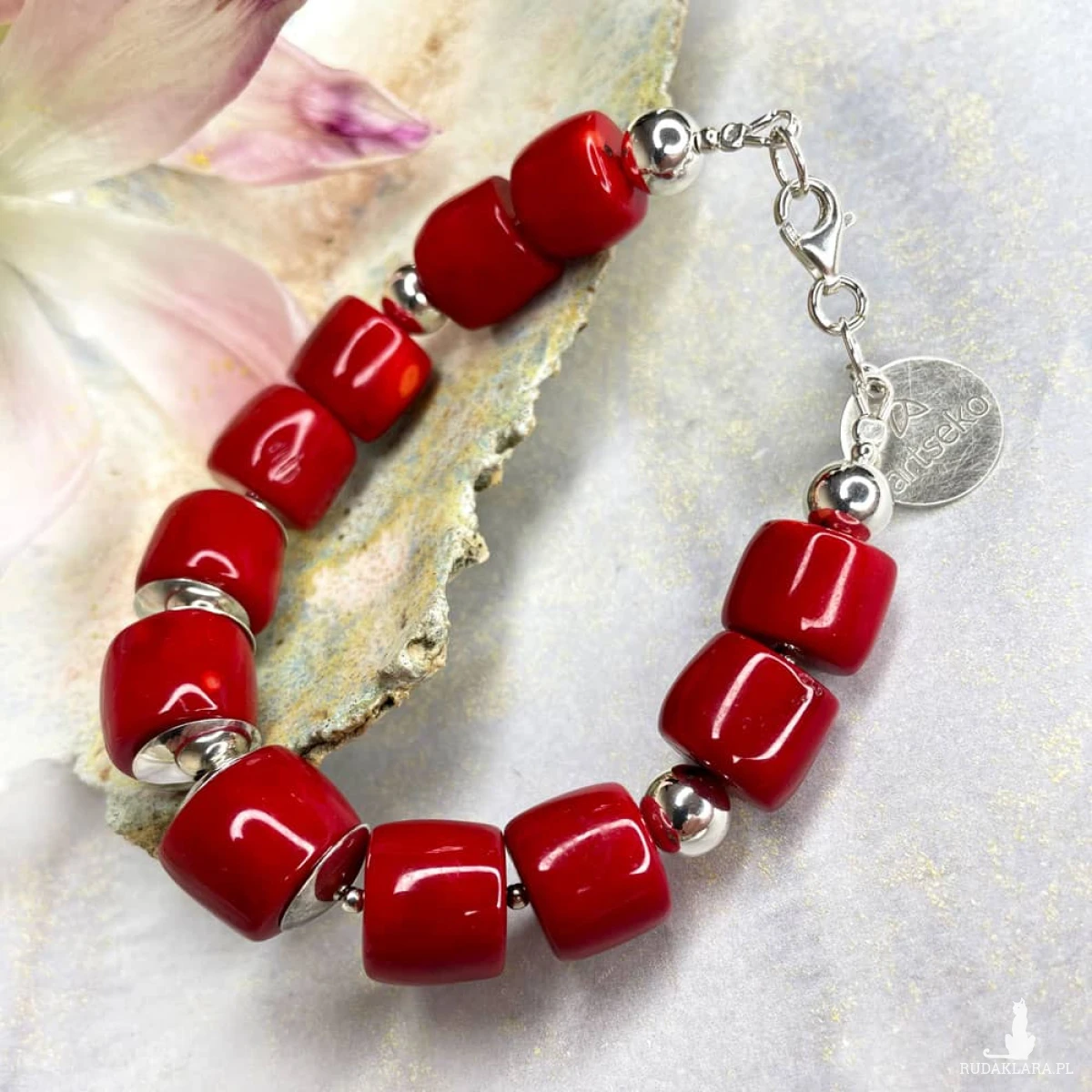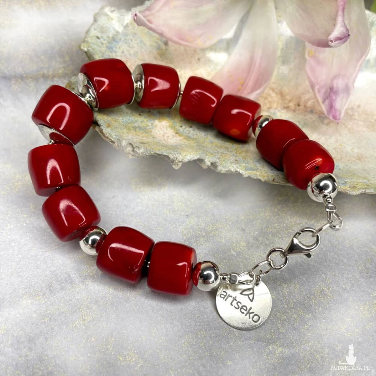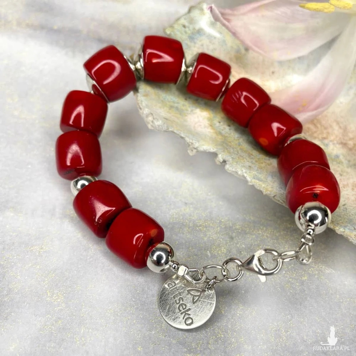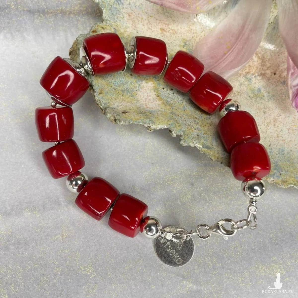 Koral robaczywka w intensywnym, głębokim odcieniu czerwieni połączony ze srebrnymi akcentami tworzy biżuterię, która zachwyca ponadczasowym stylem. Regularne cylindryczne korale zostały starannie dobrane i ułożone w harmonijną całość, podkreślając elegancję i naturalny urok tego wyjątkowego materiału. Srebrne akcenty dodają biżuterii delikatnego blasku, nadając biżuterii szyku i elegancji. To idealny wybór dla osób, które cenią wysoką jakość i nieprzemijające piękno kamieni naturalnych.