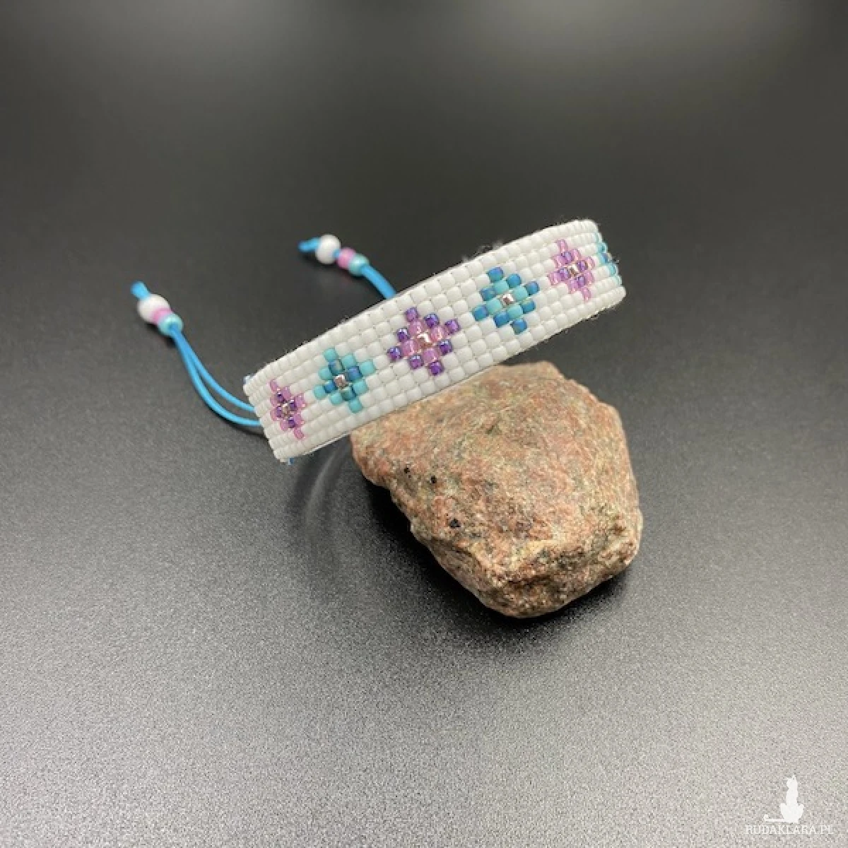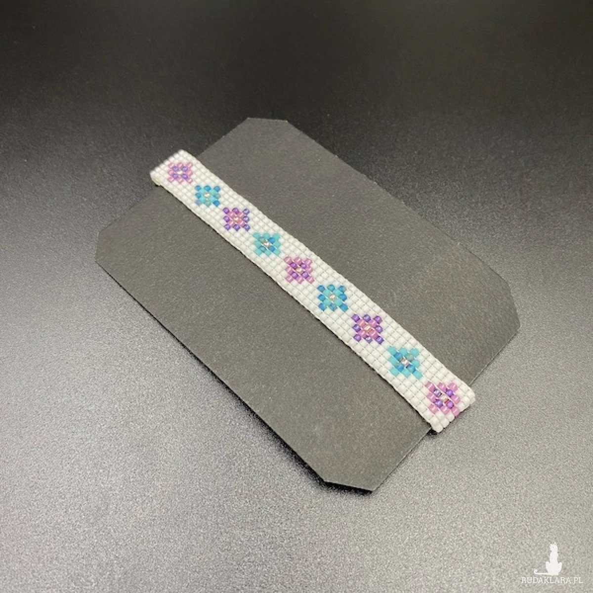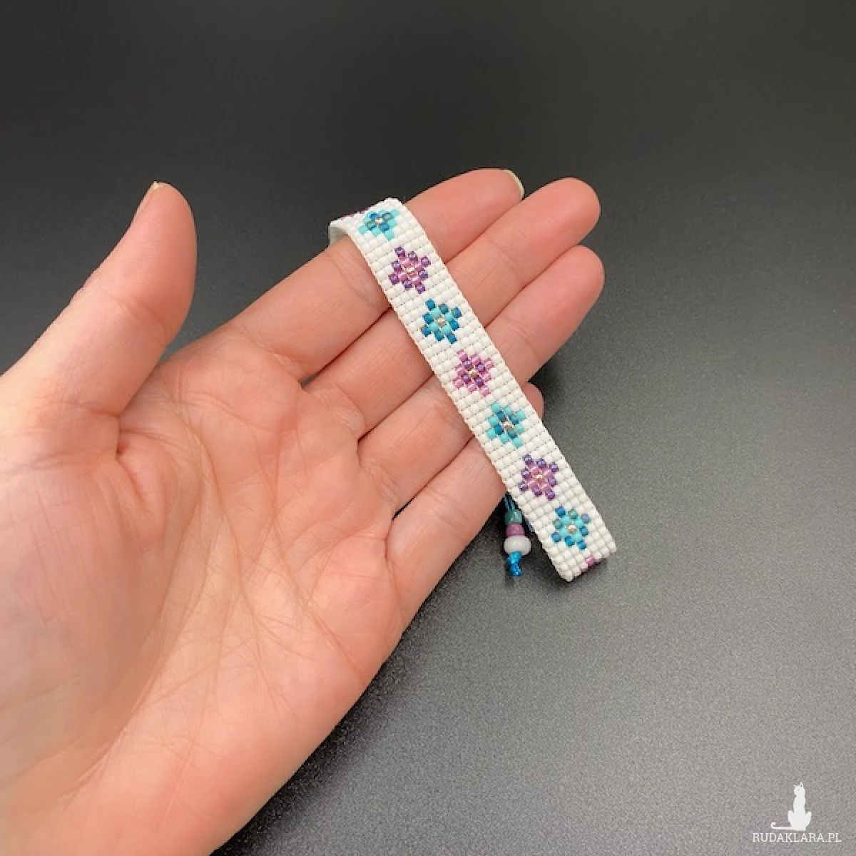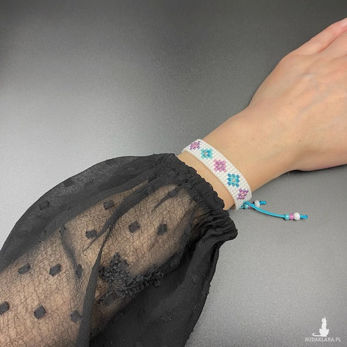 Kolory bransoletki: biały, turkusowy, morski, fioletowy, różowy.