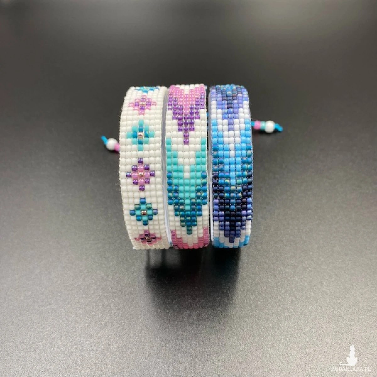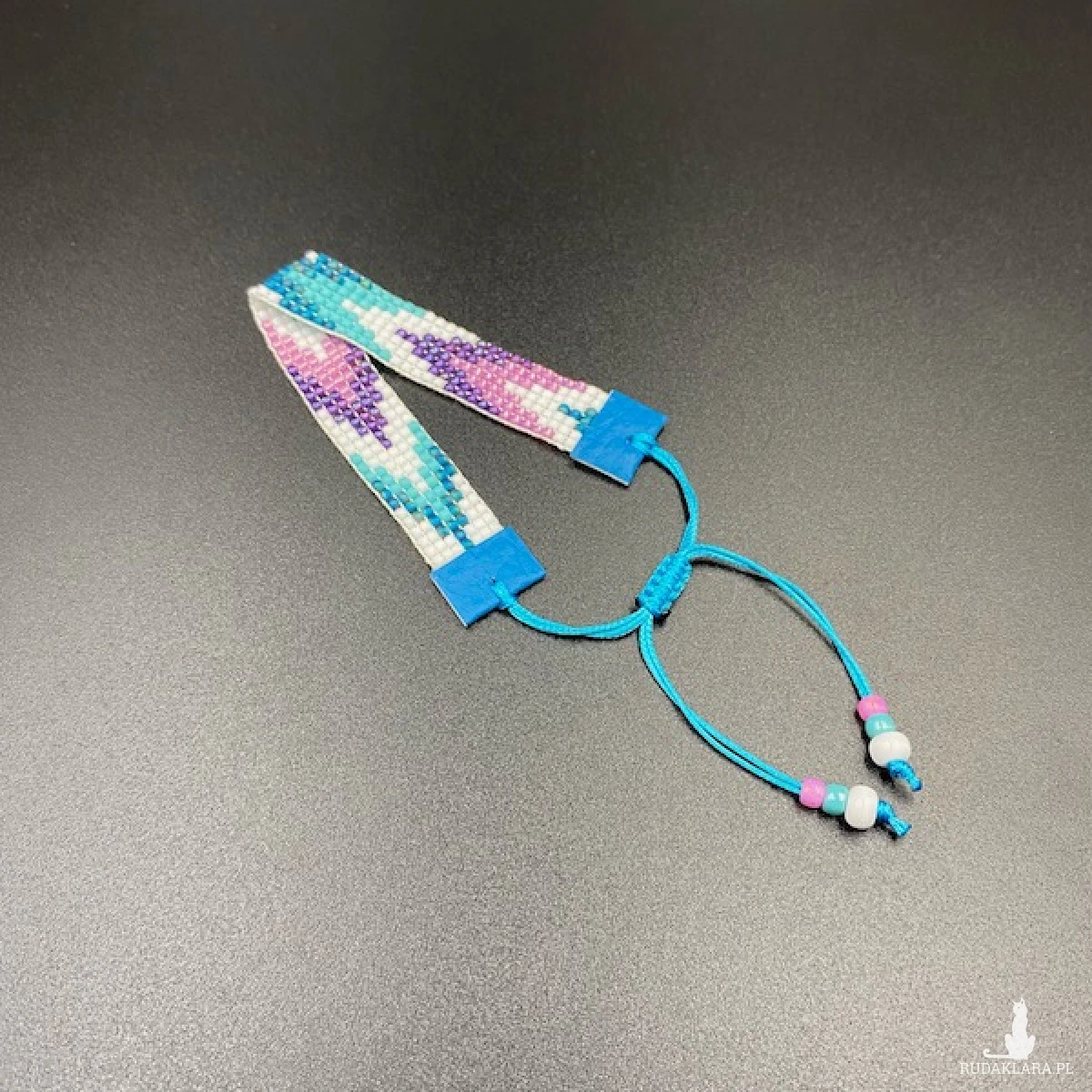 Kolory bransoletki: biały, turkusowy, morski, fioletowy, różowy.