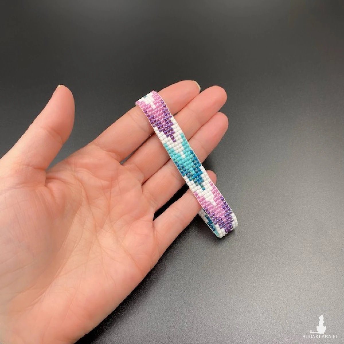 BRANSOLETKA TKANA NA KROŚNIE Z KORALIKÓW - biały turkusowy fiolet róż #908