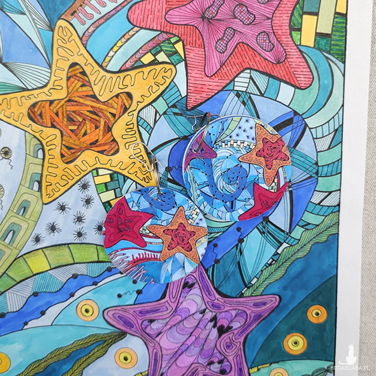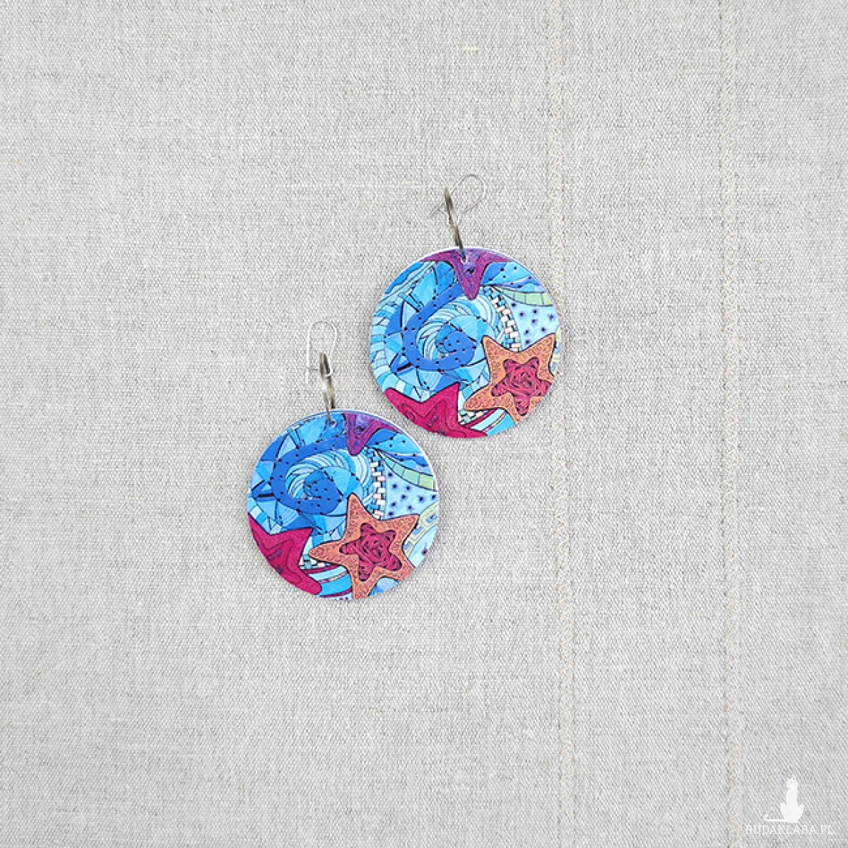 6692 kolorowe, niepowtarzalne, duże, dwustronne kolczyki; ocean