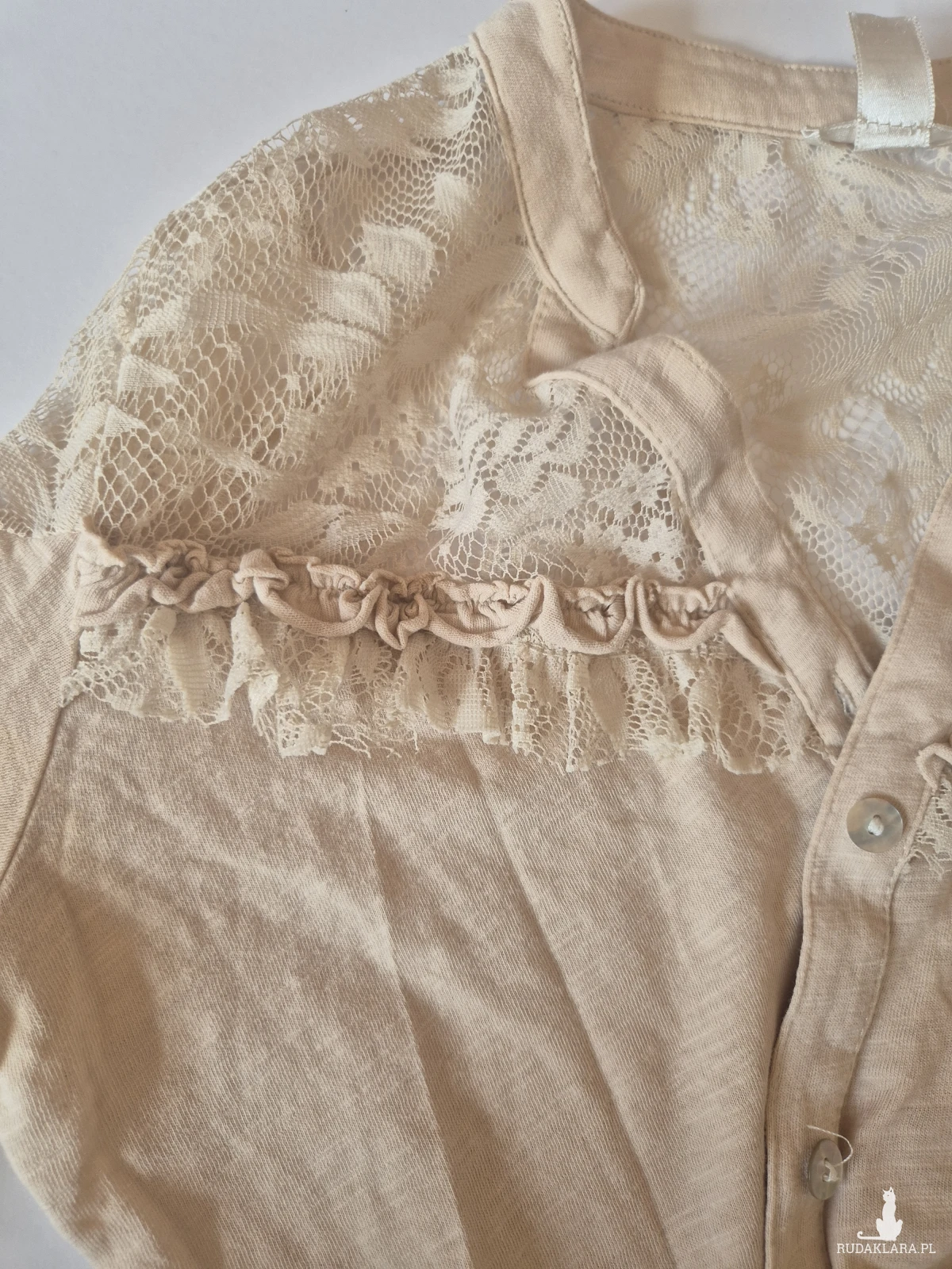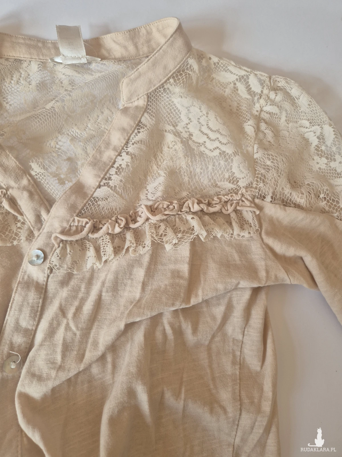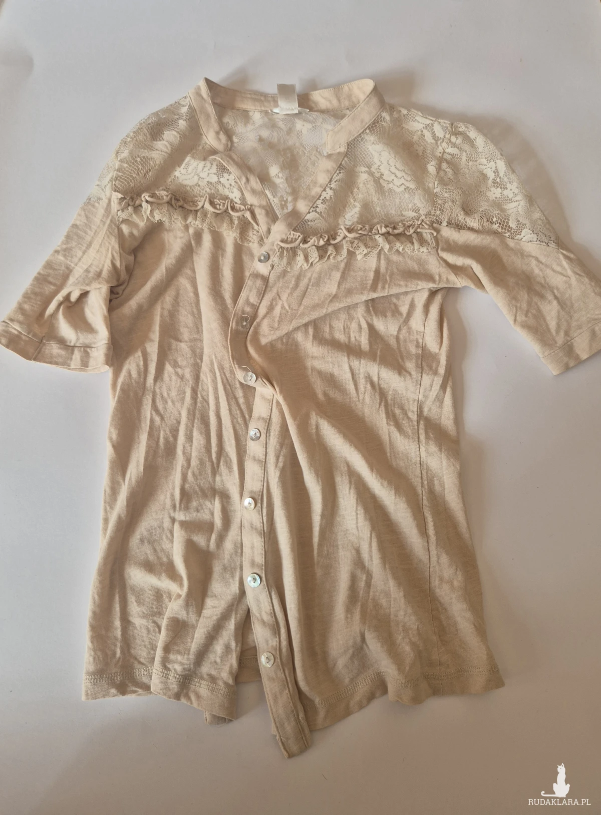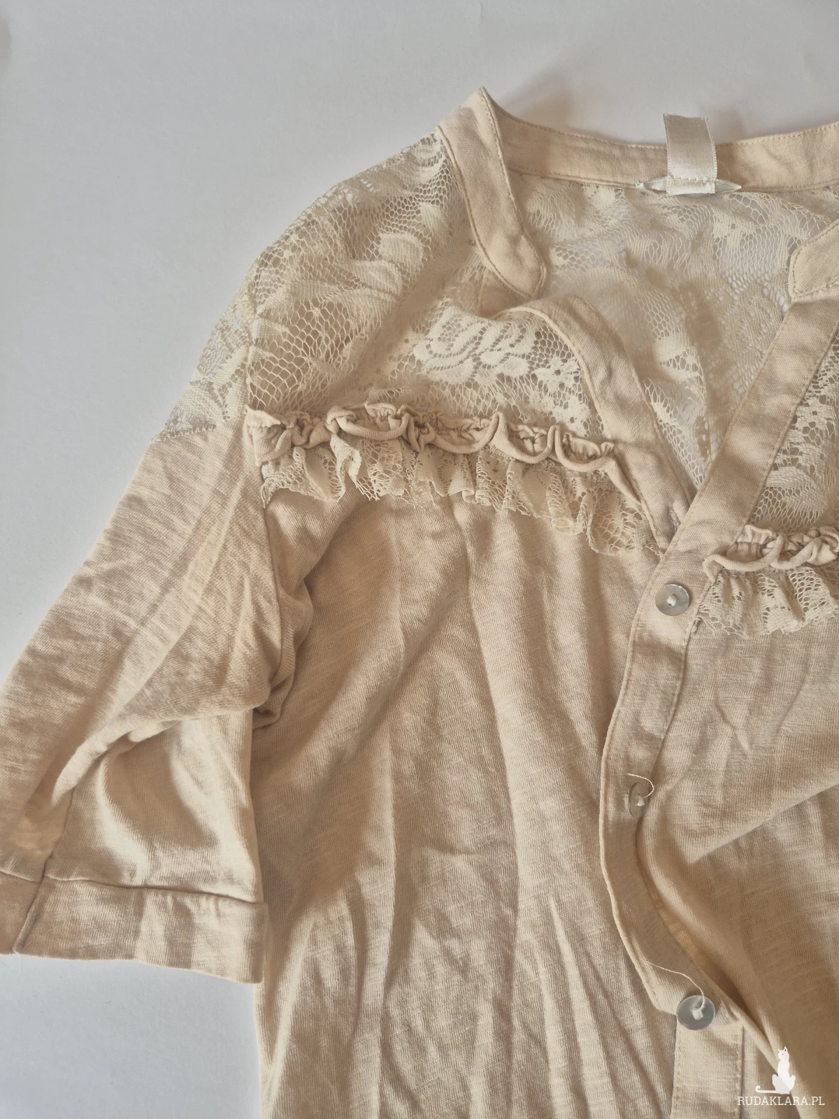 Bluzka Stradivarius Color ecru stylizowana na retro piękna koronka guziki z masy perłowej długość całości 61 cm w biuście 92 cm polecam