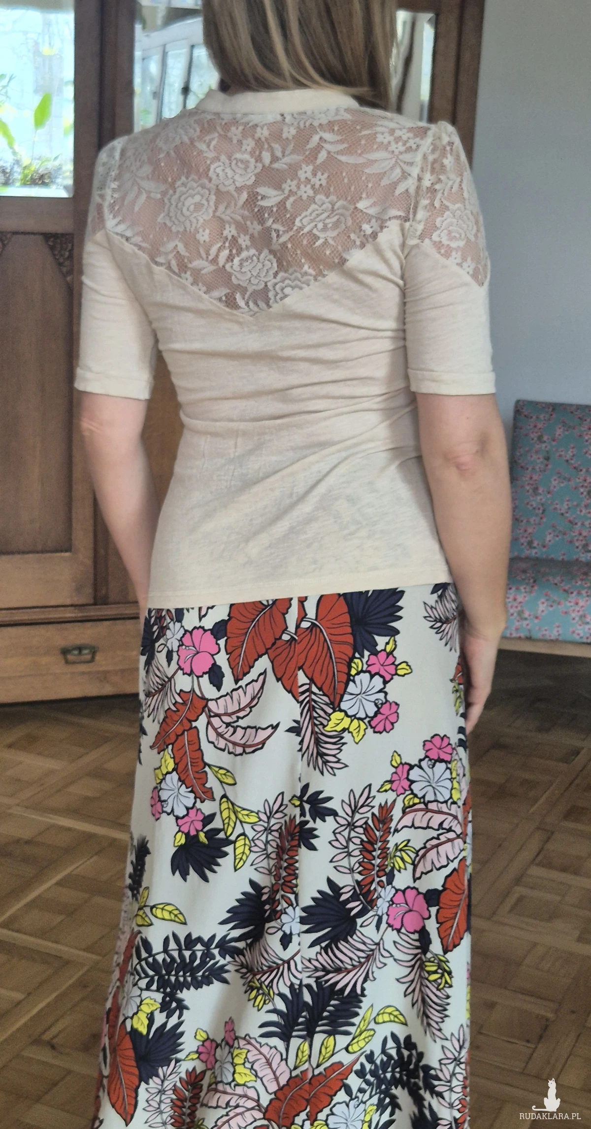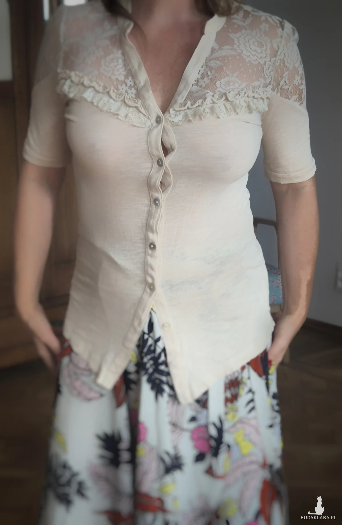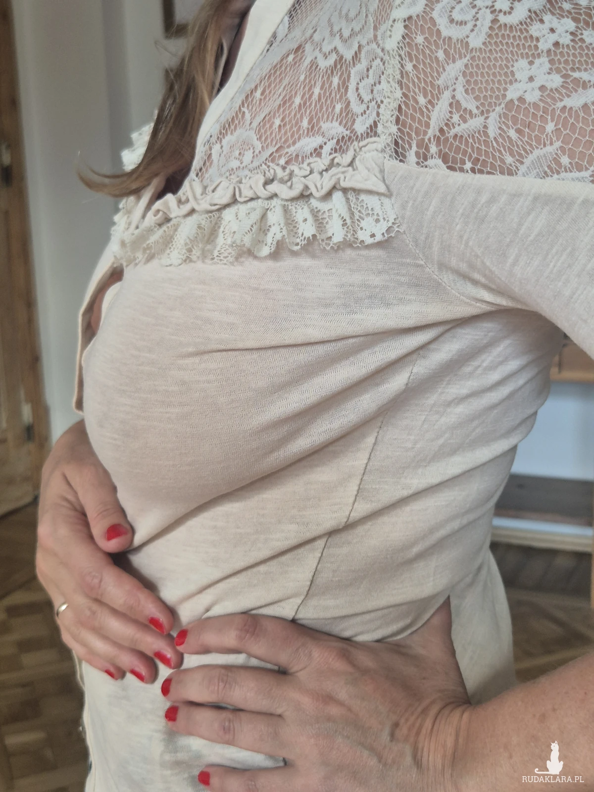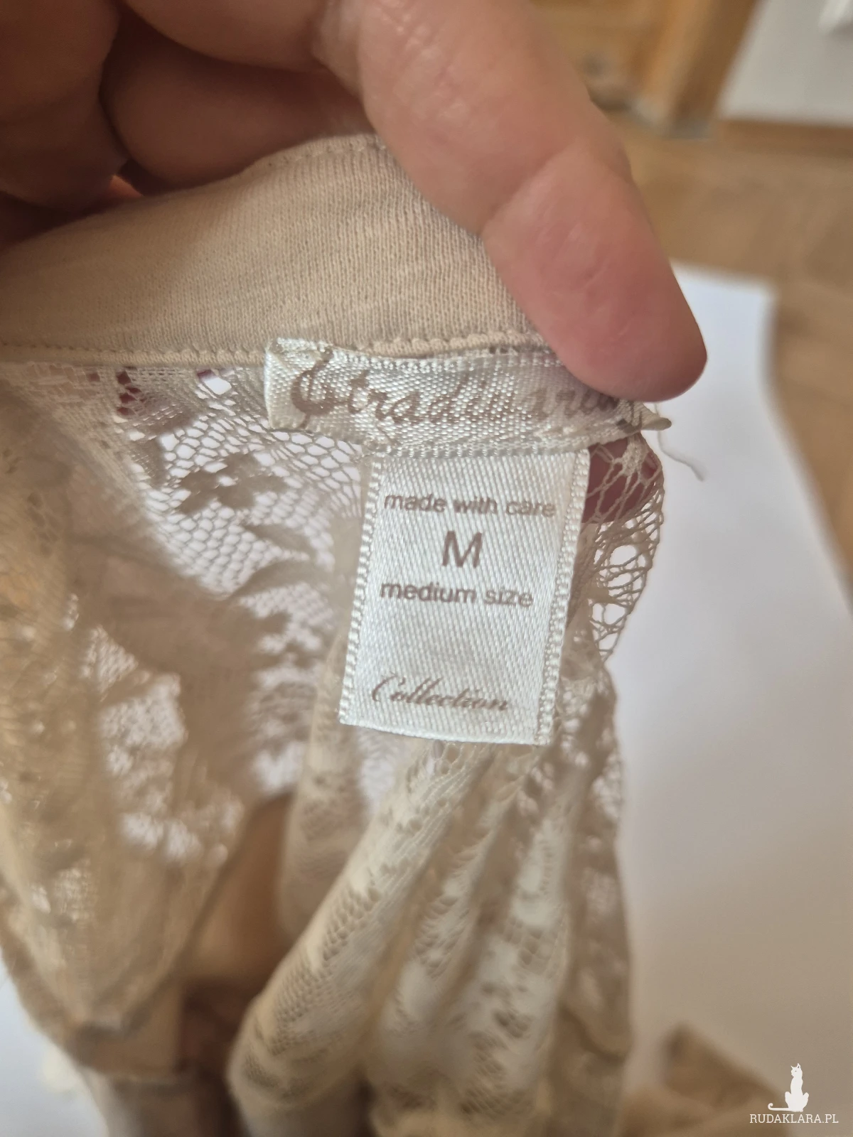 Bluzka Stradivarius Color ecru stylizowana na retro piękna koronka guziki z masy perłowej długość całości 61 cm w biuście 92 cm polecam