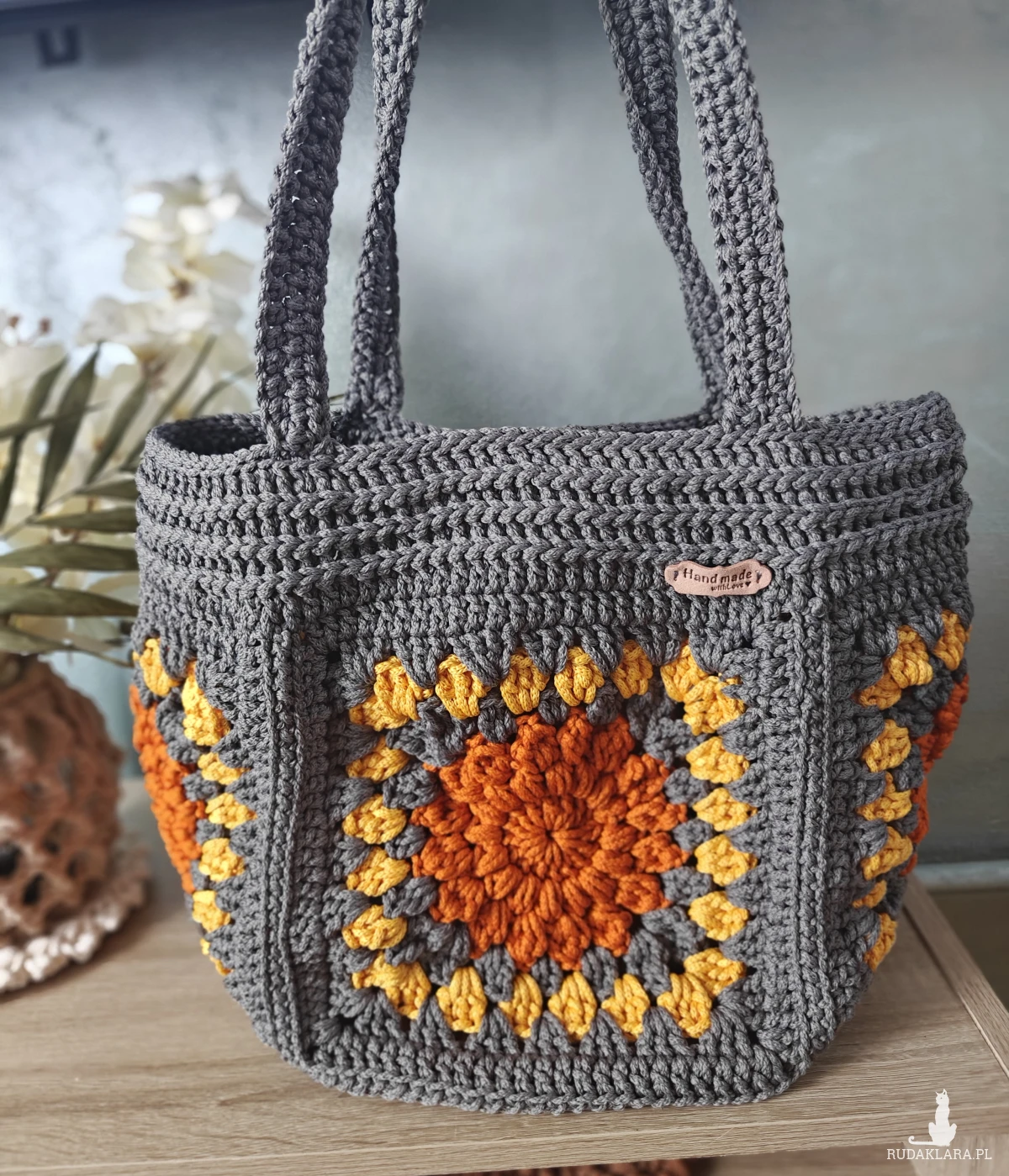 Torebka z 5 kwadratów, kwadrat 22x22, wysokość torebki 28cm mierzona na środku, uszy ok70cm.