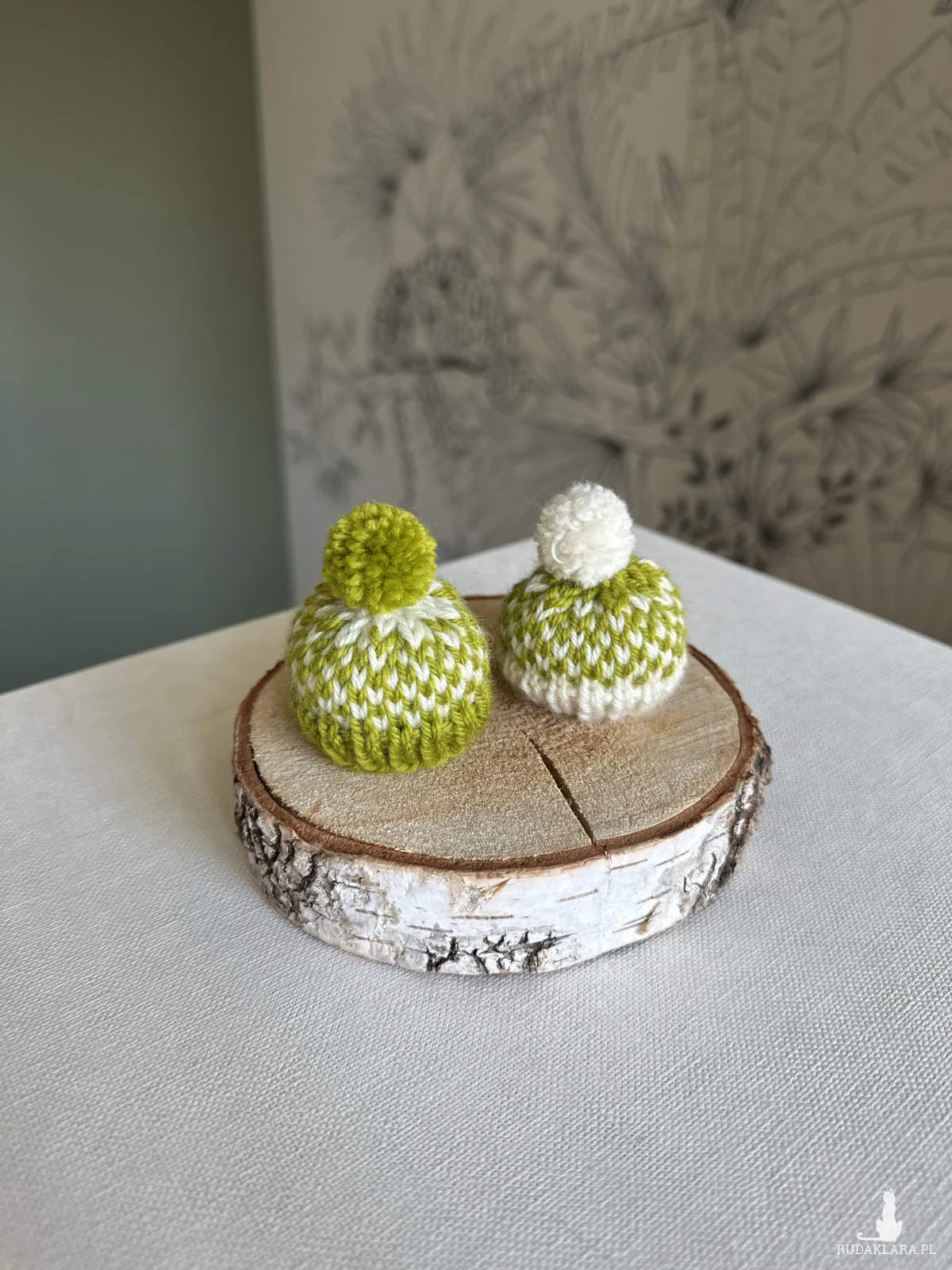 - czapeczka nr 1: limonkowy ściągacz i pompon, limonkowo-biała baza,
