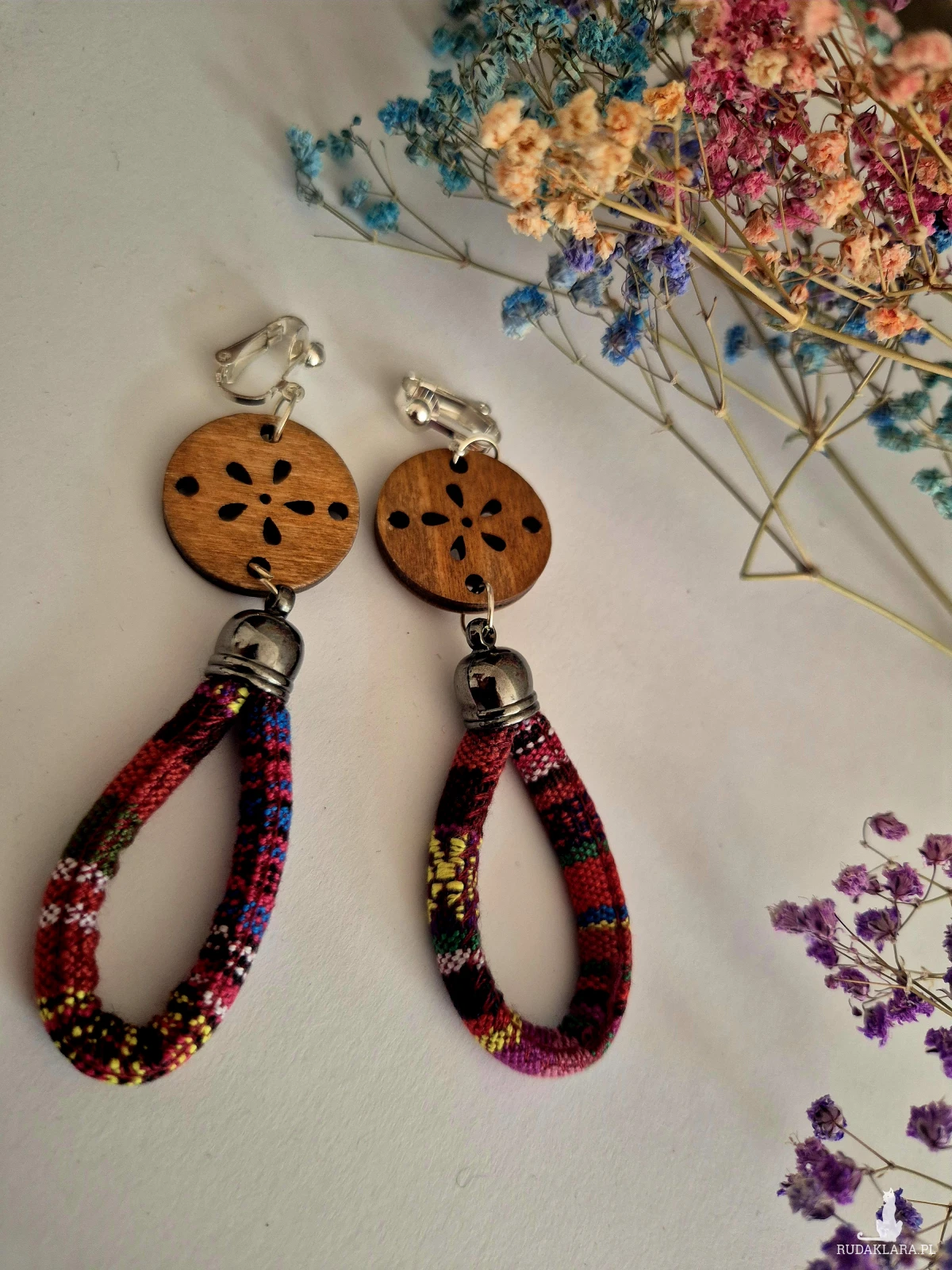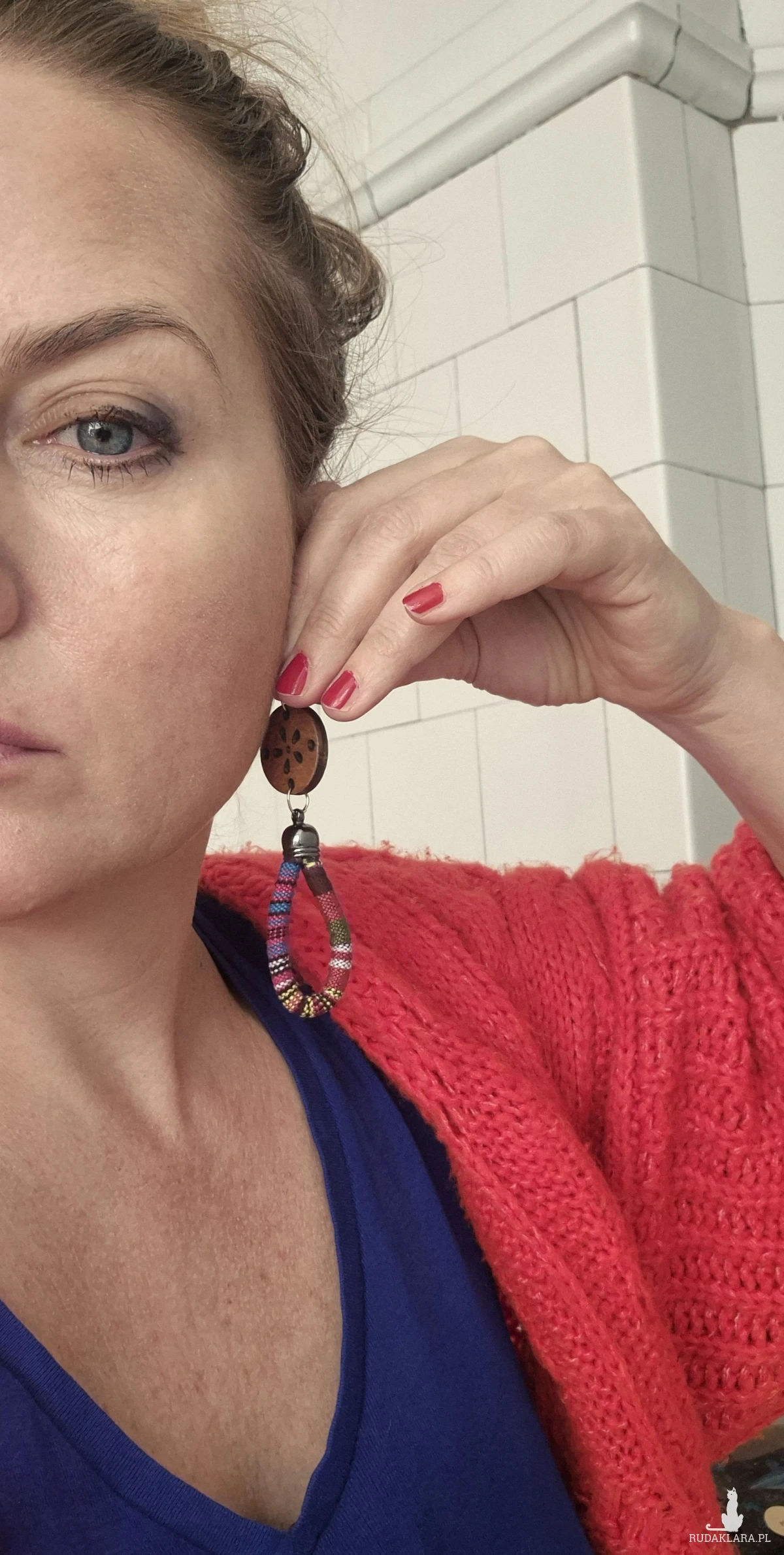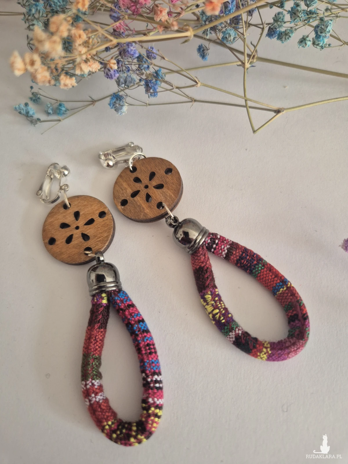 Klipsy ażurowe drewno i kolorowa lina polecam Box X1