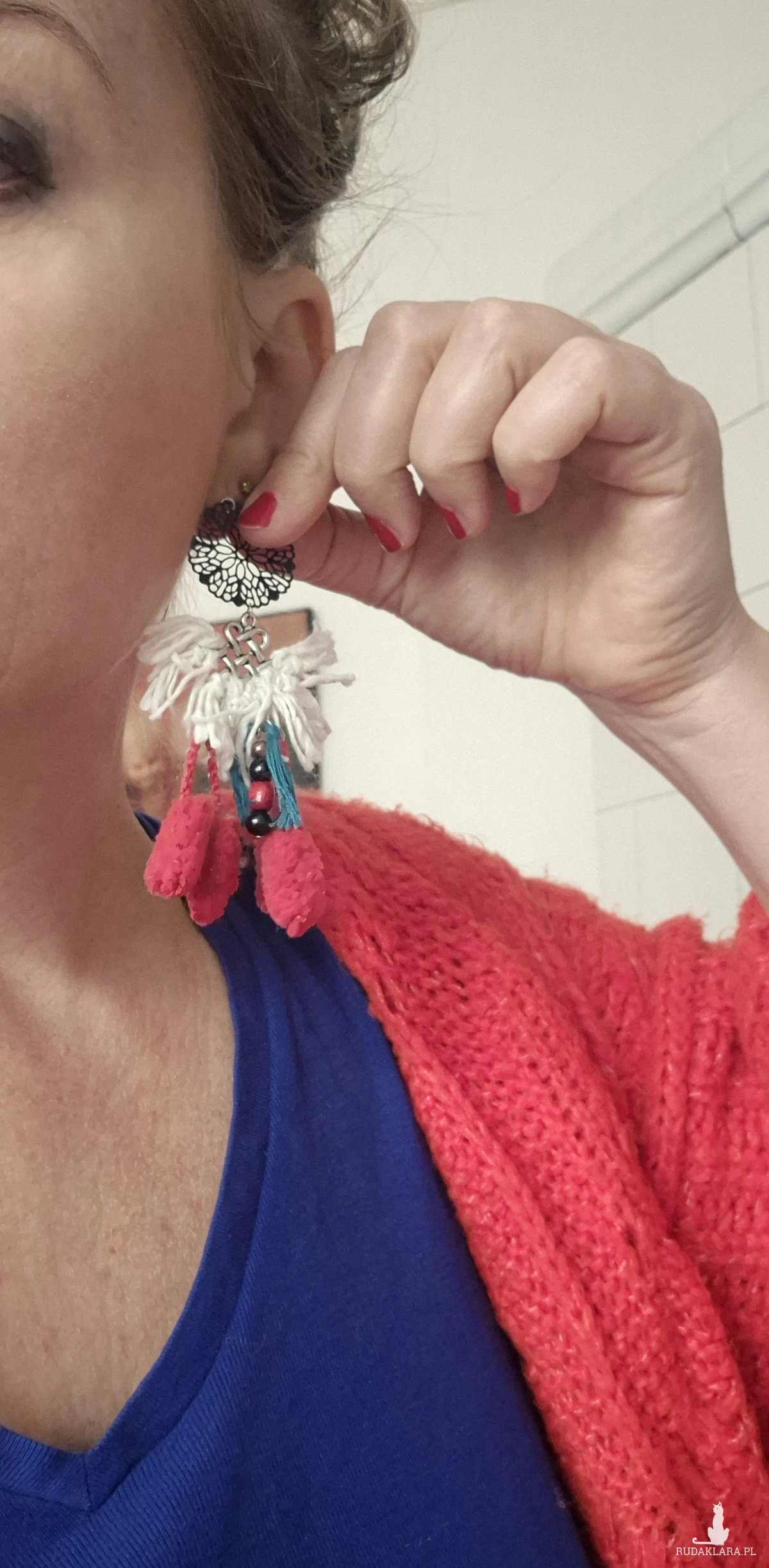Kolczyki boho z pomponami lekkie polecam Box X1