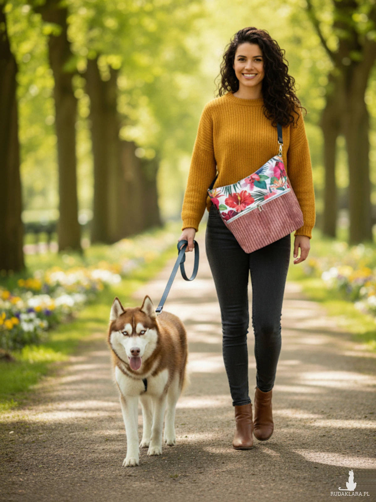 Kobiecy design – góra przodu wykonana z wodoodpornej tkaniny w zachwycający kwiatowy wzór, który od razu przyciąga wzrok. Tył i dół torebki uszyte są z miękkiego sztruksu w kolorze brudnego różu, który dodaje całości subtelnego uroku.