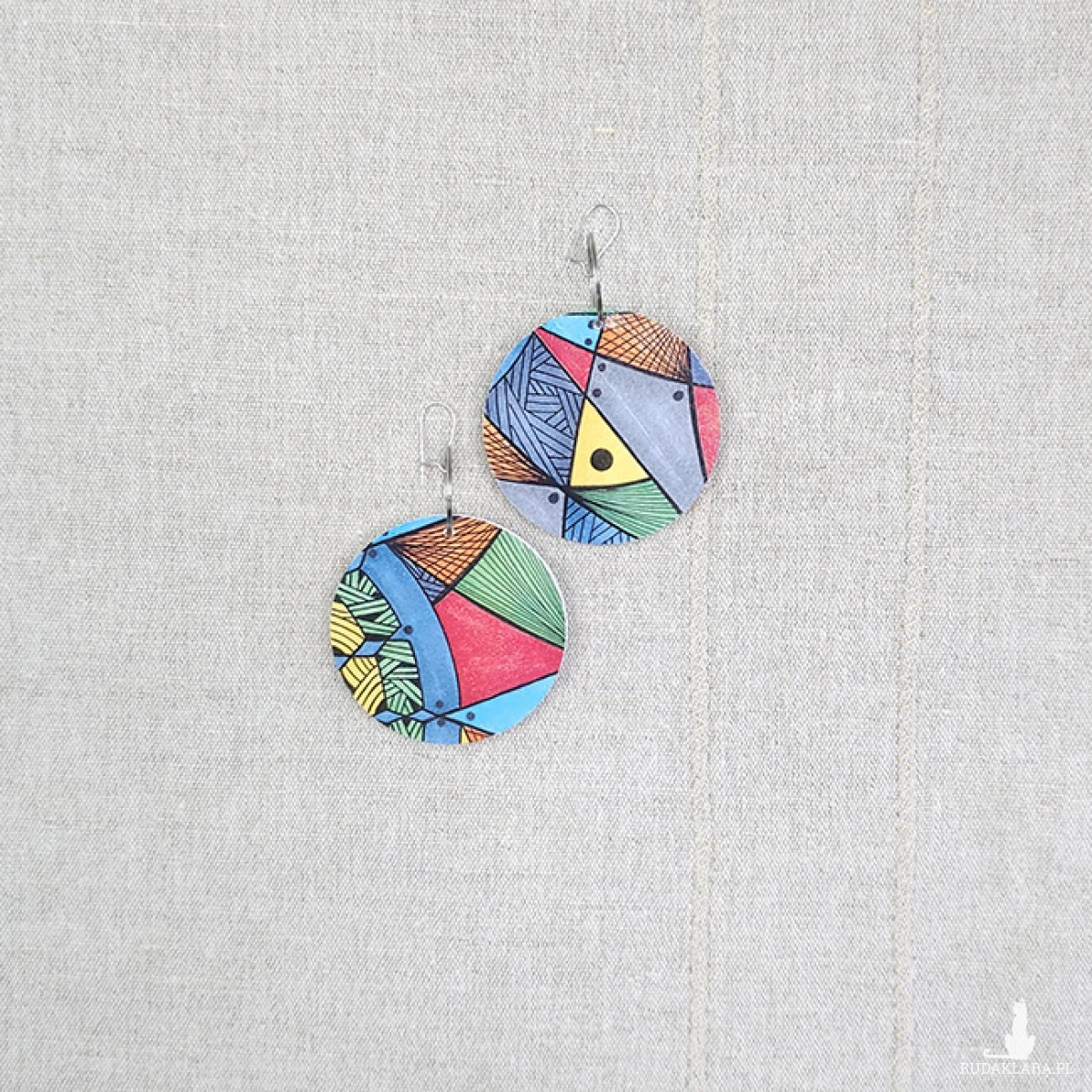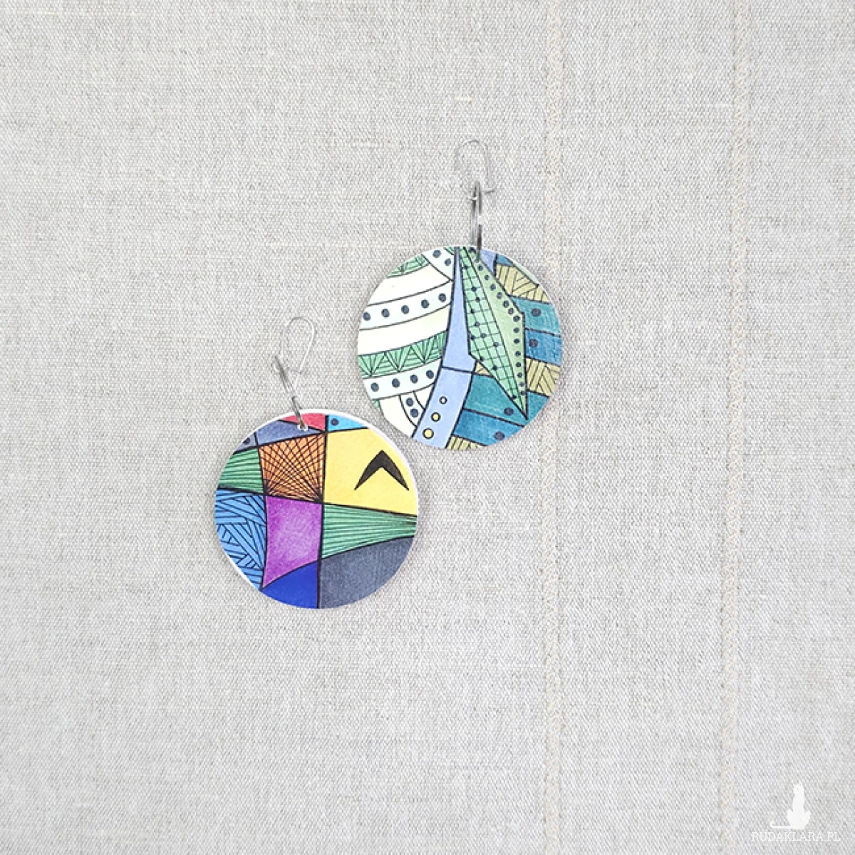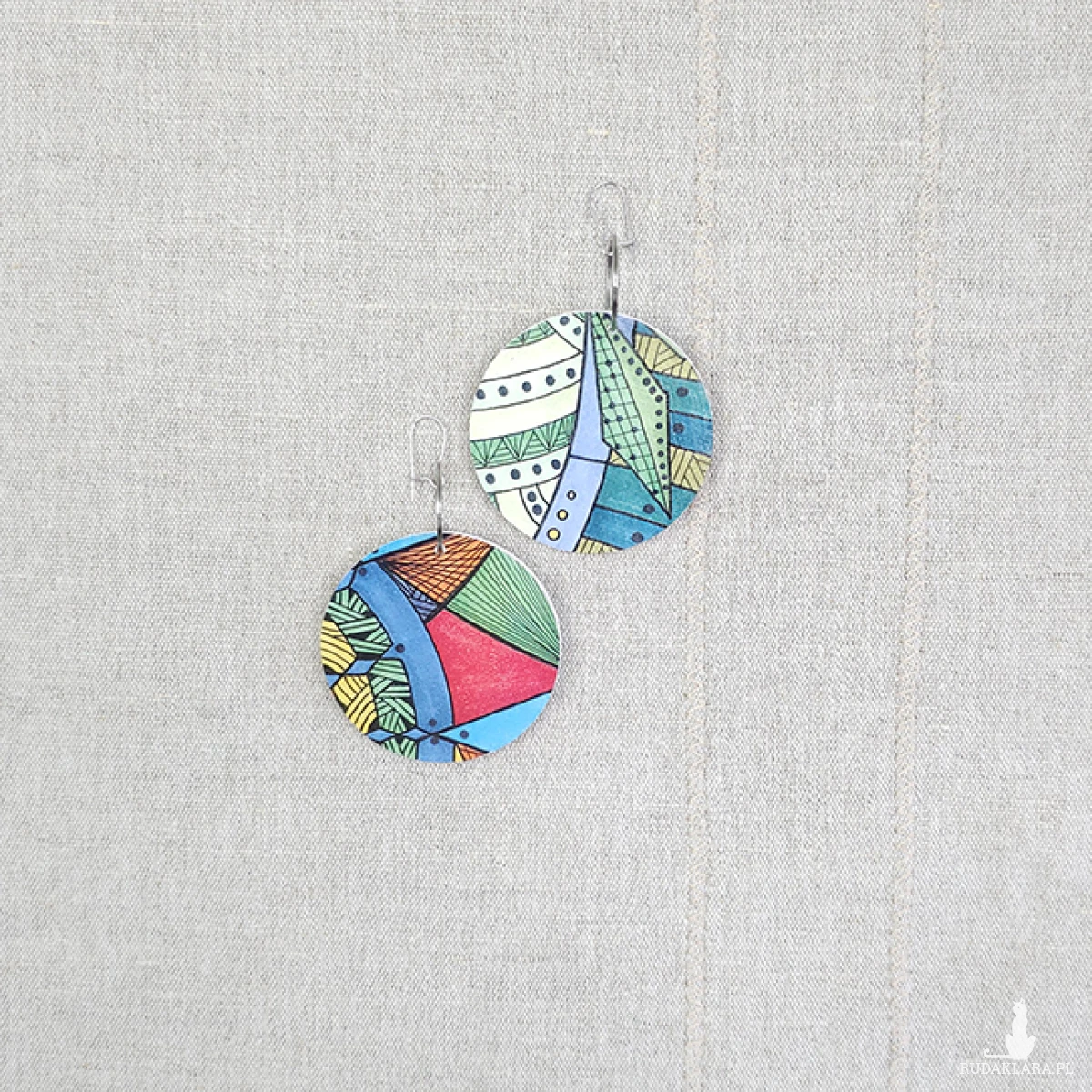 6708 kolorowe, niepowtarzalne, duże, dwustronne kolczyki; tęczowe kolczyki