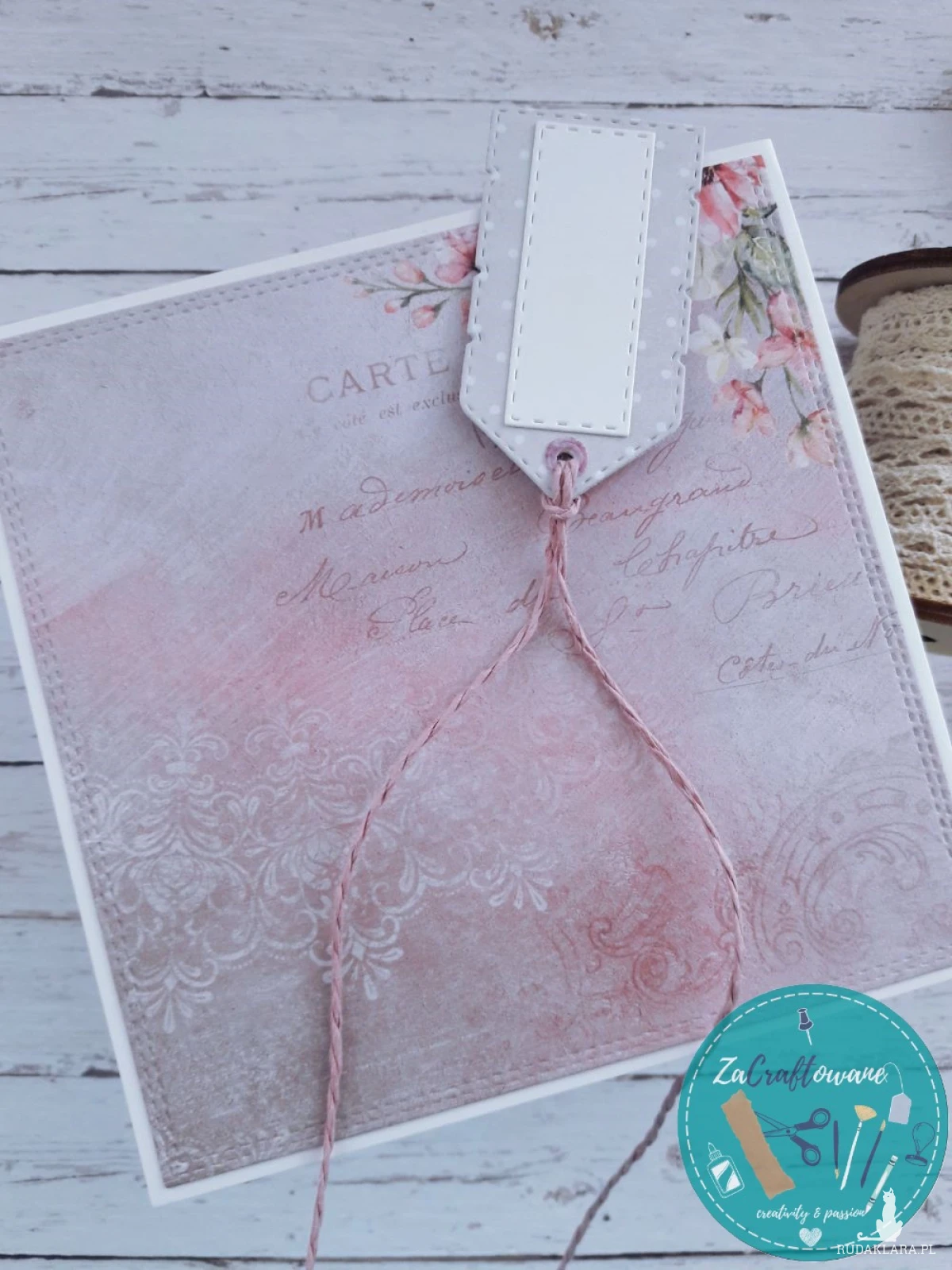 Koperta brudny róż: 15,3 cm × 15,3 cm.