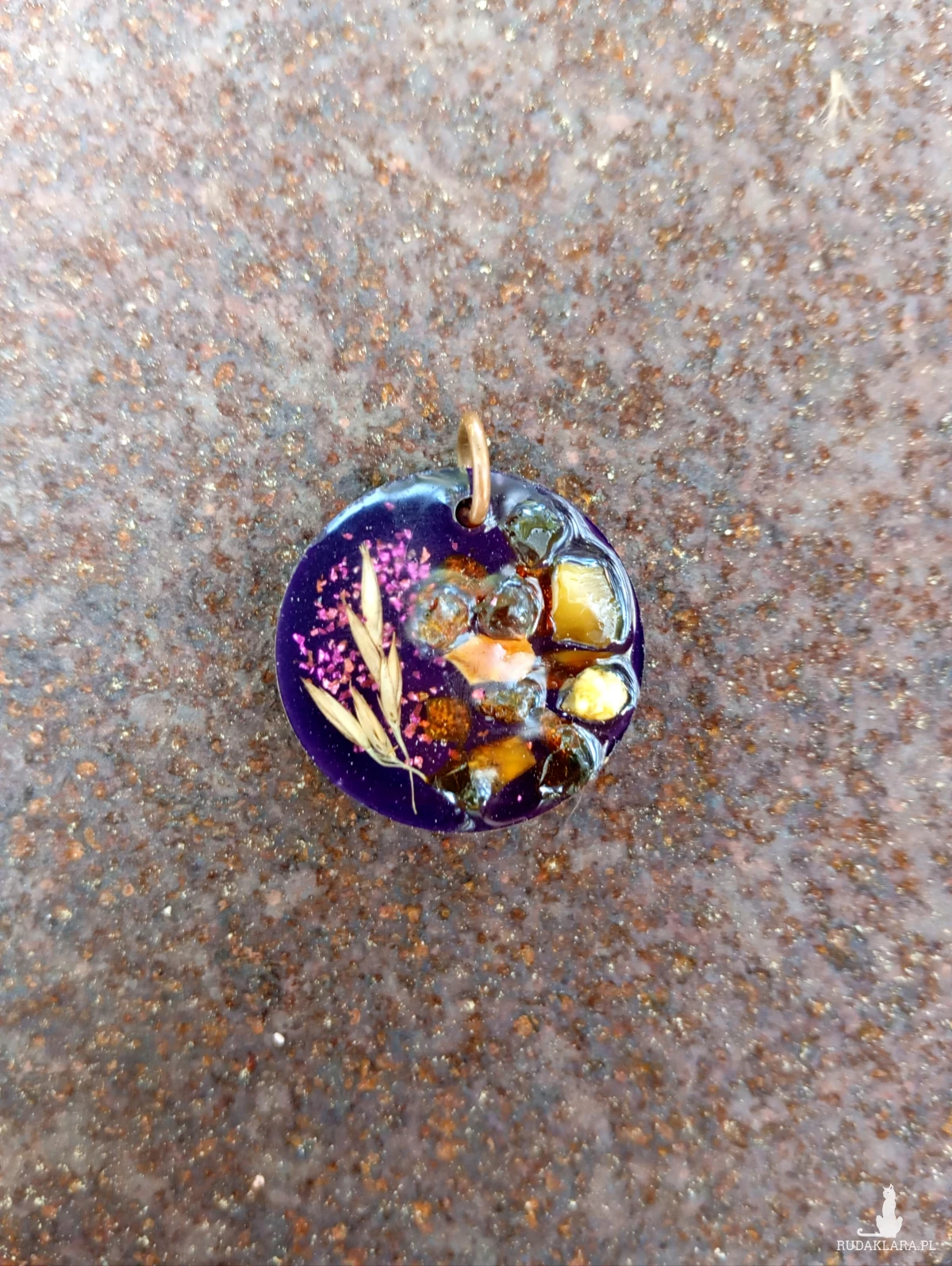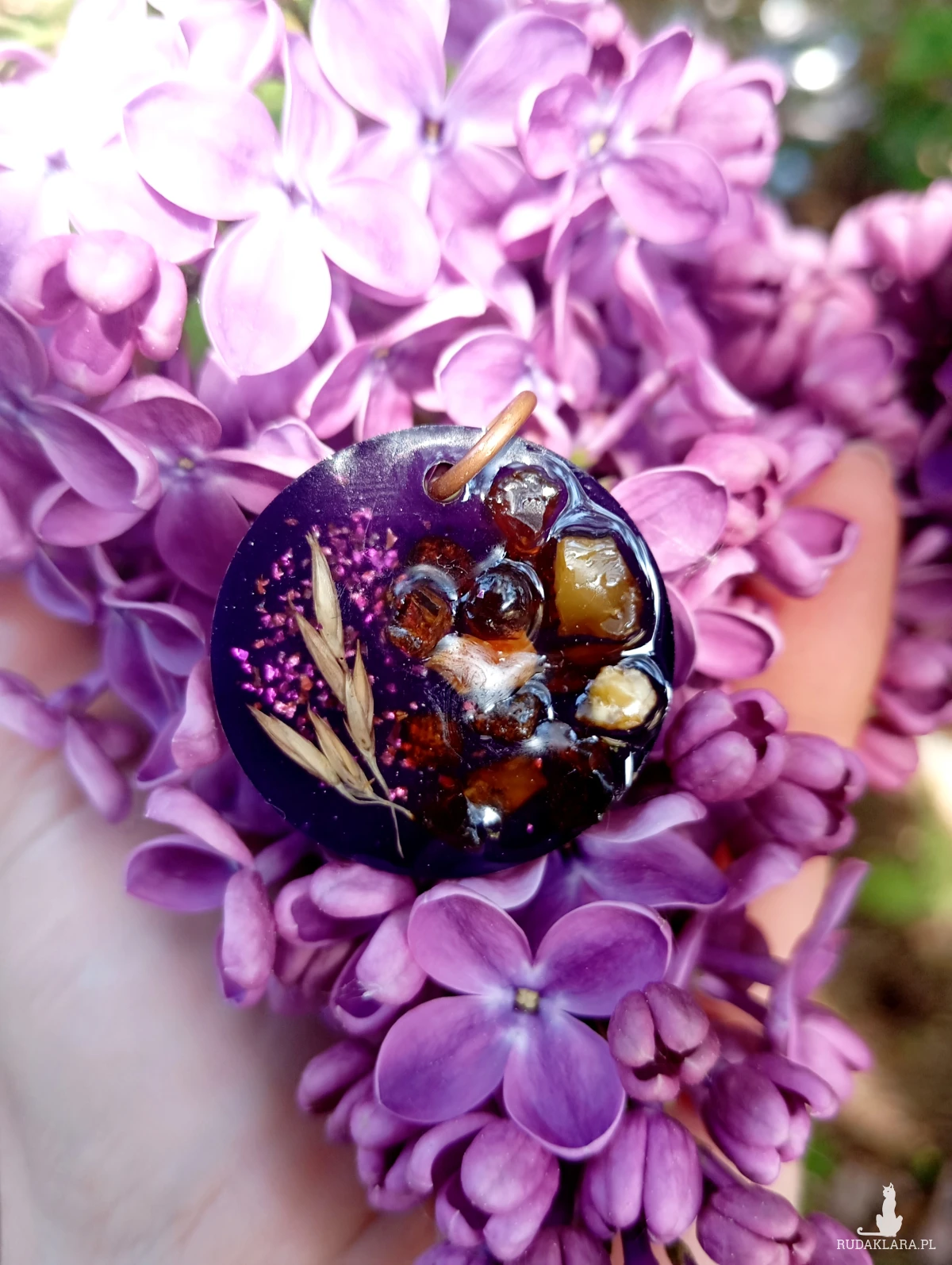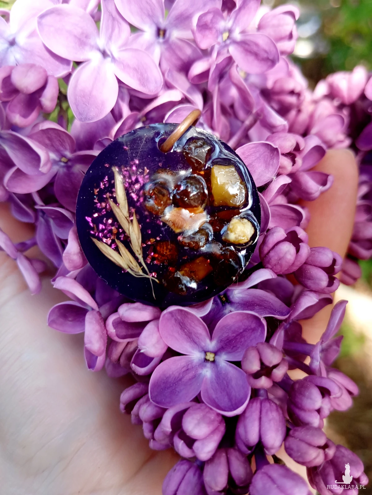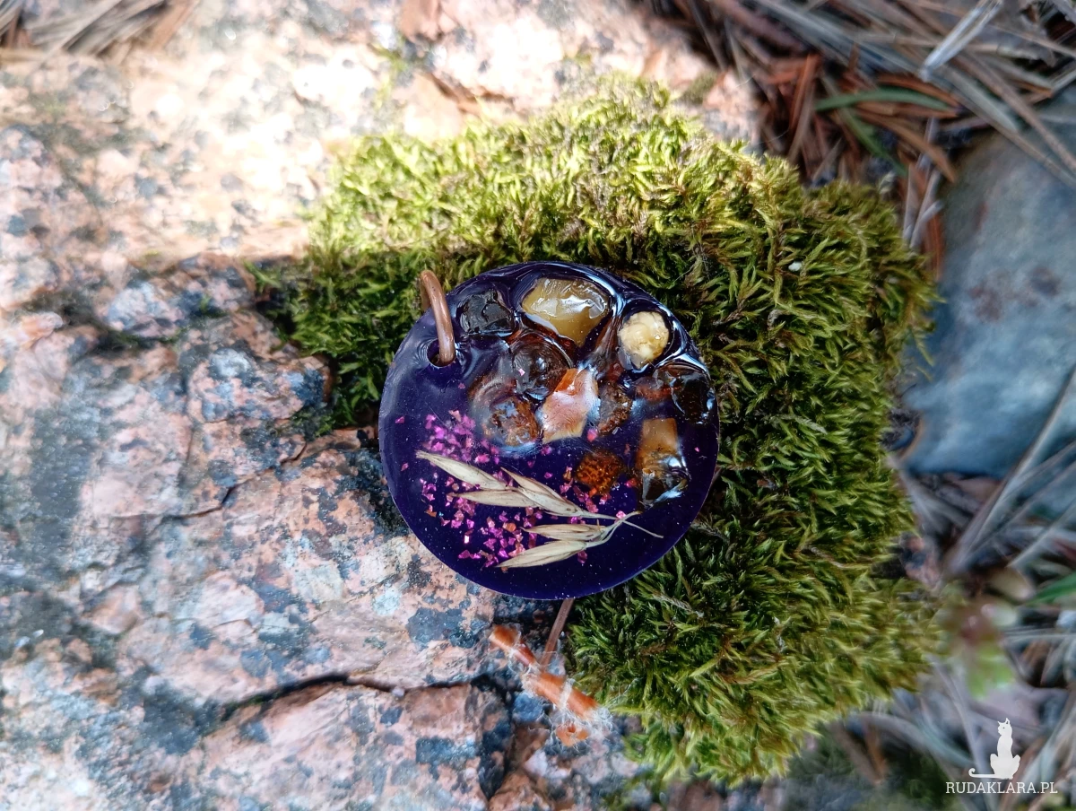 Zawieszka bursztynami i kłosami z żywicy