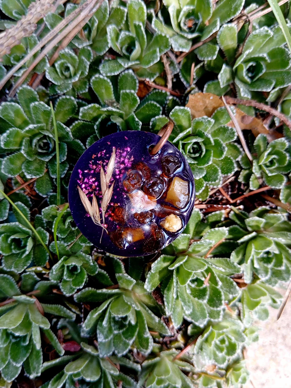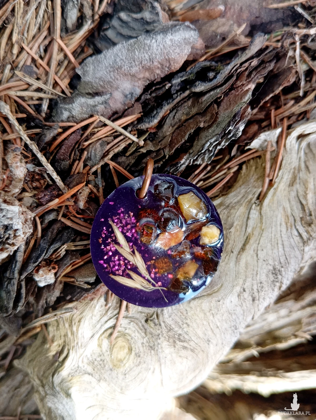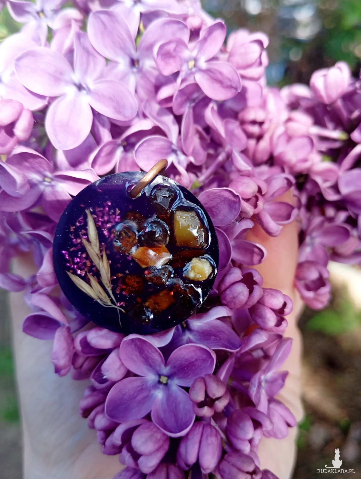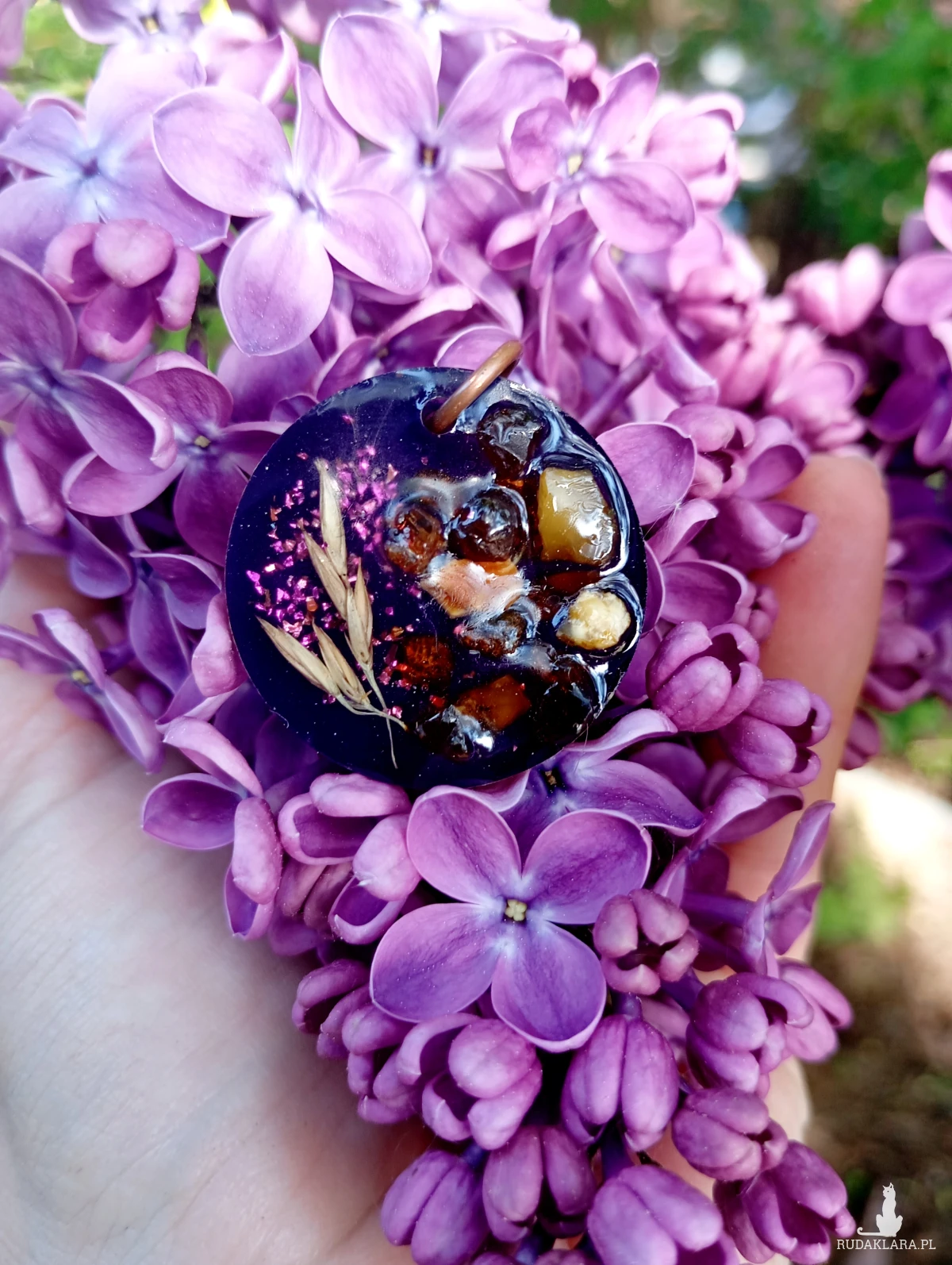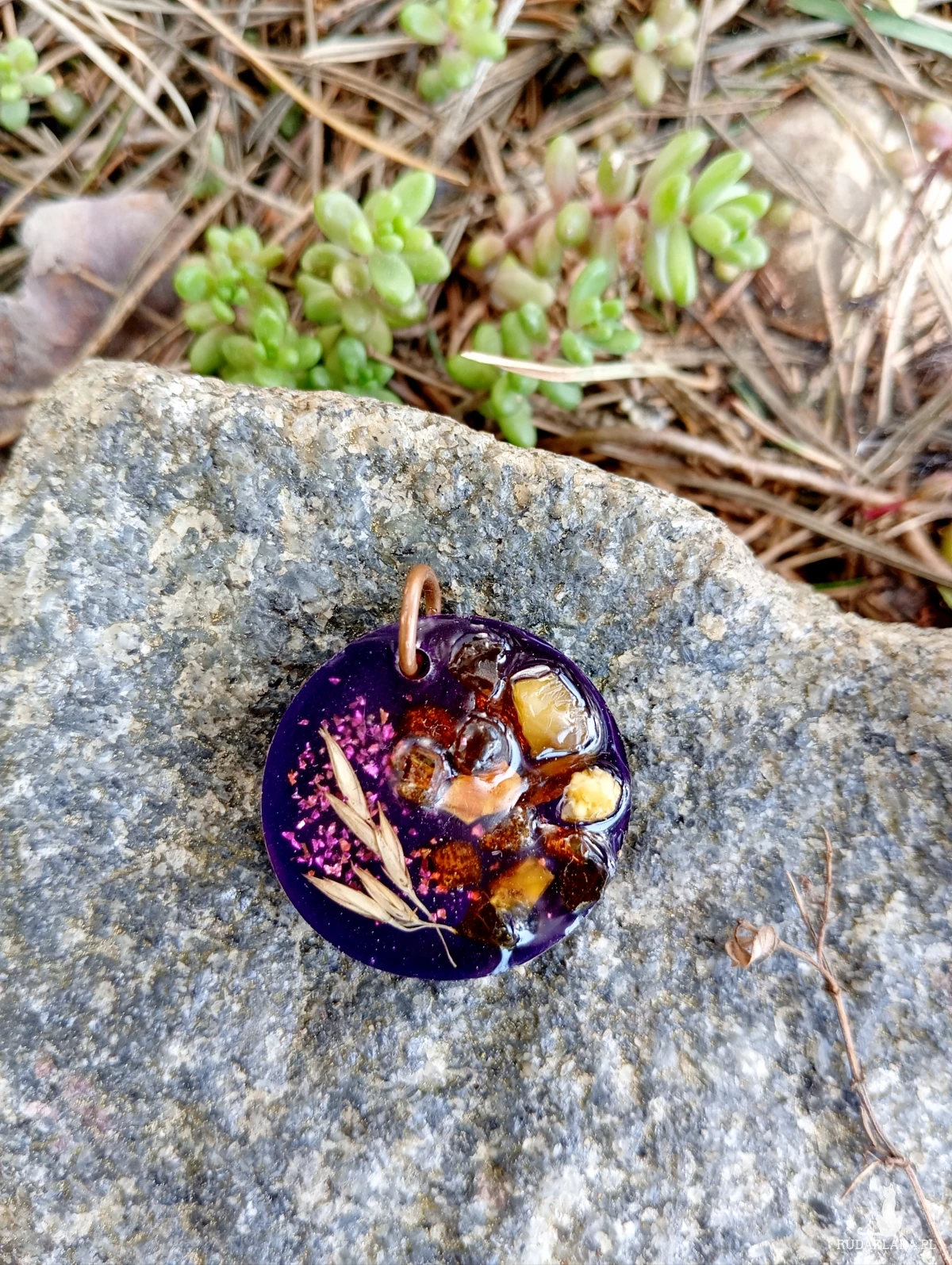 Zawieszka bursztynami i kłosami z żywicy