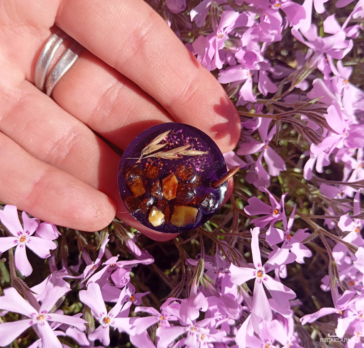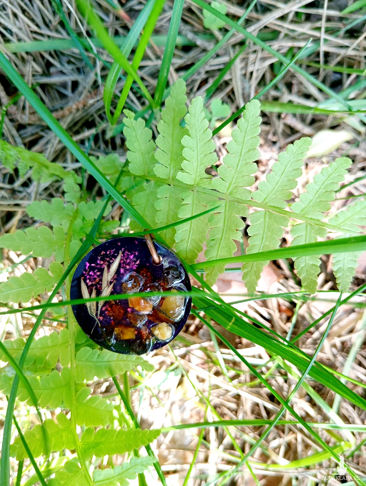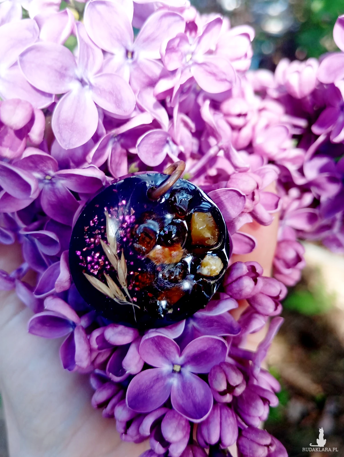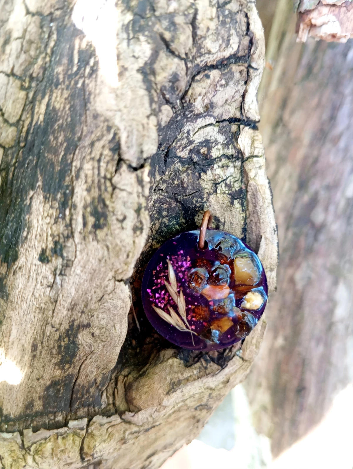 Zawieszka bursztynami i kłosami z żywicy