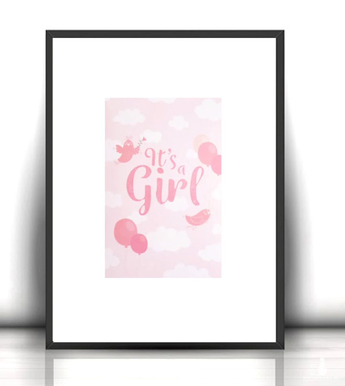 Nowy plakat w stylu boho, z napisem "It,s a girl" (To dziewczynka). Obrazek jest na jasnym kartoniku A4. Dekoracja na ścianę do pokoju dziewczynki lub nastolatki, sypialni, jadalni, salonu, przedpokoju, garderoby, kuchni, bawialni, holu itp. Plakat wystarczy dać do ramki 21x30 cm.. Poster będzie pasował zwłaszcza do wnętrz urządzonych w stylu boho, nowoczesnym, skandynawskim, minimalistycznym, loftowym, hygge, mieszanym.