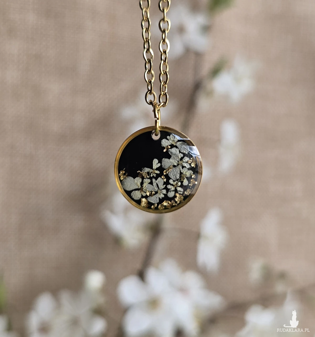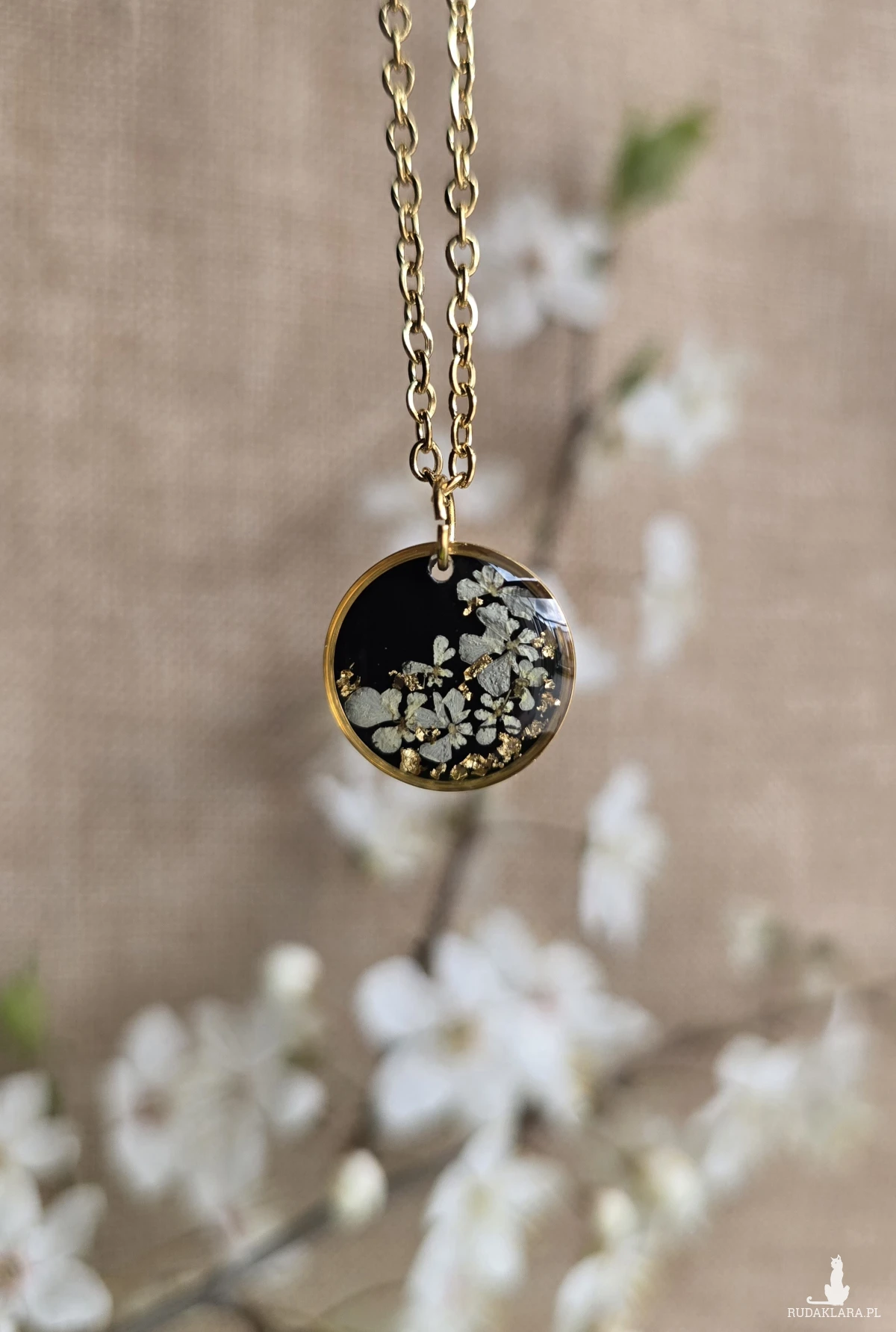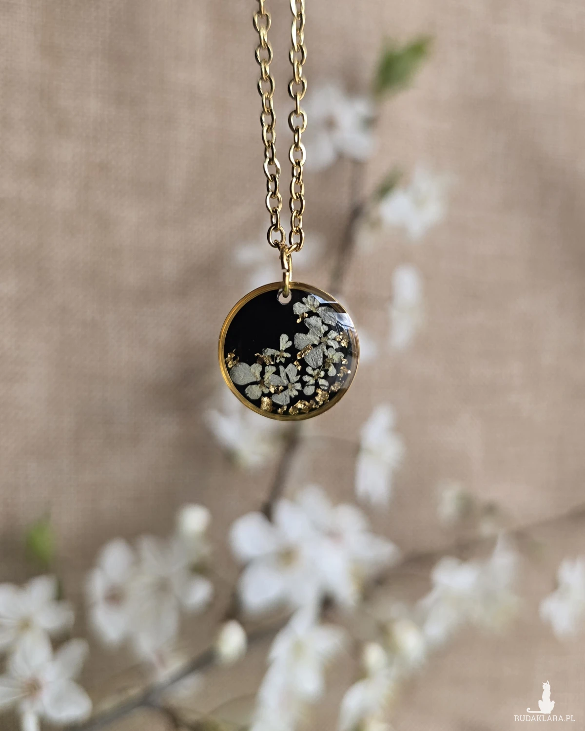 Złota zawieszka złoty wisiorek kwiat naszyjnik żywica z żywicy kwiaty z kwiatami czarne żywica epoksydowa dzika marchew