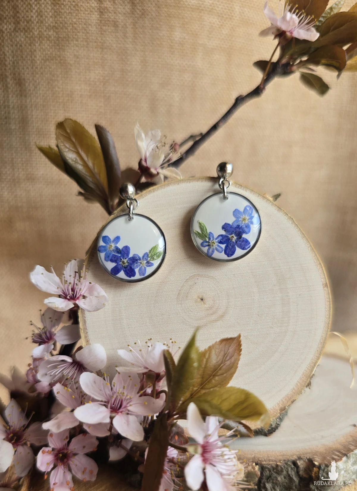 Oferuję Państwu unikalną biżuterię. Kolczyki są wykonane z suszonych kwiatów i żywicy epoksydowej. Biżuteria jest wspaniałym i oryginalnym prezentem na lata.