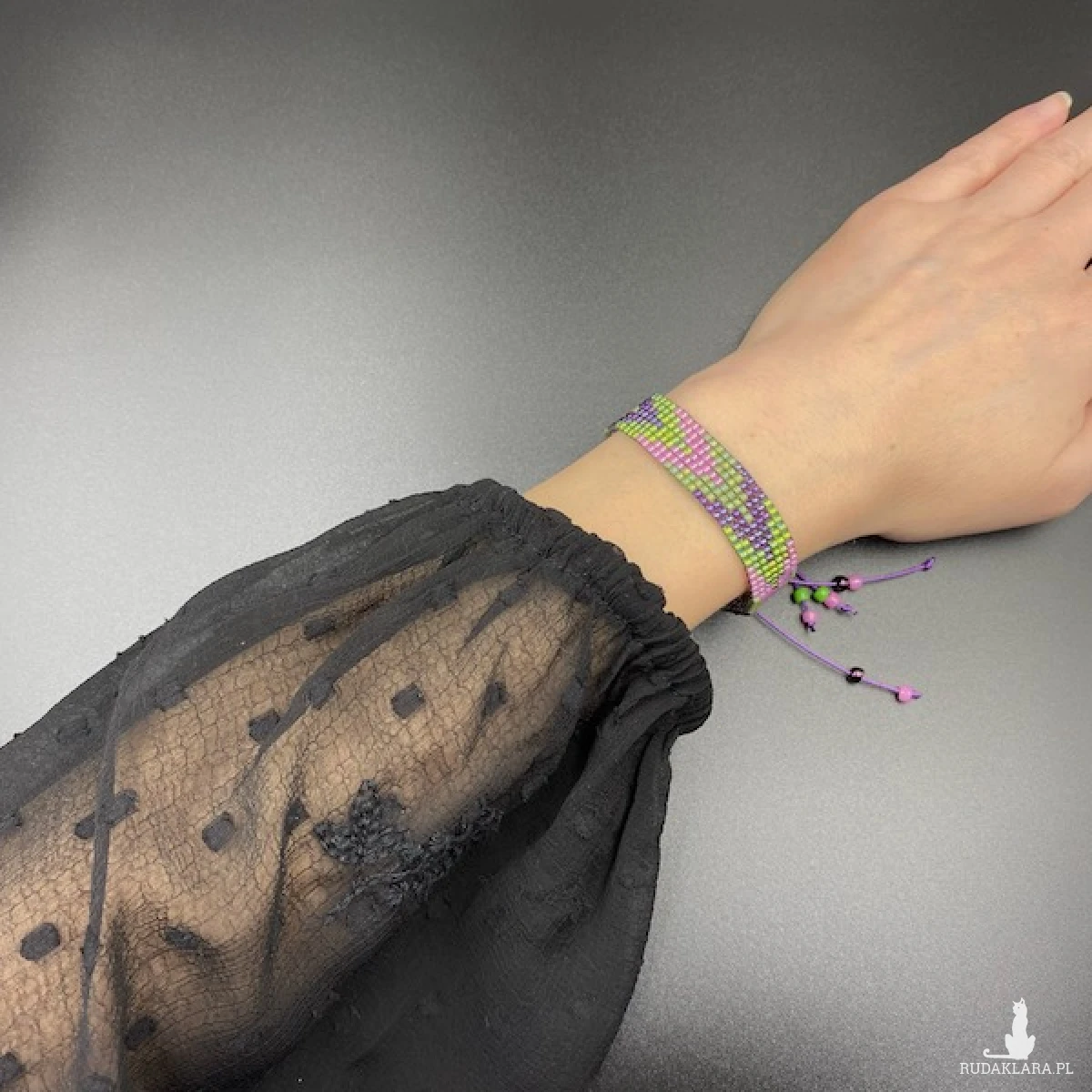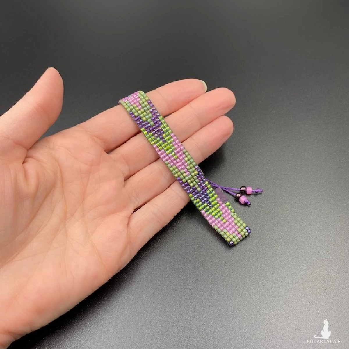 Kolory bransoletki: zielony, fioletowy, różowy.
