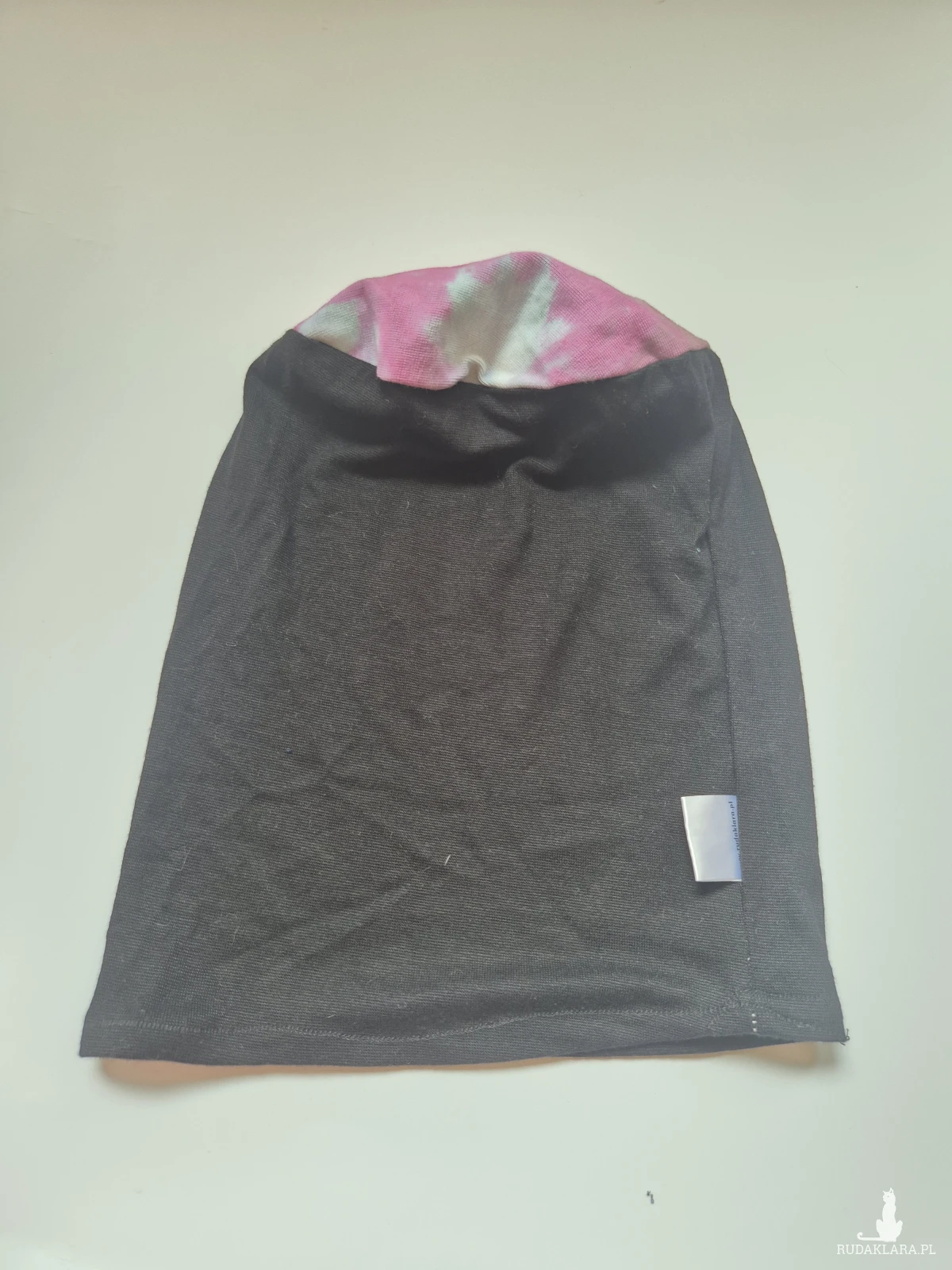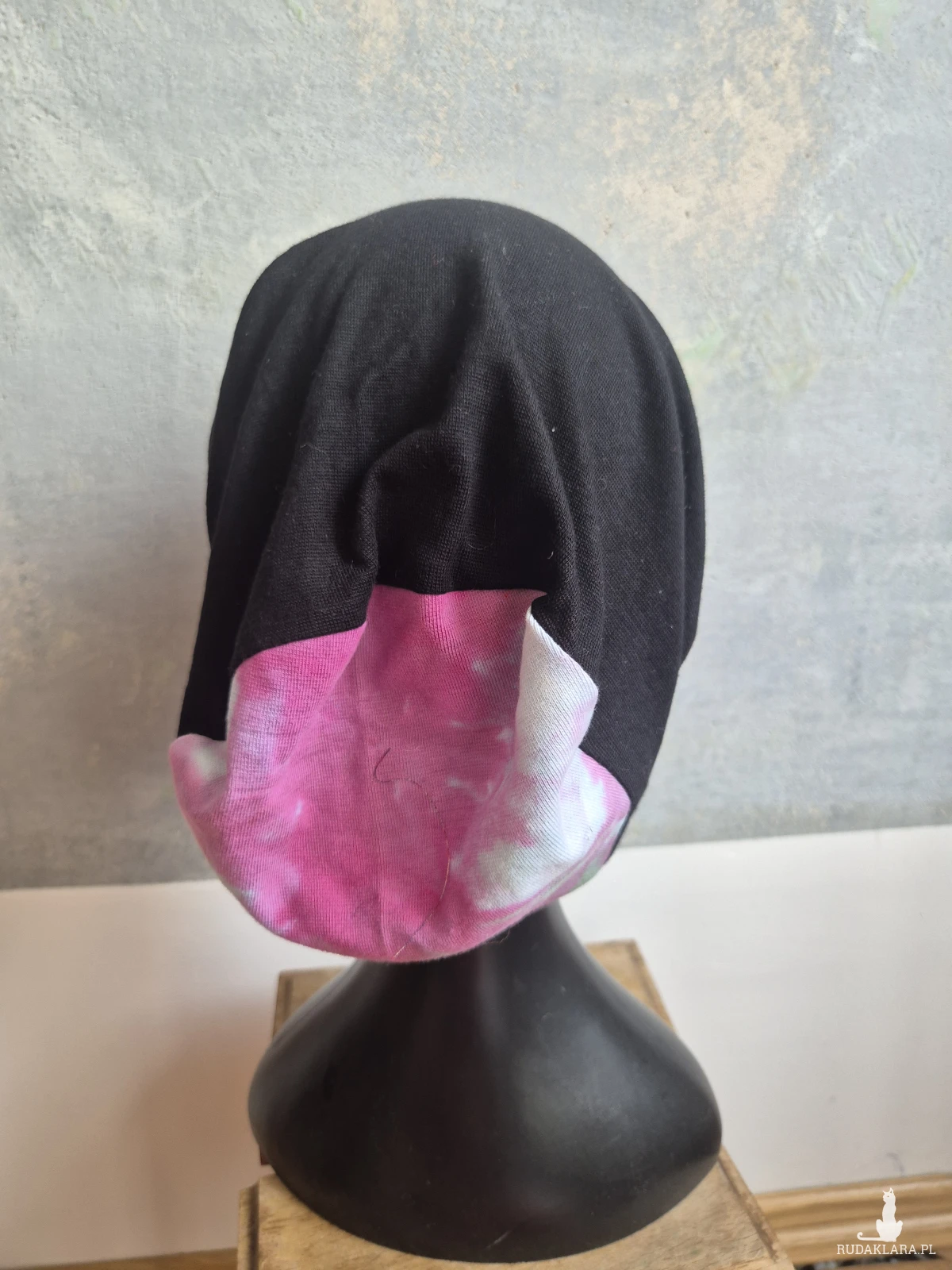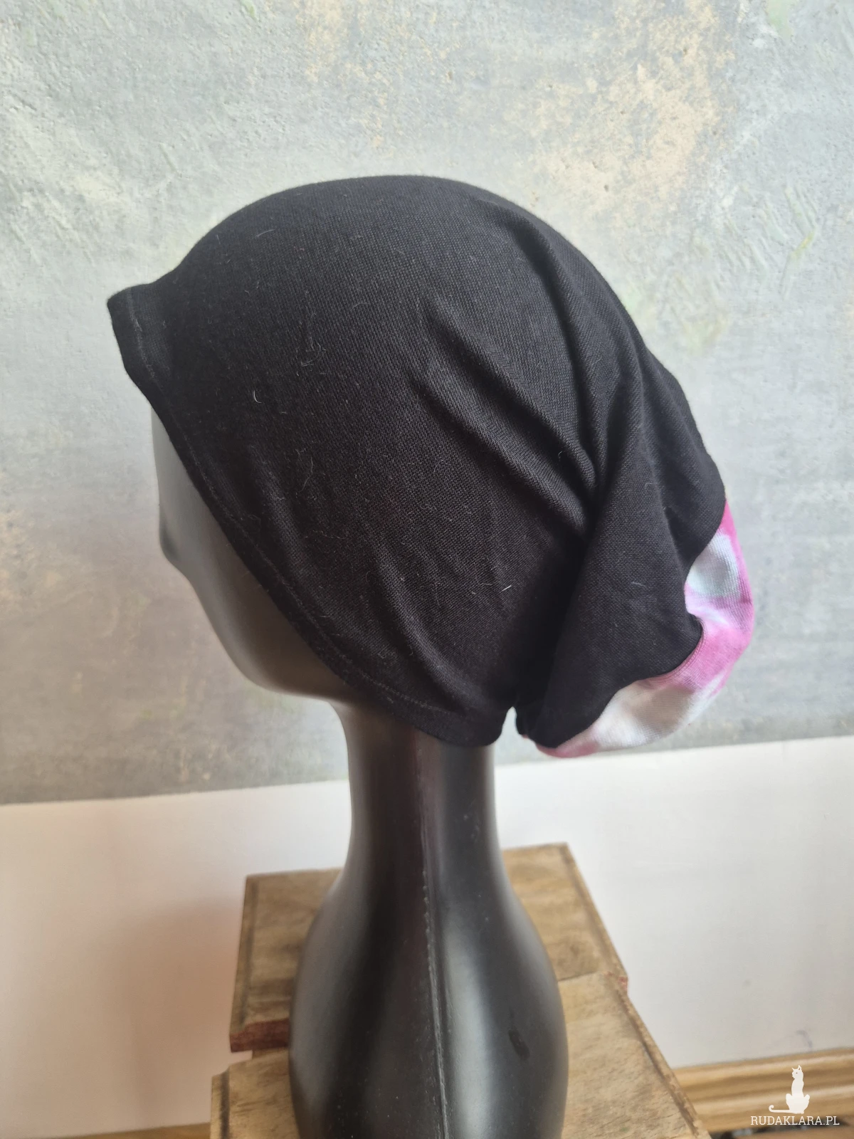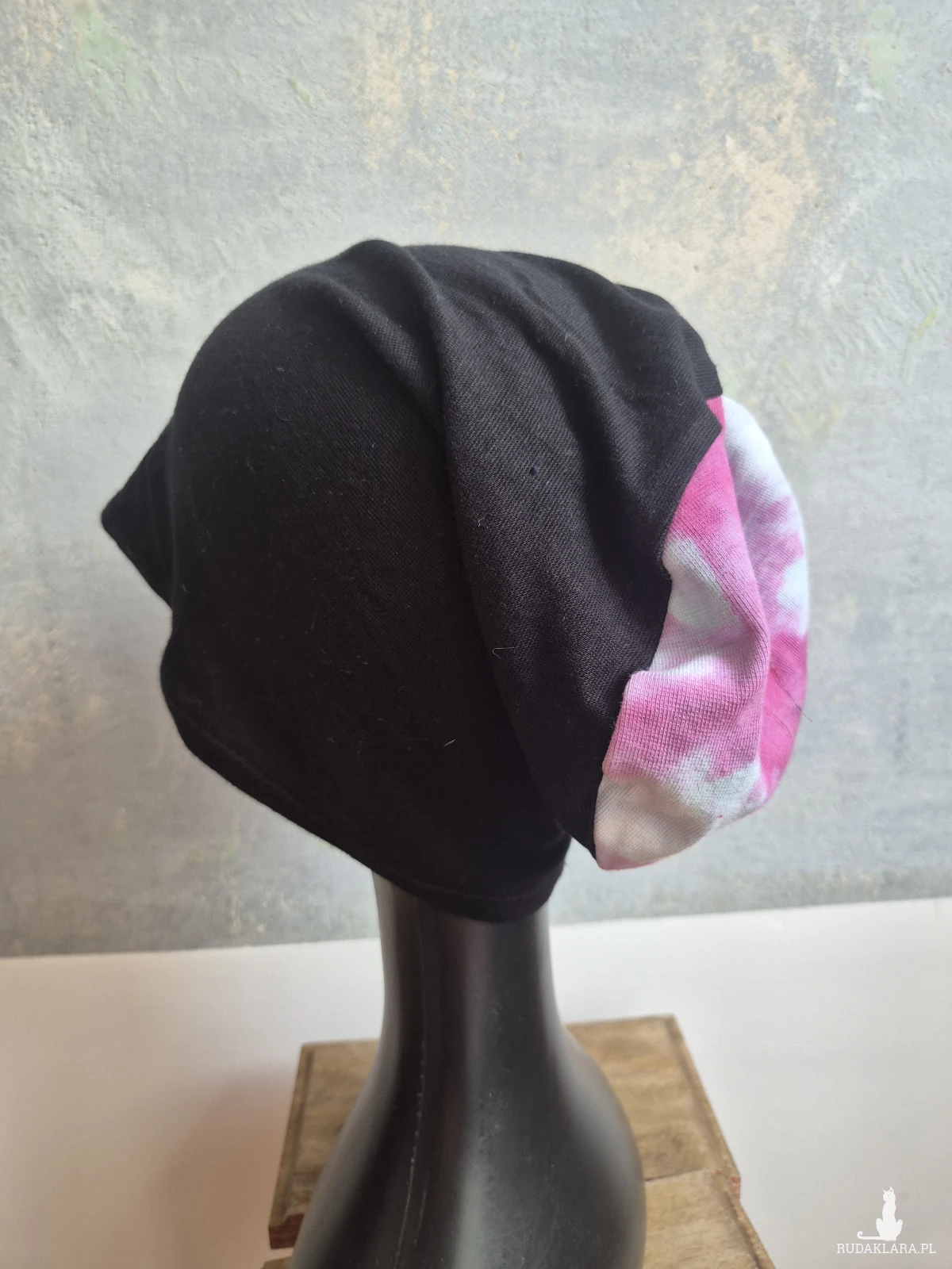 Czapka czarna damska smerfetka wiosenna uniwersalna bez podszewki,góra czapki ręcznie farbowana na codzienne noszenie, świetna na nadmorski wiatr, polecam rekodzielo rudaklara box m1