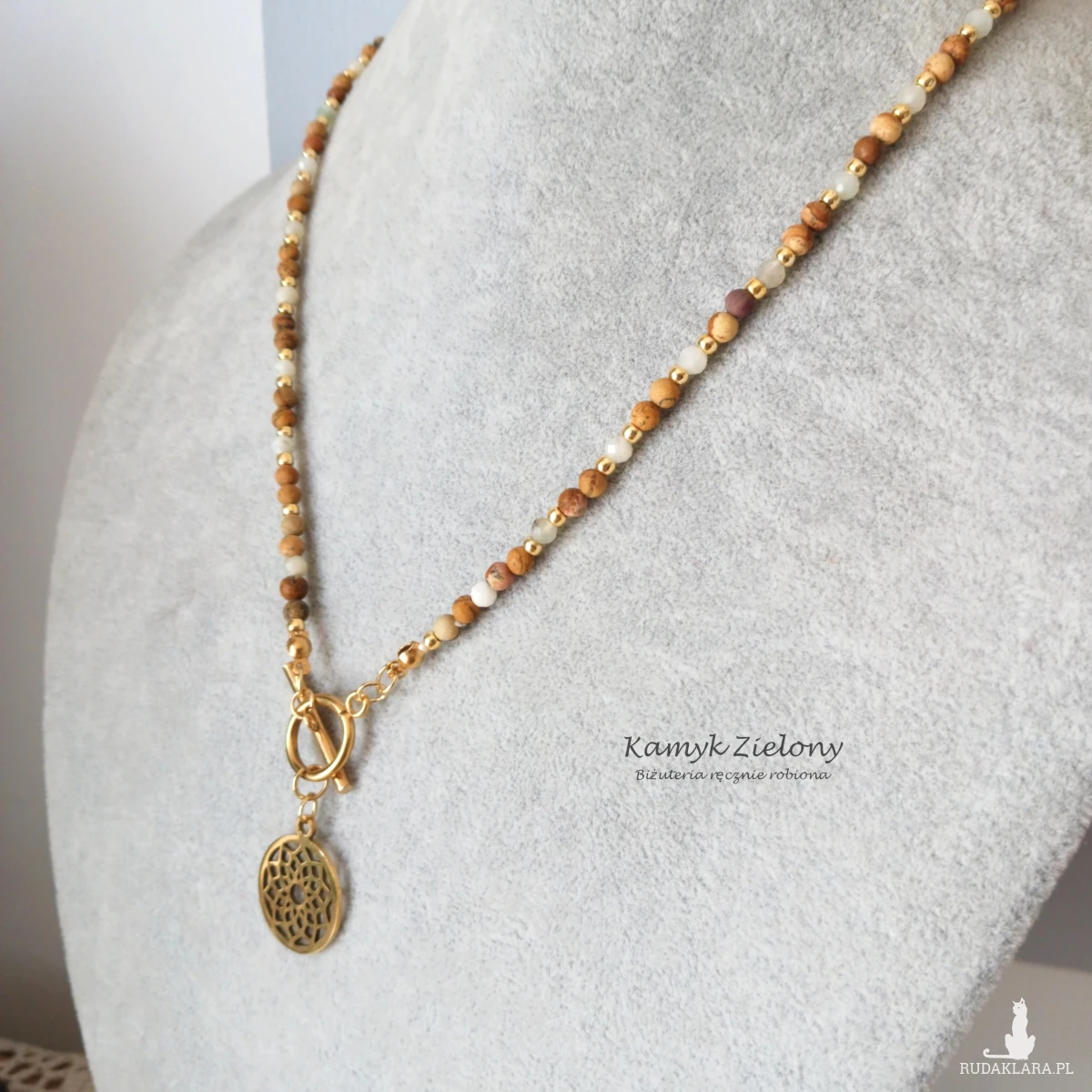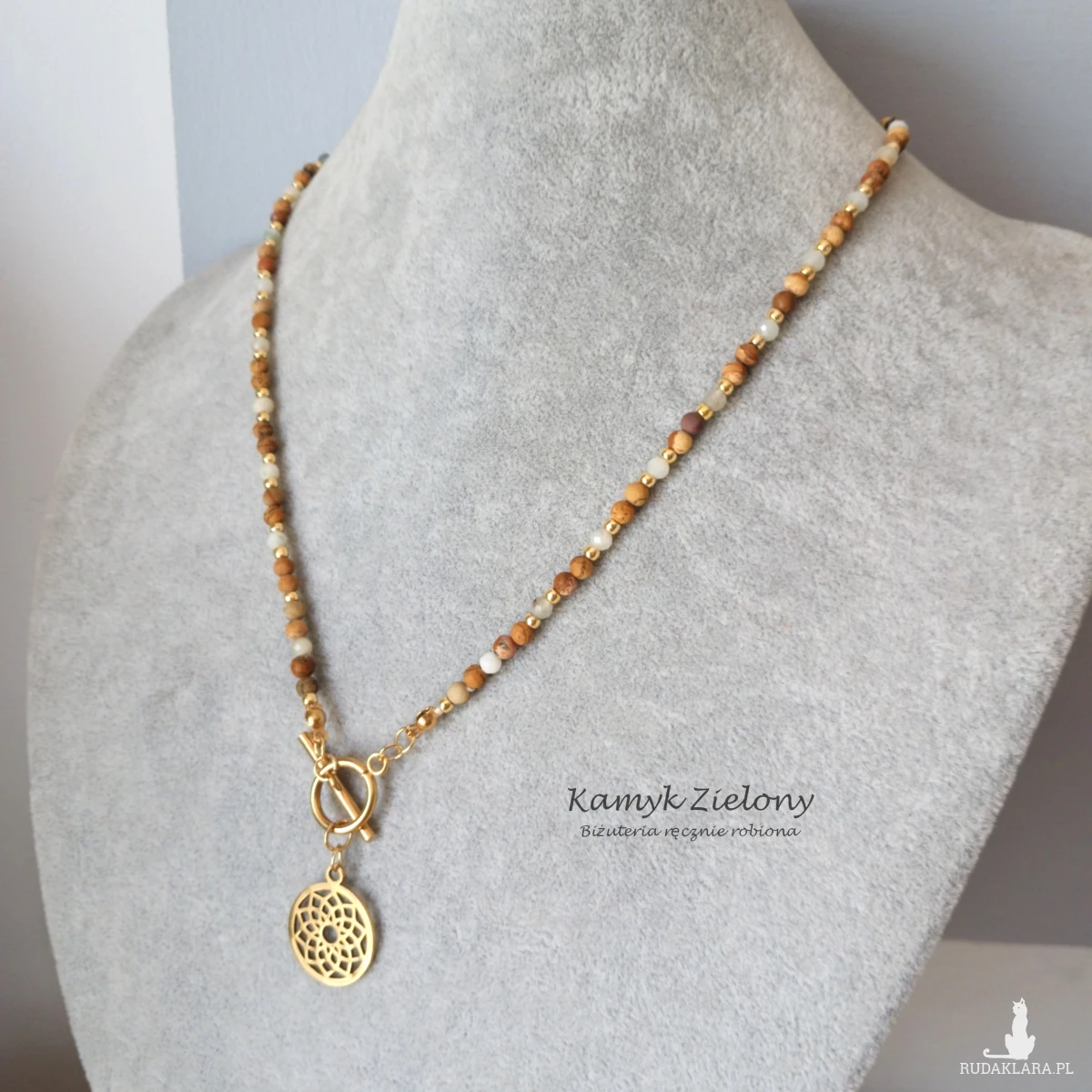 biżuterii wykorzystano kuleczki matowego jaspisu krajobrazowego o