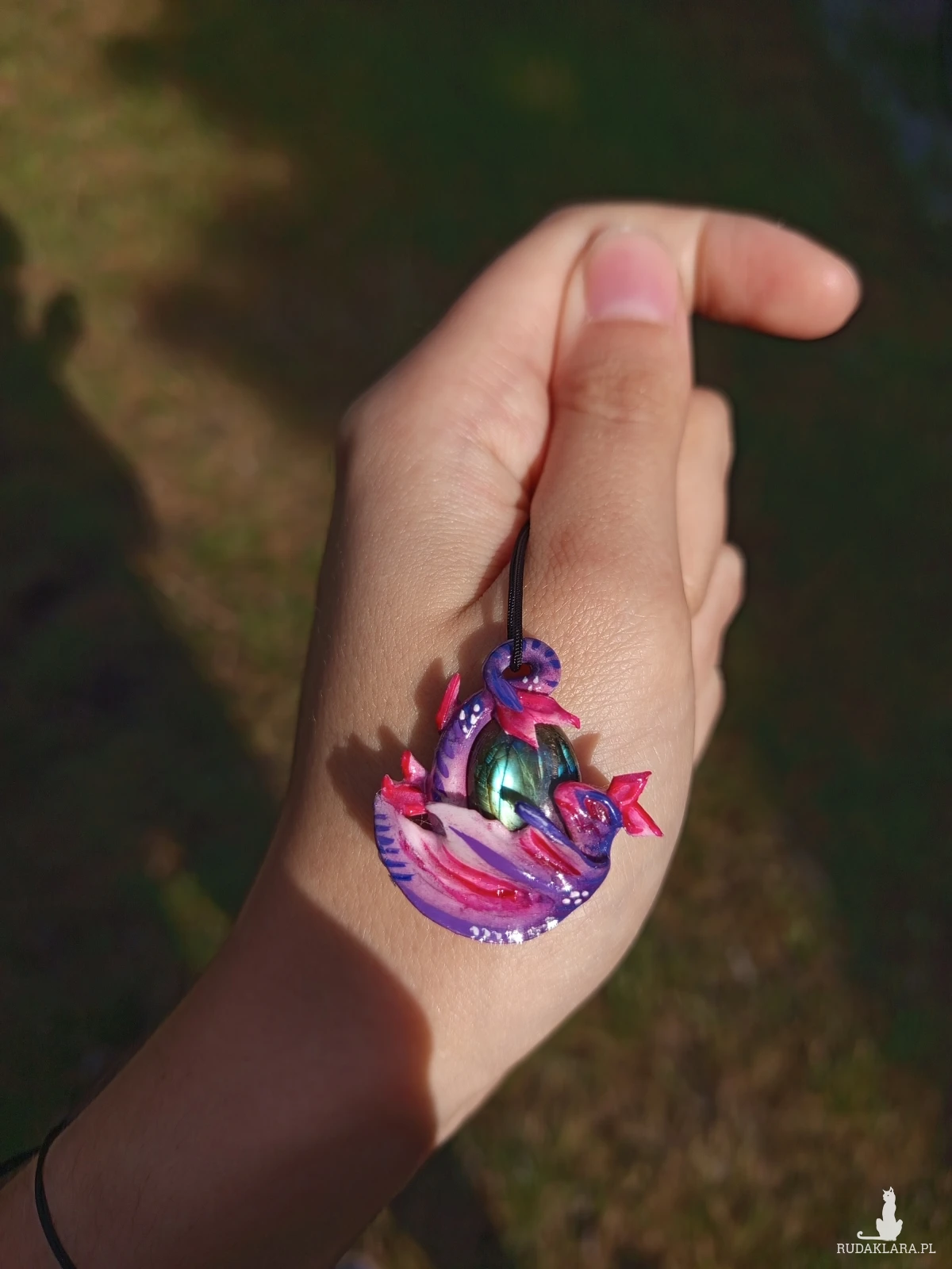 Naszyjnik małego smoka z labradorytem, idealny na prezent, magia fantasty