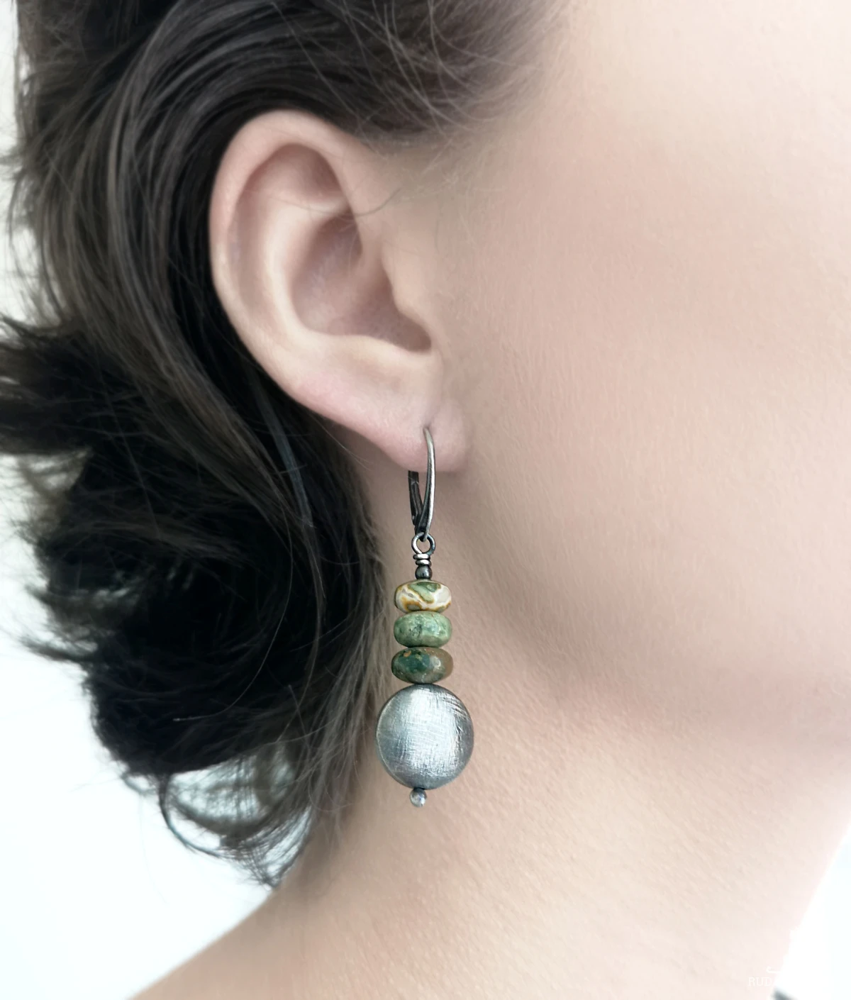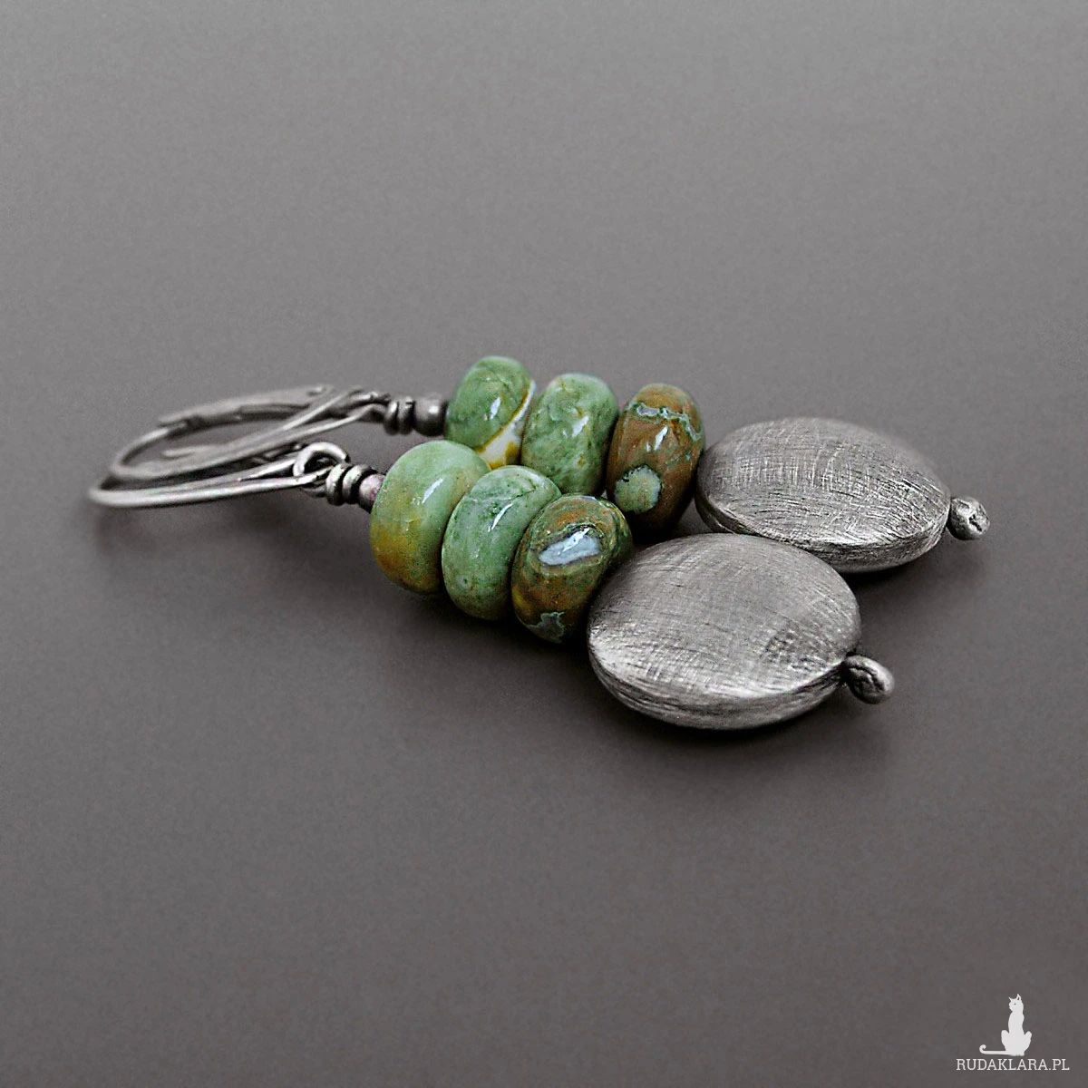 Surowe kolczyki, riolit, srebro 925