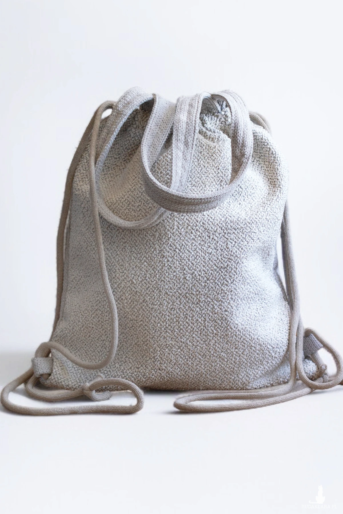 Plecakotorba worek 2w1 wykonana z jasnej plecionki.