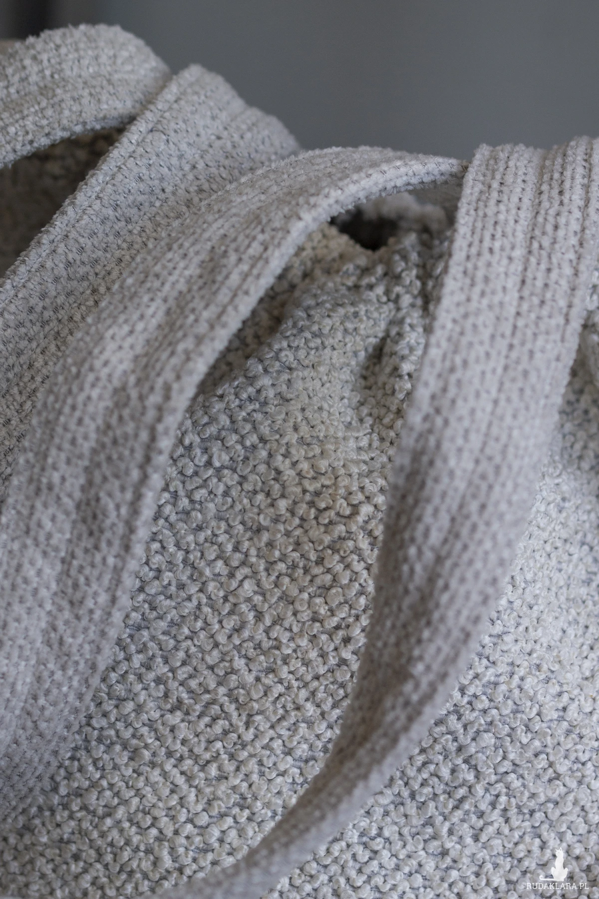 Grube, bawełniane sznurki w kolorze beżowym.