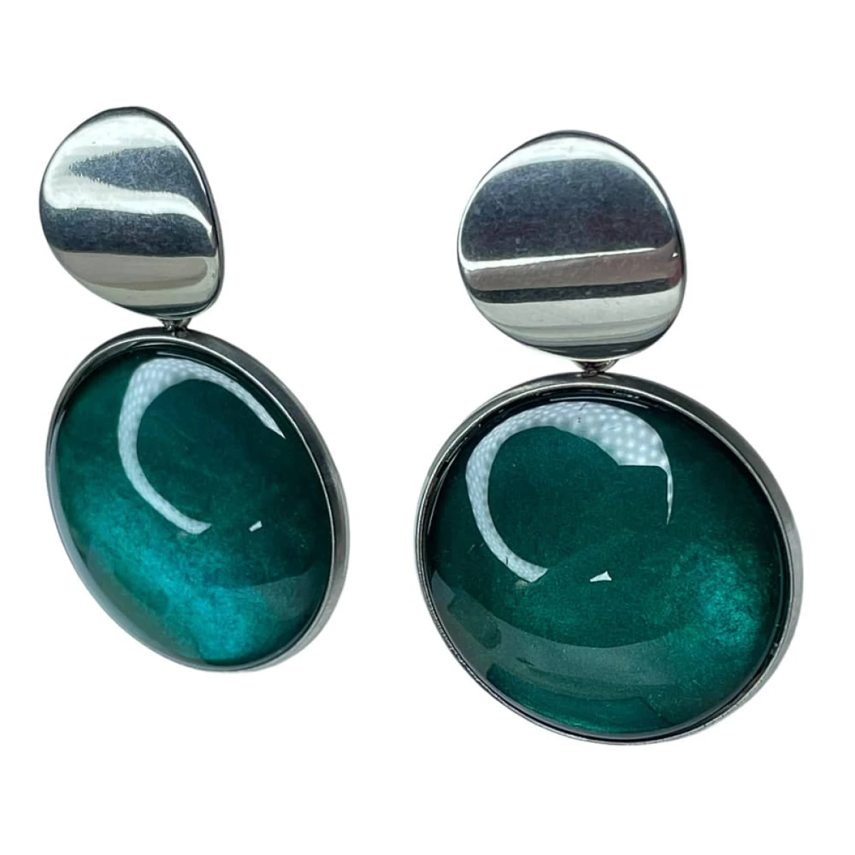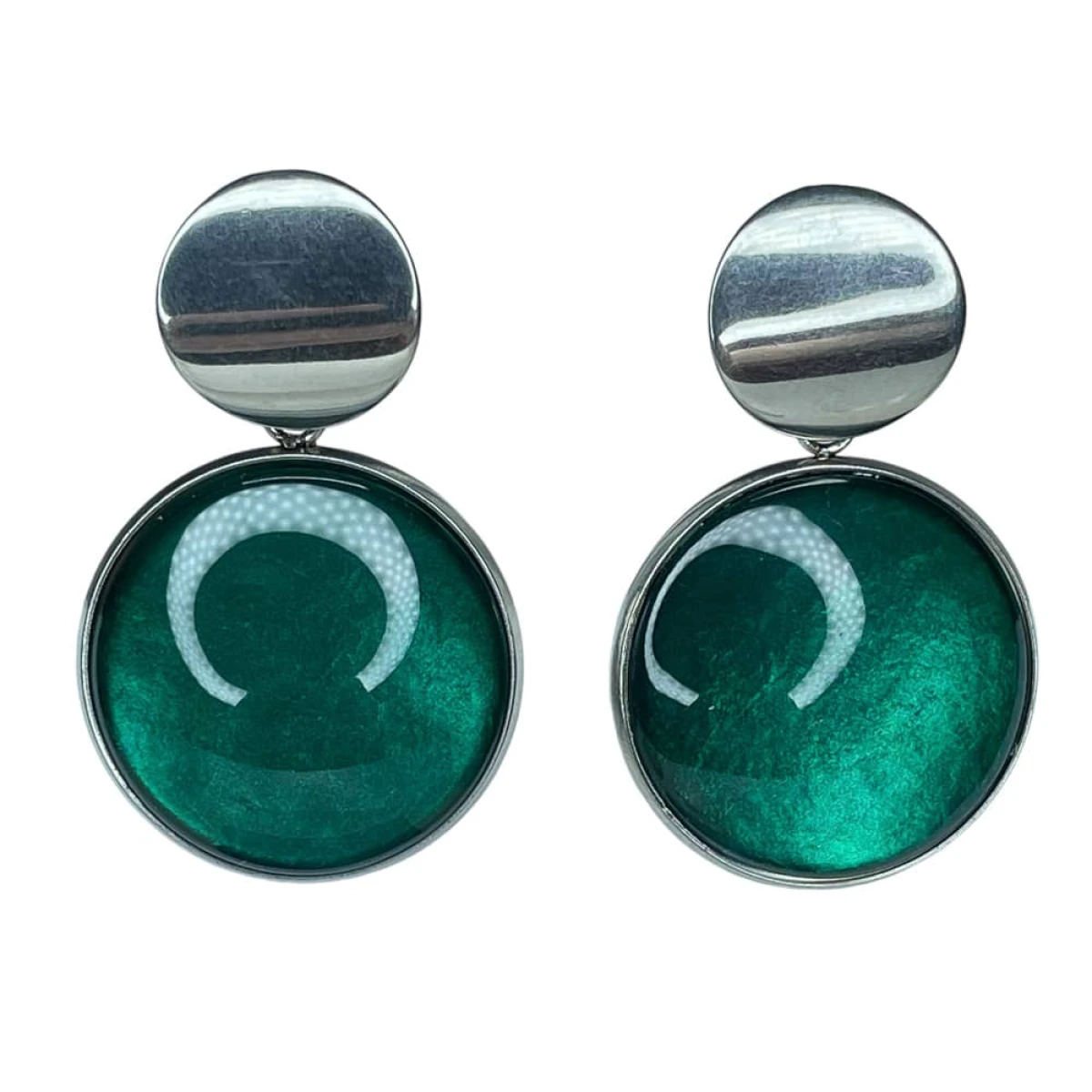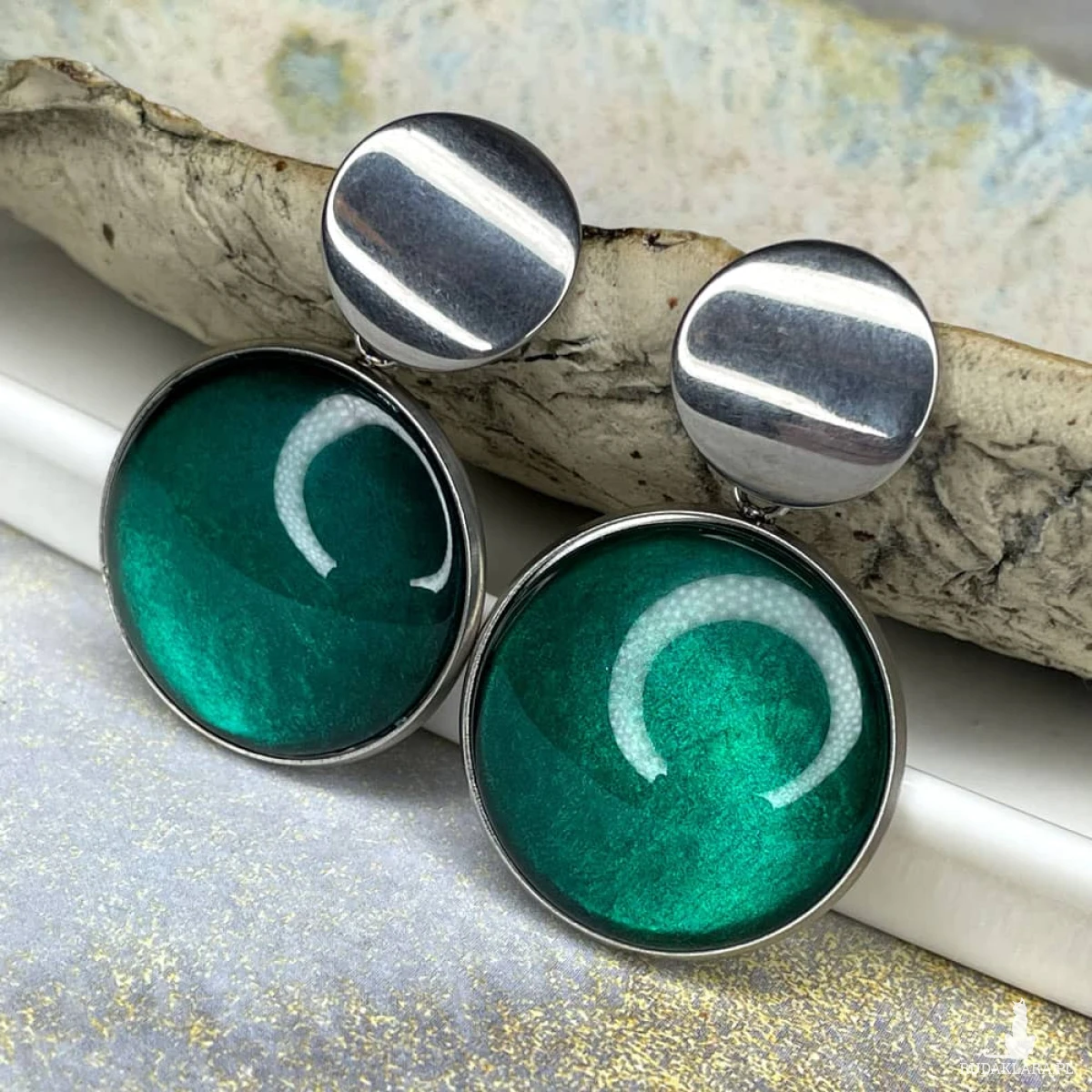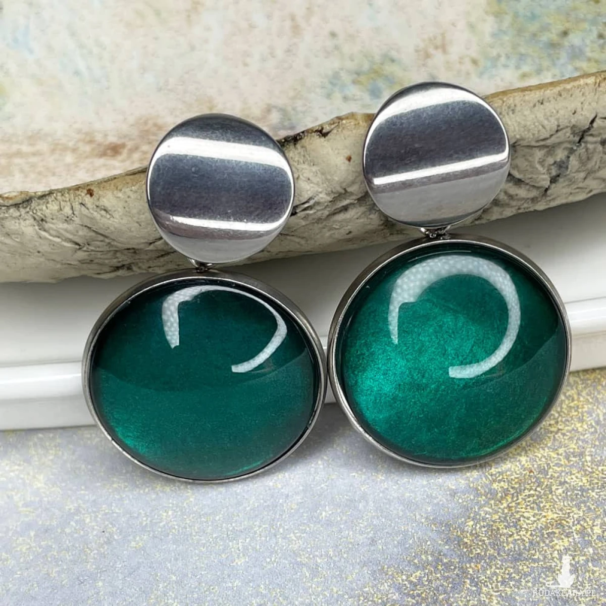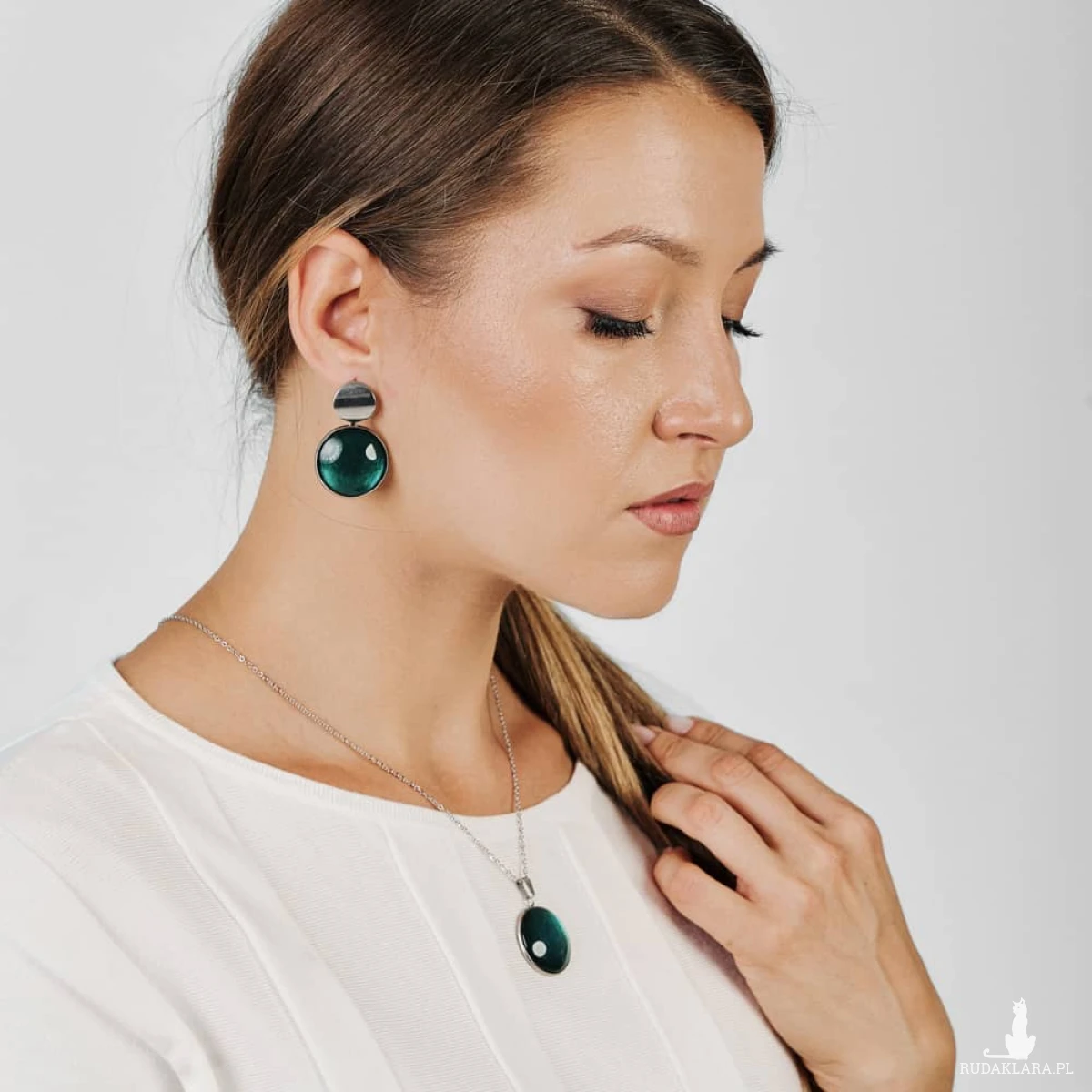 Te pełne blasku kolczyki są częścią kolekcji “W blasku perłowego księżyca”. Kolczyki wykonane są z ręcznie malowanych kaboszonów umieszczonych w bazach ze stali szlachetnej. Szklane elementy zachwycają subtelnym, opalizującym blaskiem, który jest niczym odbicie księżyca na tafli wody. Kolczyki mienią się w świetle, przyciągając wzrok i dodają elegancji każdej stylizacji. Ten dodatek jest idealny dla osób ceniących sobie wyrafinowaną i ponadczasową biżuterię. Materiał: stal szlachetna, malowane ręcznie szkło Wykończenie: połysk Długość kolczyków: ok 4,5 cm Średnica kaboszonu: 25 mm Waga pary kolczyków: ok 14,5 g SKU: e9/1 Jak dobierać komplety? Kolory na zdjęciach mogą się różnić ze względów technicznych. Aby dobrać identyczny odcień, zwróć uwagę na numer SKU produktu. Pierwsza część to numer modelu, a numery po “/” to kolor, np. /17 oznacza morski perłowy. Produkty z tym samym SKU po "/" mają identyczny kolor. Dzięki temu możesz łatwo tworzyć komplety, mając pewność, że biżuteria jest w tym samym odcieniu. Stwórz własny komplet! Jeśli nie ma biżuterii w wybranym modelu lub kolorze którego szukasz, możesz ją zamówić indywidualnie. Wyślij do nas maila z nazwą, numerem modelu i kolorem, a my w miarę możliwości wykonamy biżuterię na zamówienie. Termin realizacji ustalamy indywidualnie. Biżuteria zostanie elegancko zapakowana. W przypadku zakupu kompletu, biżuteria zostanie zapakowana razem. Kolory na zdjęciach mogą delikatnie różnić się od rzeczywistych.