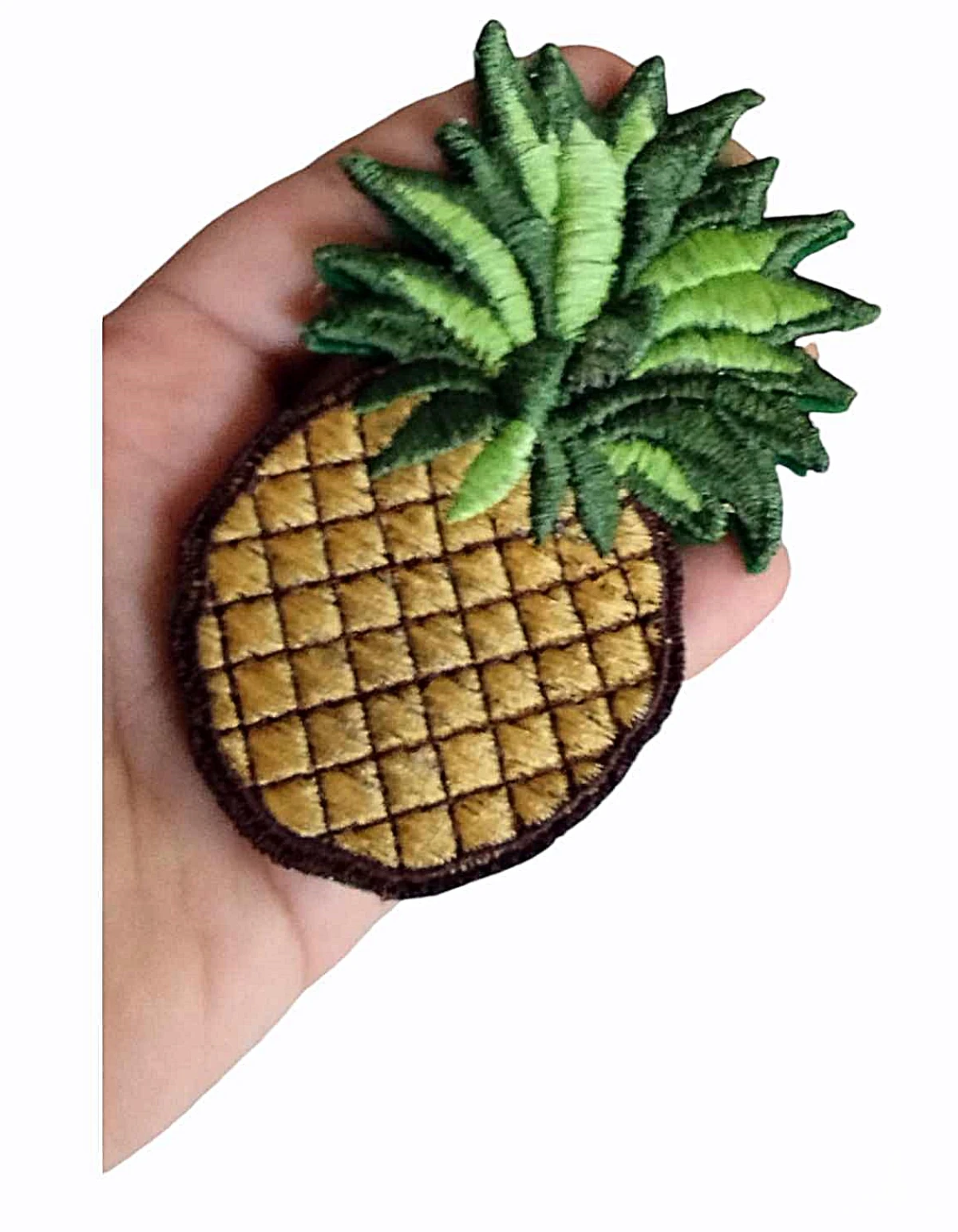 Broszka ananas. Broszka haftowana na podkładzie z filcu. Haft(maszynowy) jest gęsty nieprześwitujący.