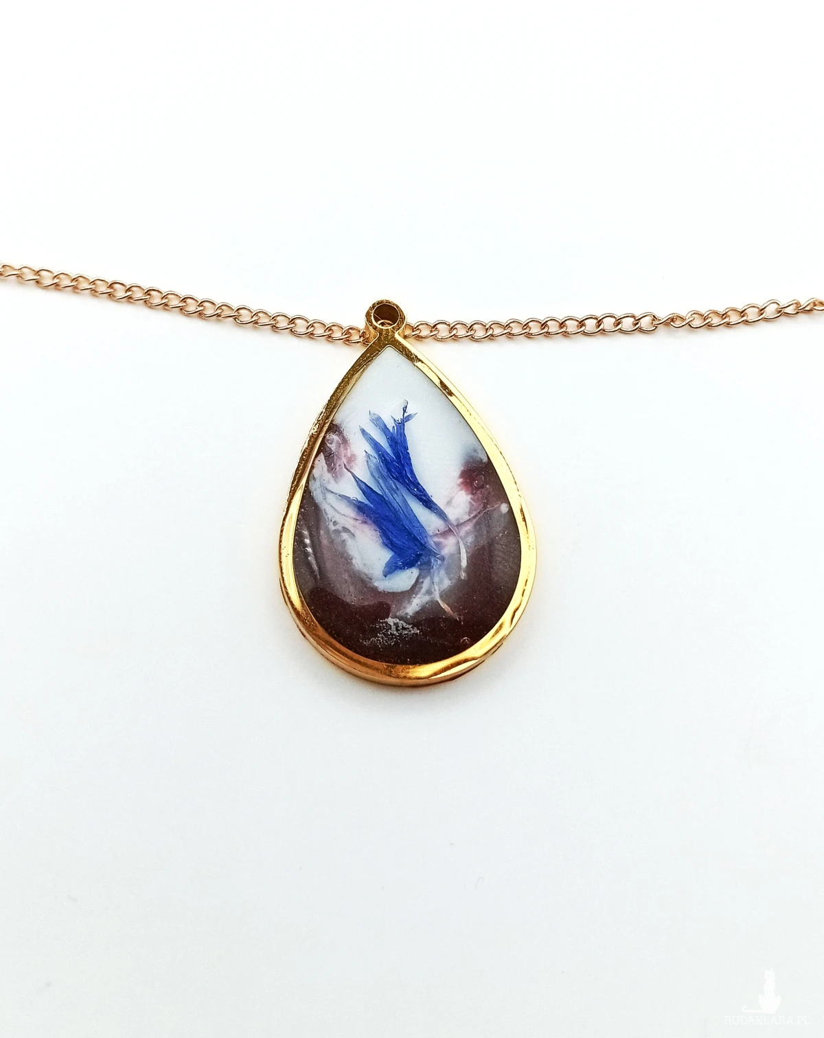 Szukasz dodatku, który podkreśli Twoją wyjątkowość? Przedstawiam unikalny, ręcznie wykonany wisiorek z żywicy epoksydowej, ozdobiony suszonym chabrem. Harmonijne zestawienie kolorów – białego, czekoladowego i transparentnego – tworzy elegancką kompozycję, która przyciąga spojrzenia i idealnie wpisuje się w styl boho, naturalny lub klasyczny.