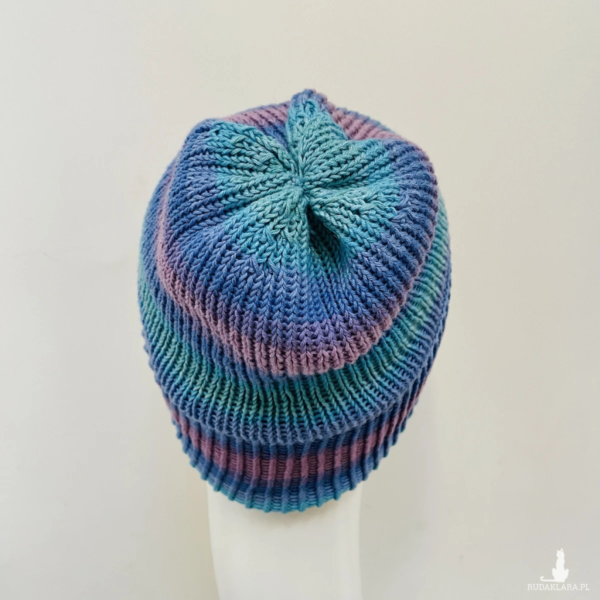 Czapkę wykonałam na drutach z miękkiej włóczki bawełnianej, która zapewnia wygodę noszenia przez cały dzień.
