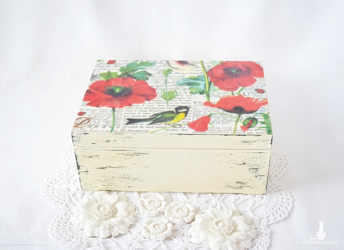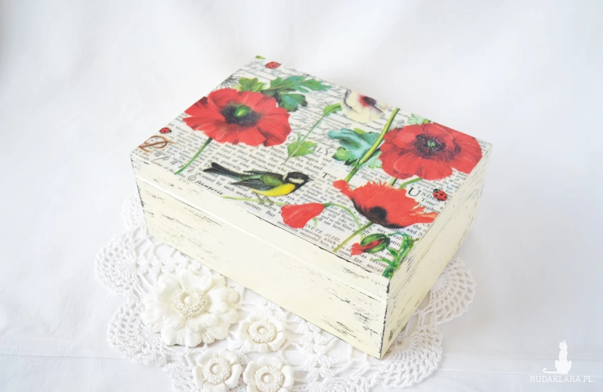 Drewniane pudełko zdobione ręcznie techniką decoupage – metoda serwetkowa