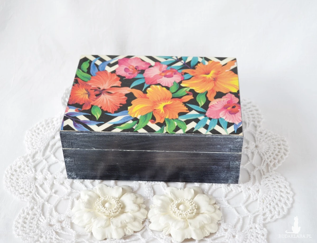 Drewniane pudełko zdobione ręcznie techniką decoupage – metoda serwetkowa