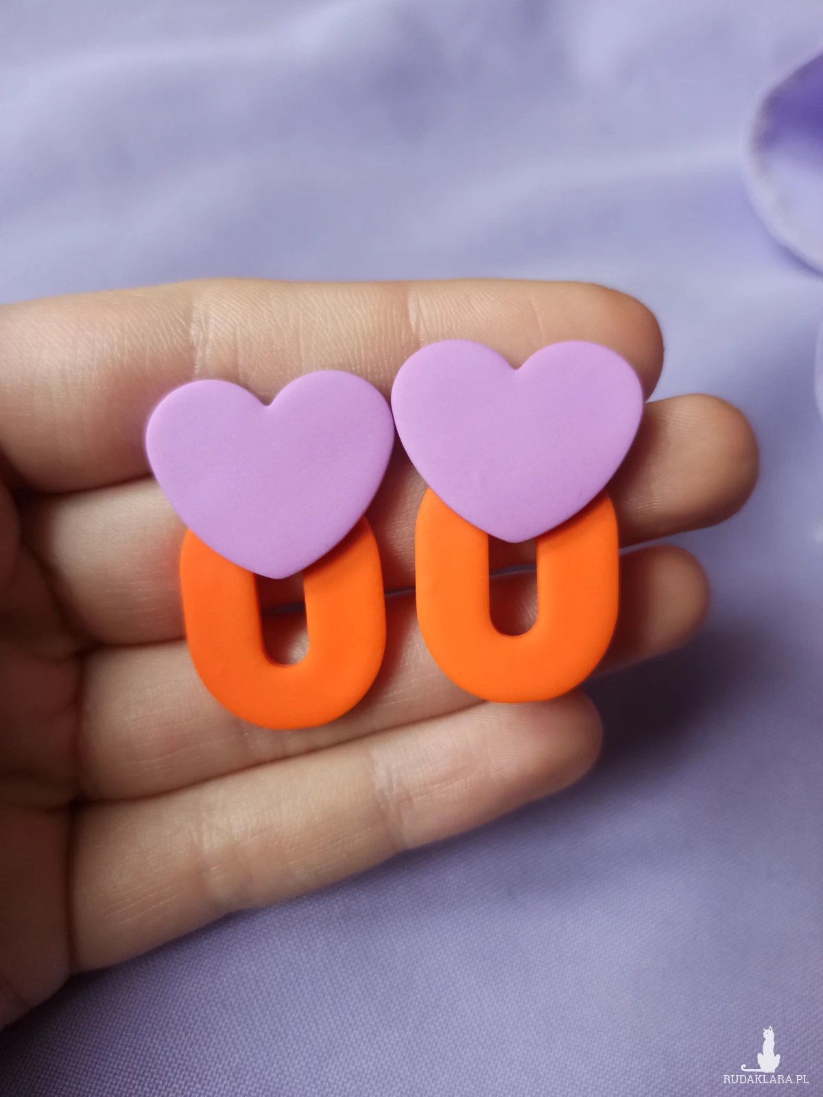 Kolczyki sztyfty serce połączone z owalnym elementem.