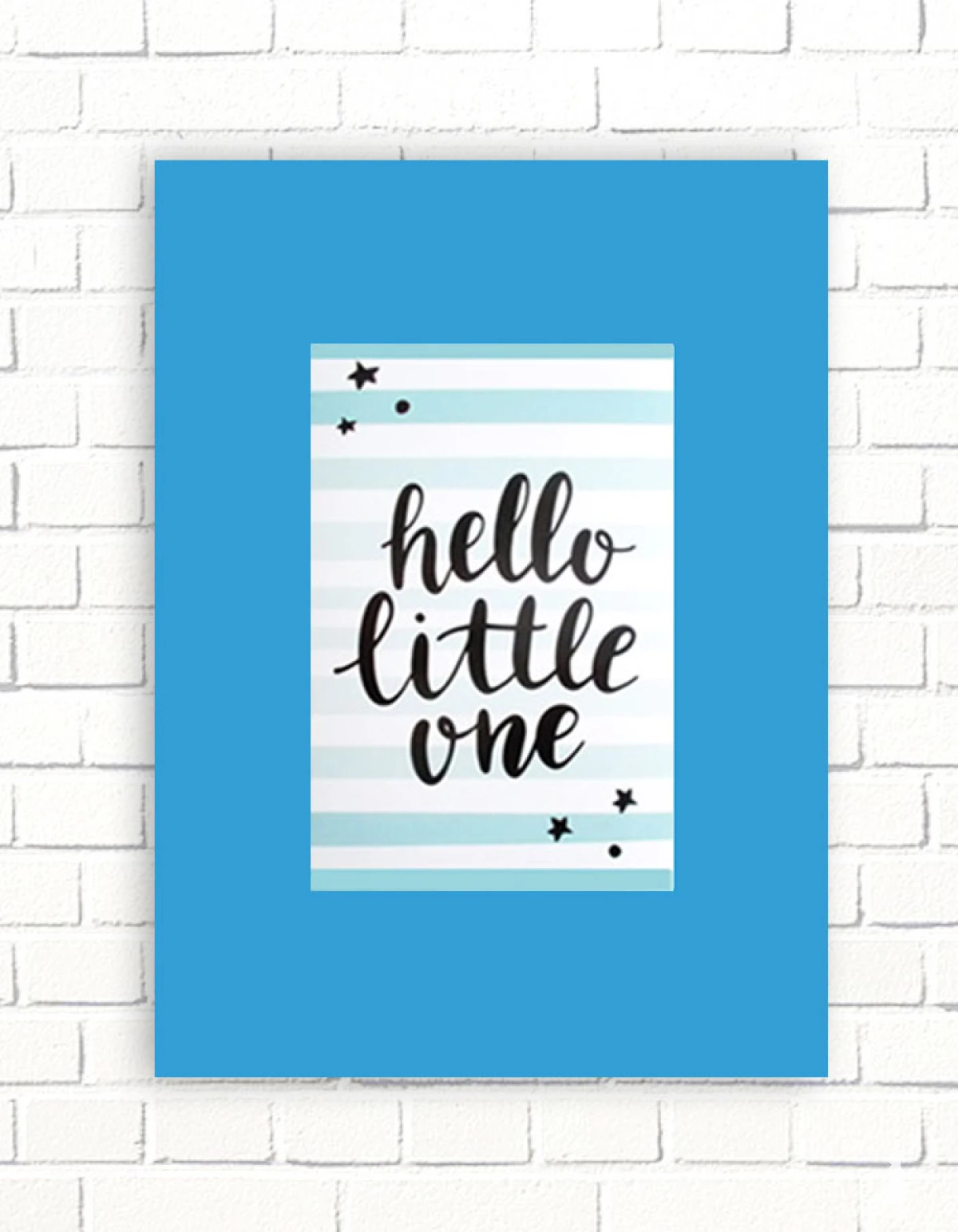 Nowy plakat z napisem "Hello little one" (Witaj maleństwo). Obrazek jest na ciemnoniebieskim kartoniku A4. Dekoracja na ścianę do dziecięcego pokoju, dla małego chłopczyka lub dziewczynki, żłobka, przedszkola, bawialni, klubu malucha, sypialni, jadalni itp. Plakat wystarczy dać do ramki 21x30 cm.. Poster będzie pasował zwłaszcza do wnętrz urządzonych w stylu skandynawskim, nowoczesnym, hygge, minimalistycznym, loftowym, mieszanym.