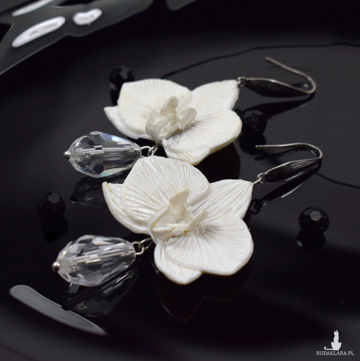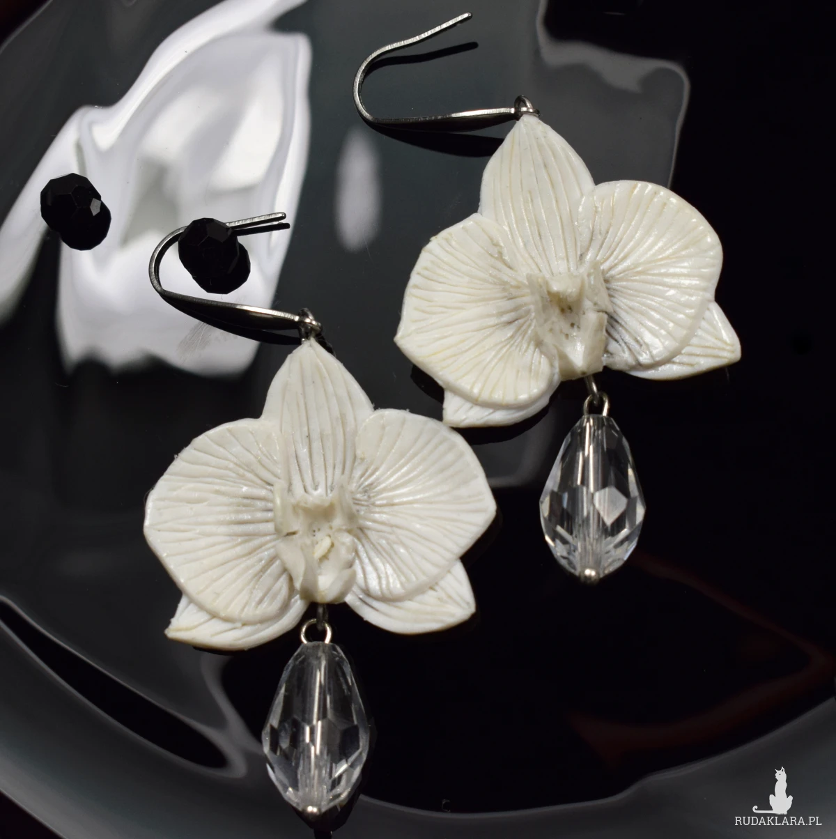 Eleganckie kolczyki z kwiatami orchidei, w kolorze bieli i dodatkiem