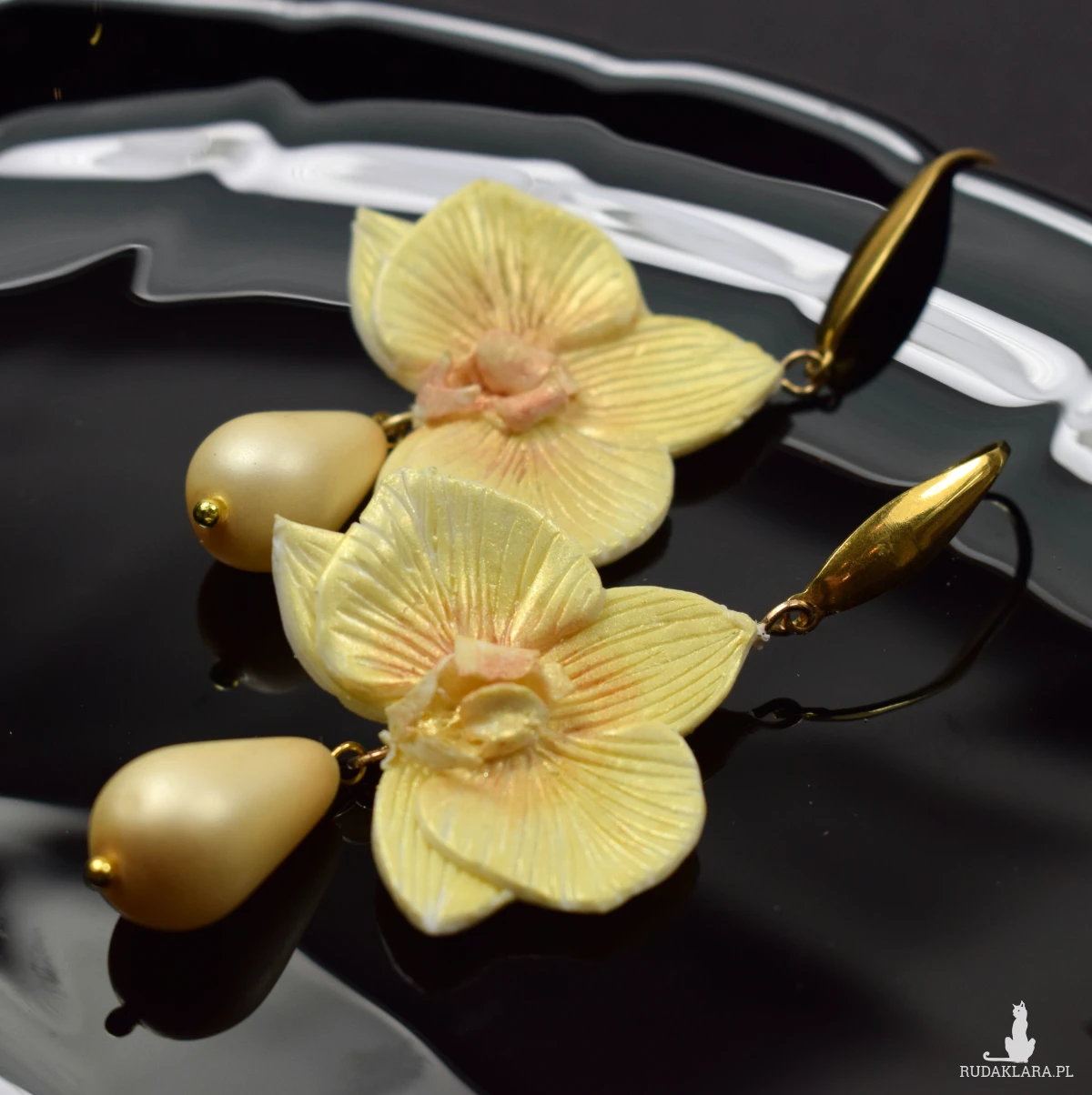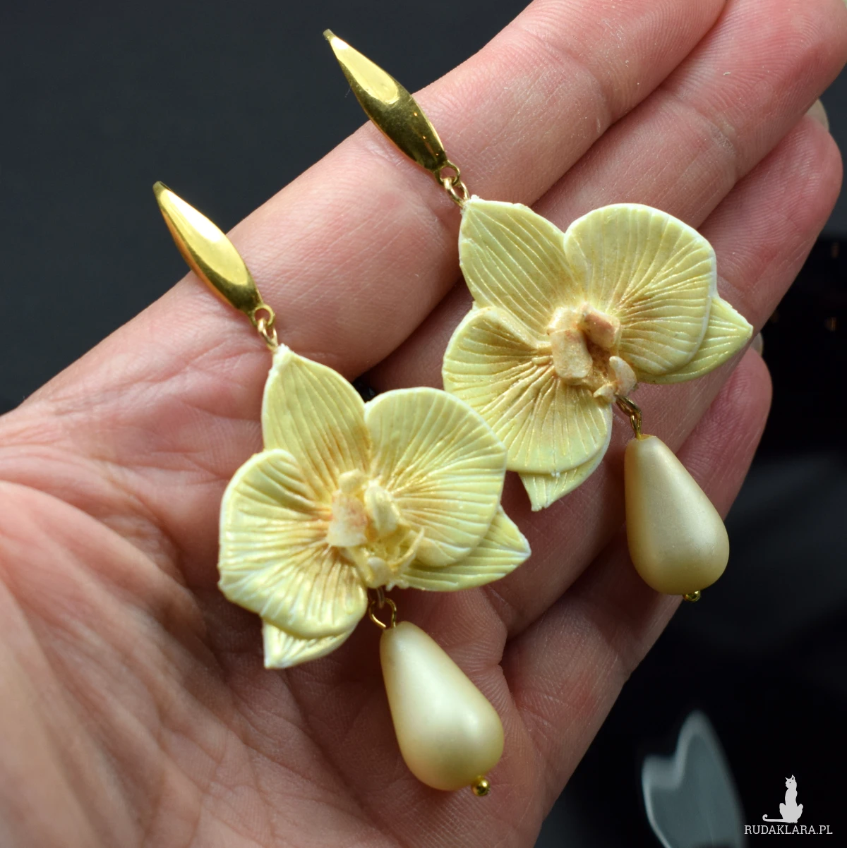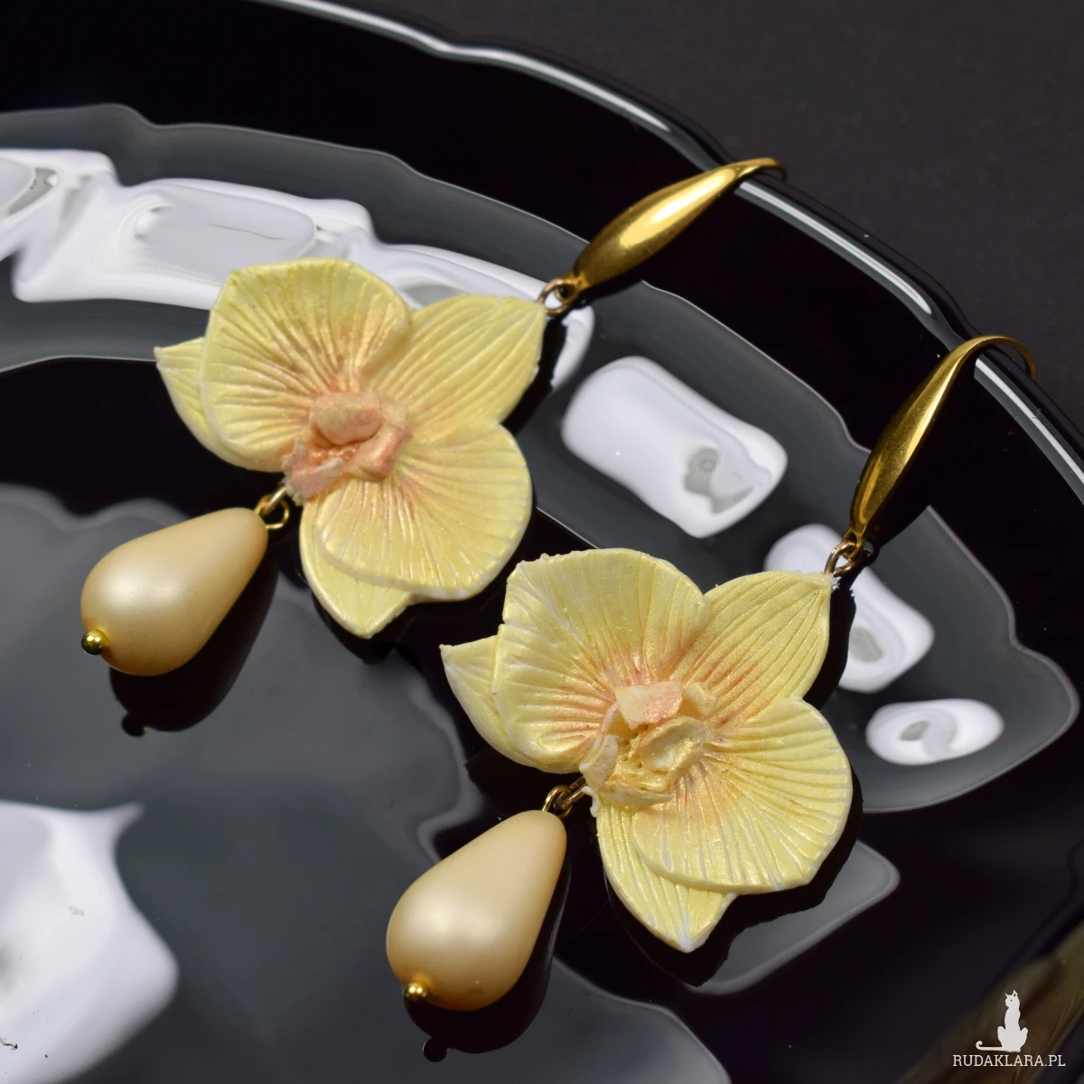 Eleganckie kolczyki z kwiatami orchidei, w delikatnym odcieniu