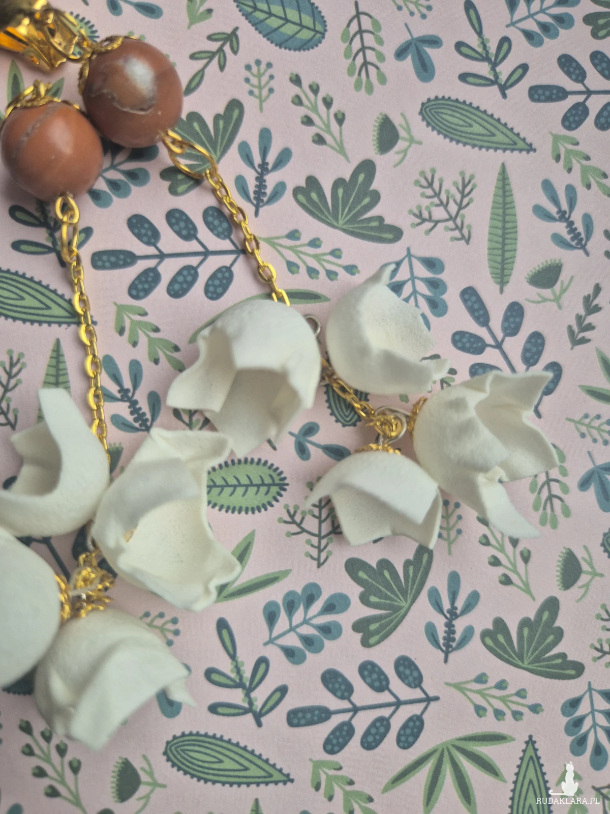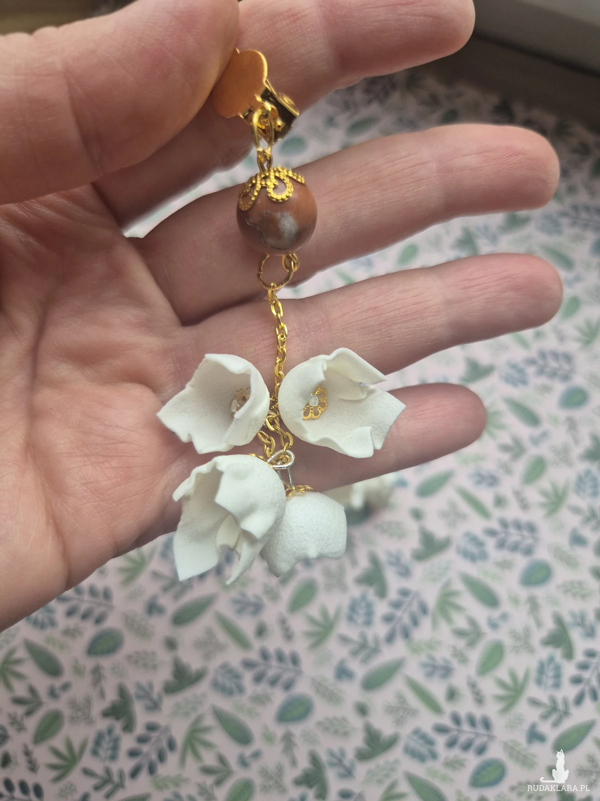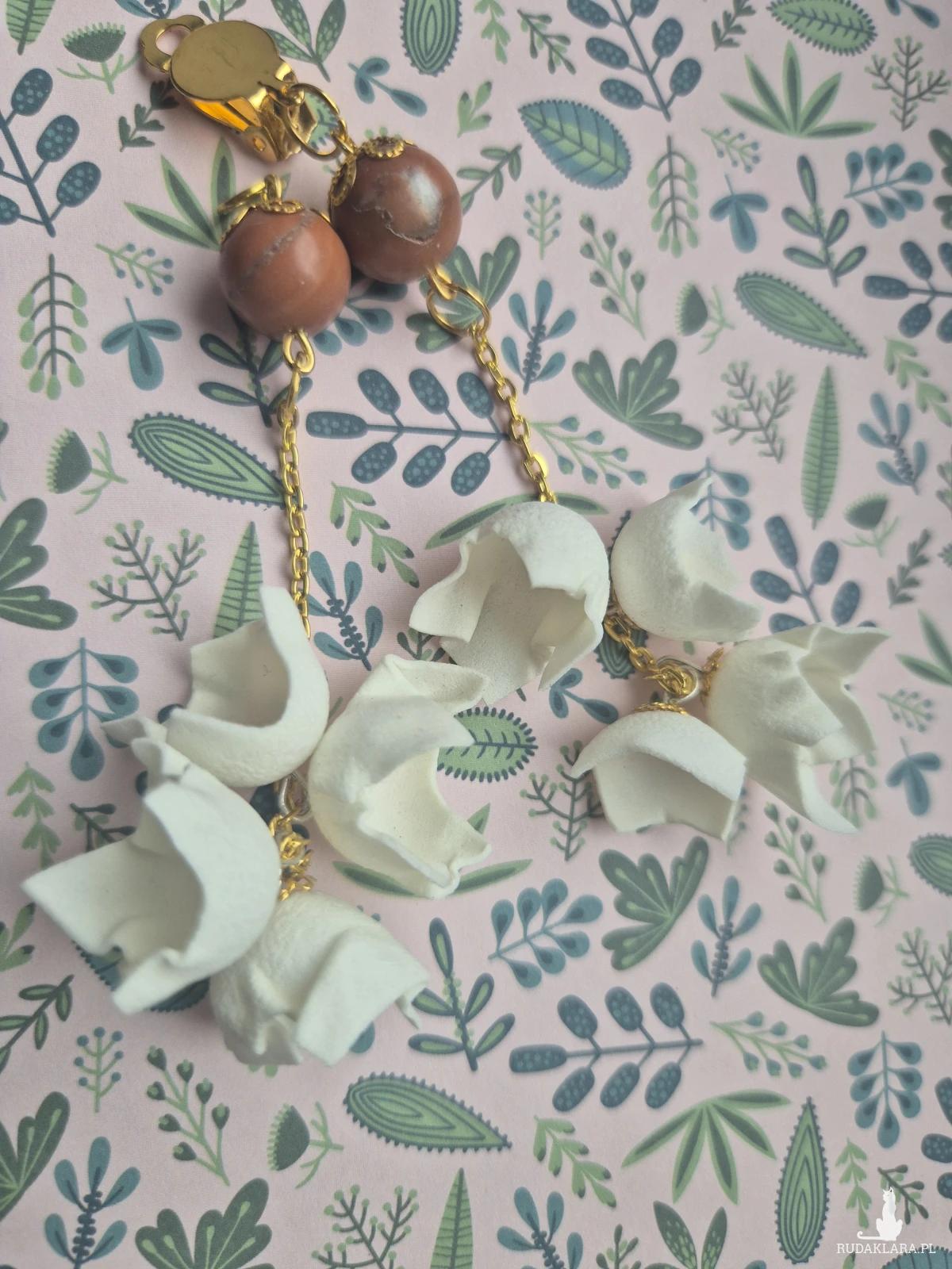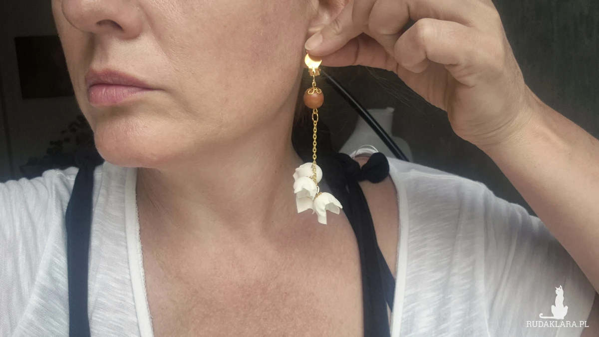 Klipsy białe delikatne kwiaty i minerały X1
