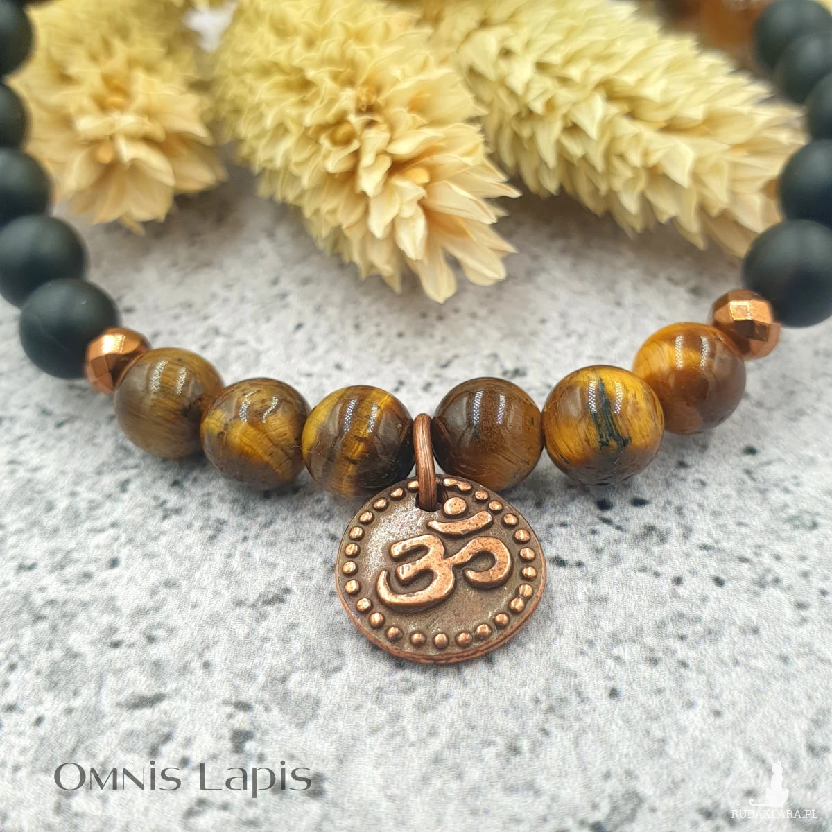 Odważny, magiczny tygrys, król zwierząt w zachodniej mitologii recytuje w prezentowanej bransoletce pradawną mantrę ''OM''- sylabę wszechmocy w hinduizmie.