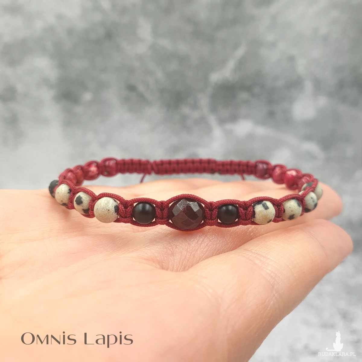 Bransoletka w kolorze bordo. Wyjątkowa, oryginalna, o unikatowym zestawieniu kamieni.